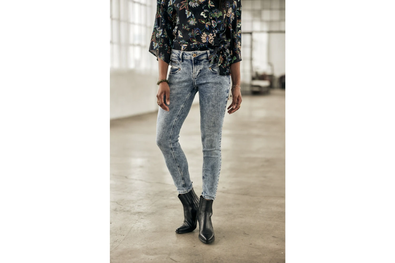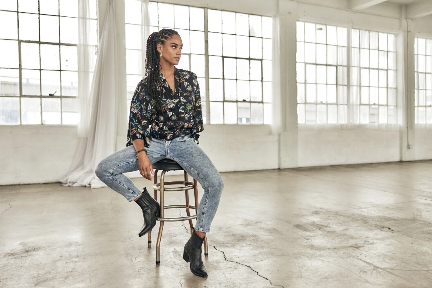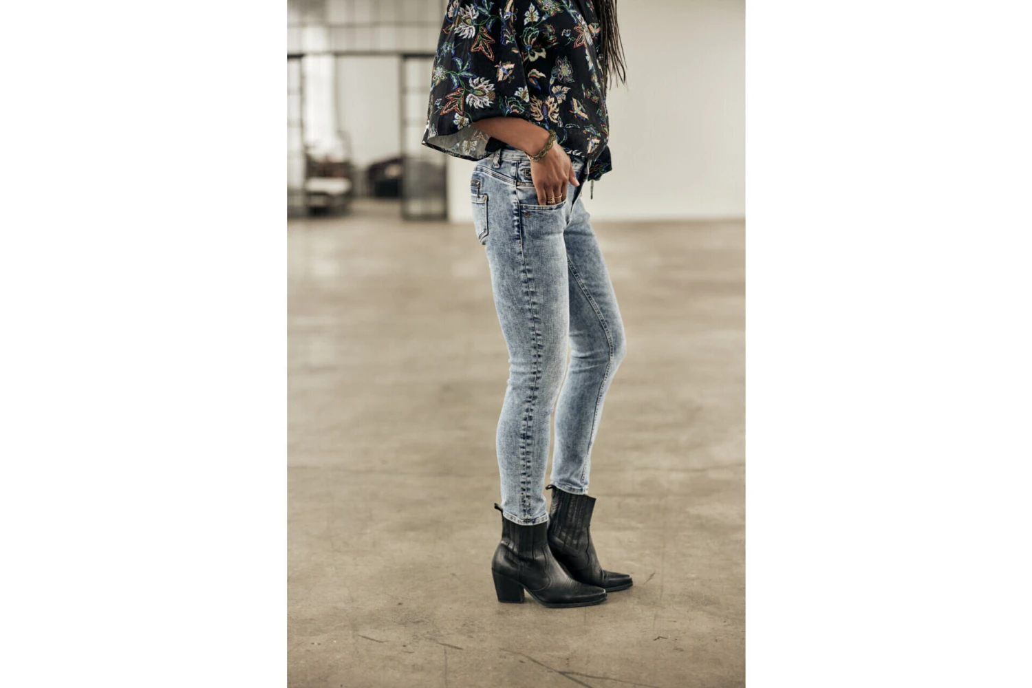 Anne-Sophie mesure 173 cm et porte une taille S.
