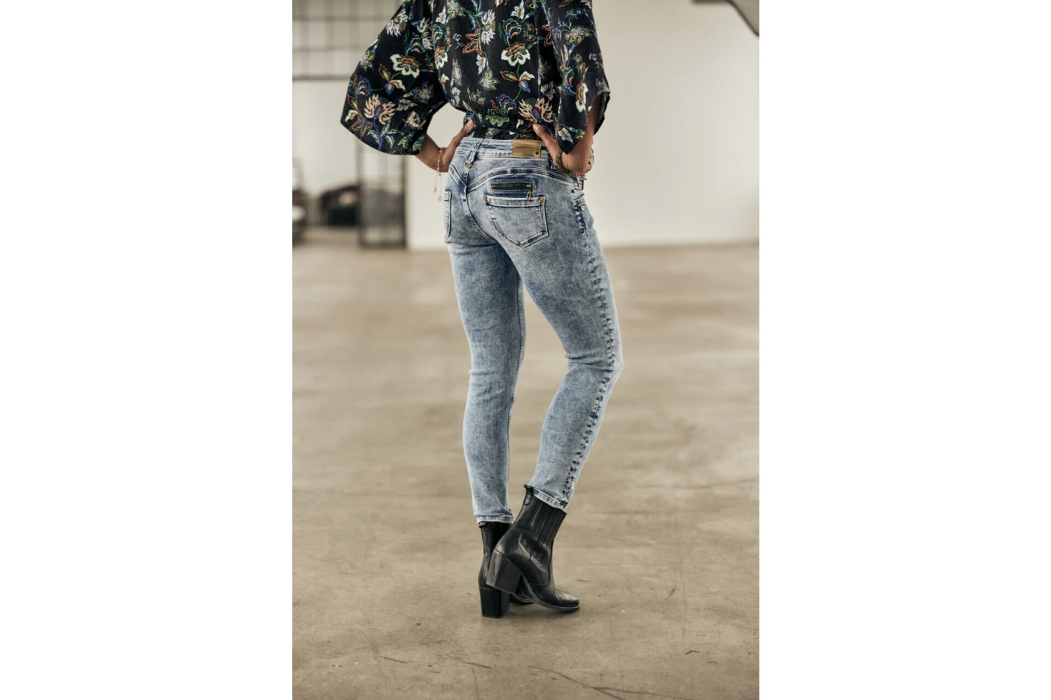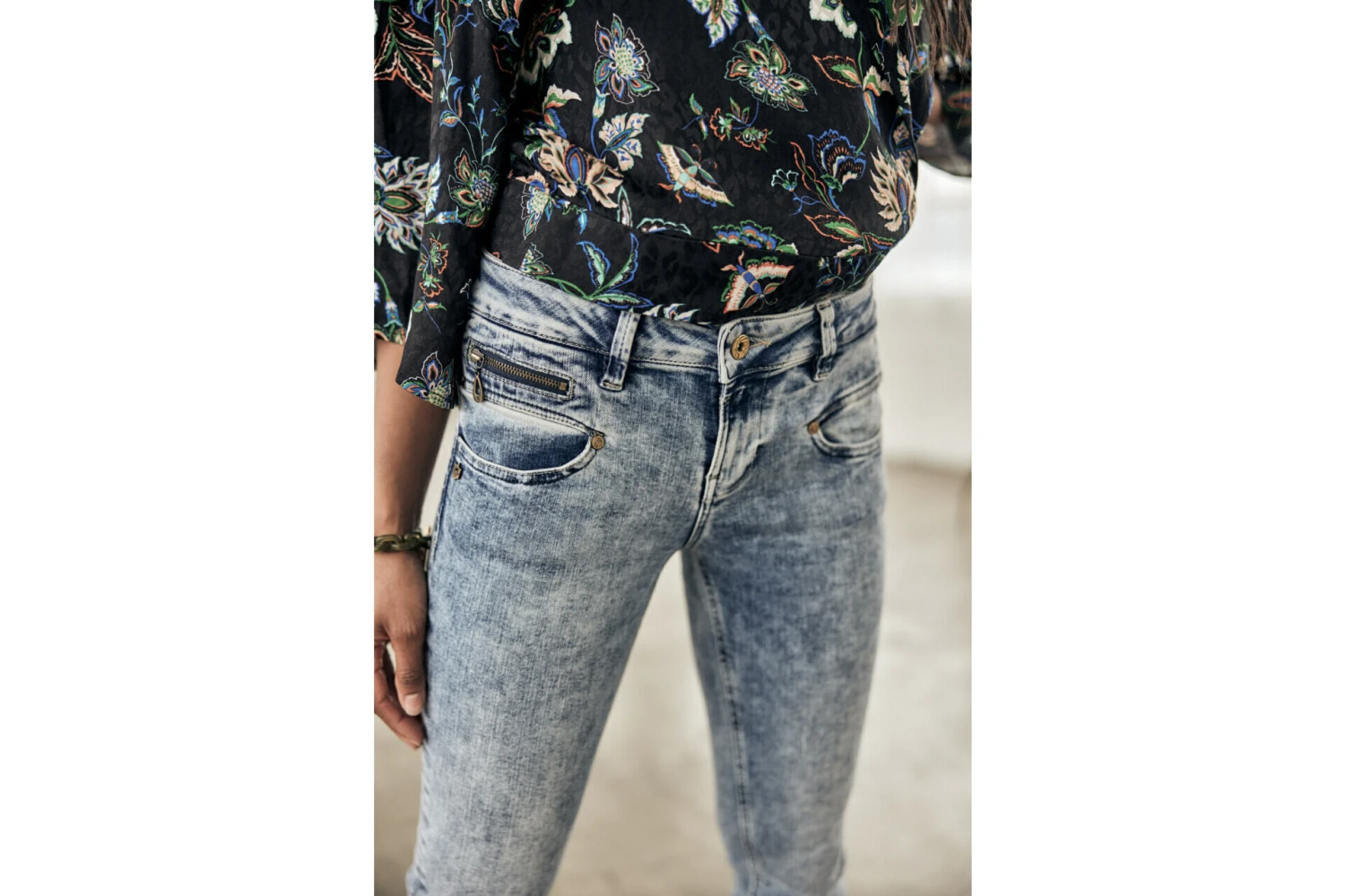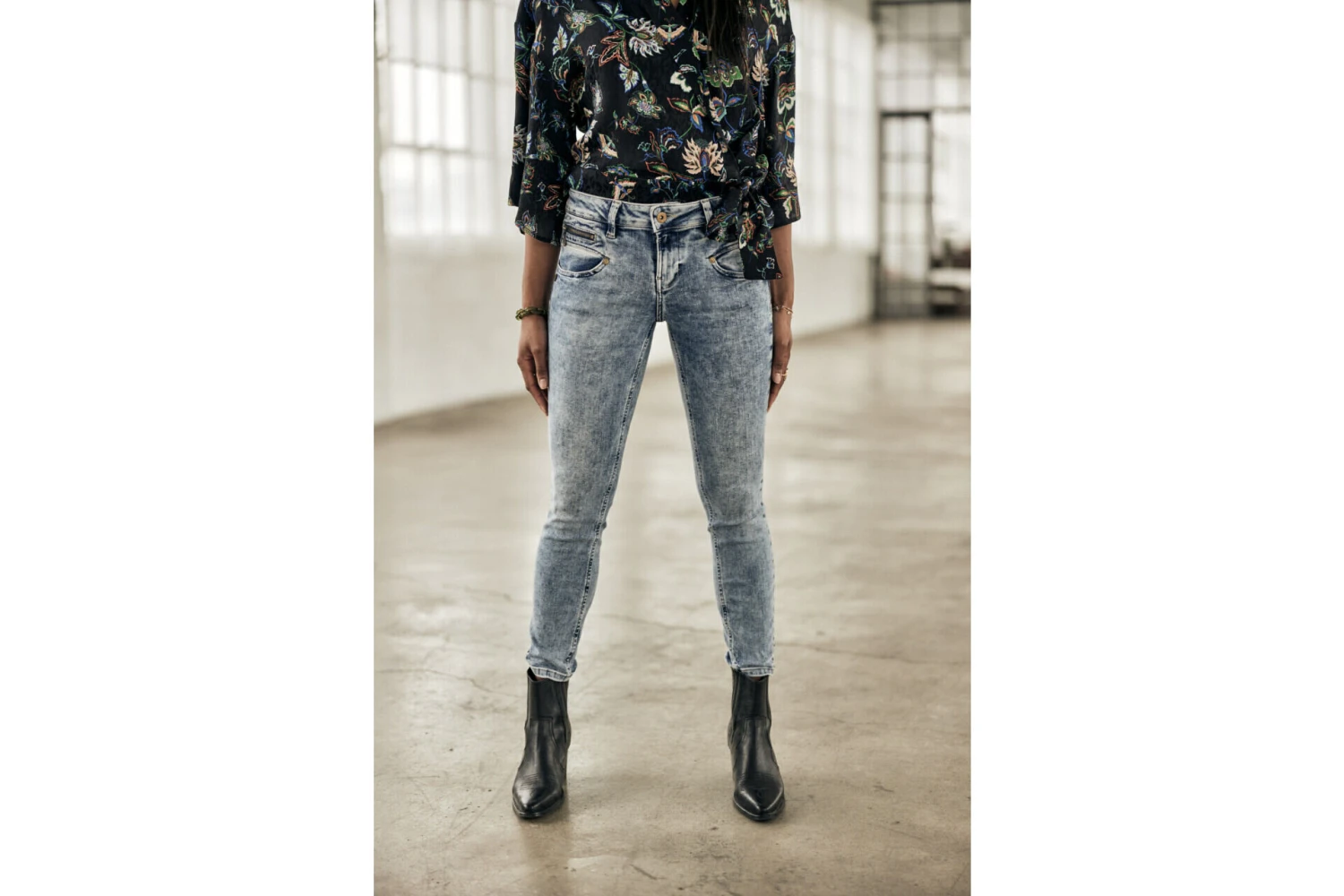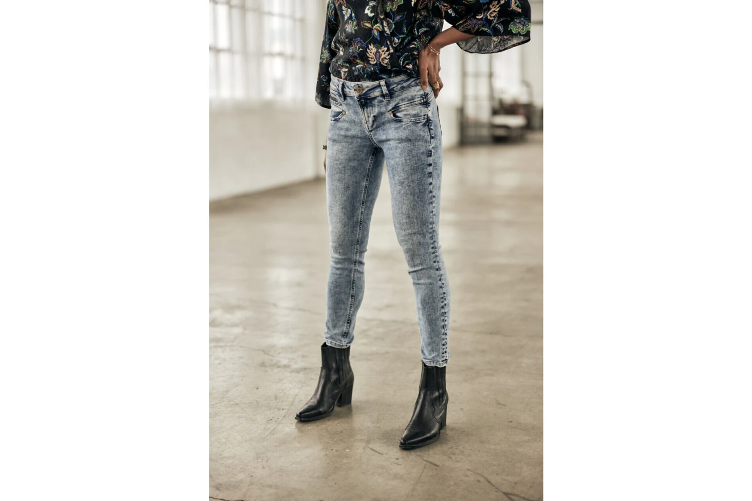 Anne-Sophie mesure 173 cm et porte une taille S.