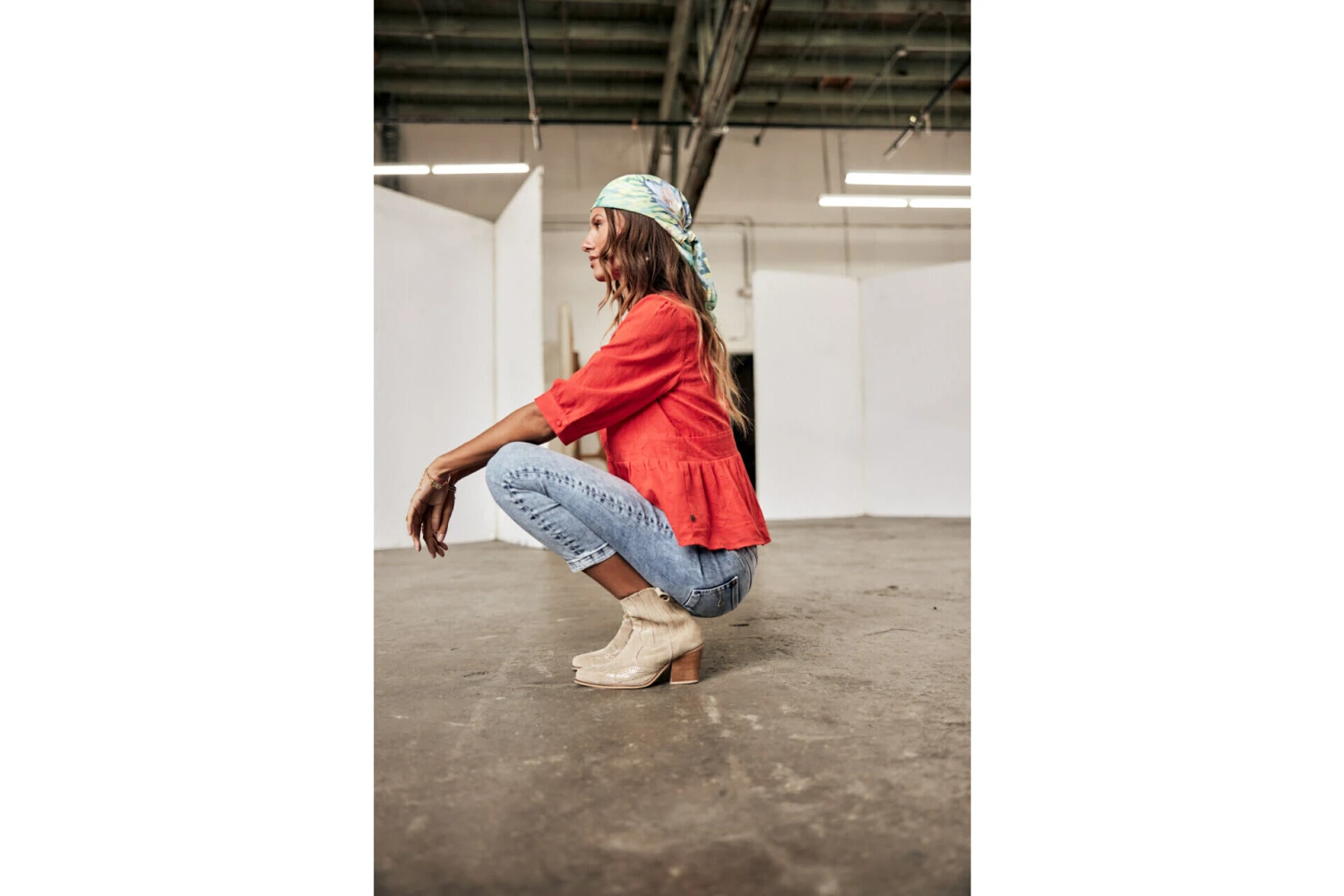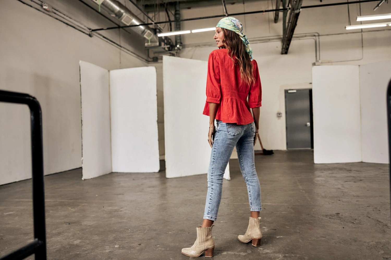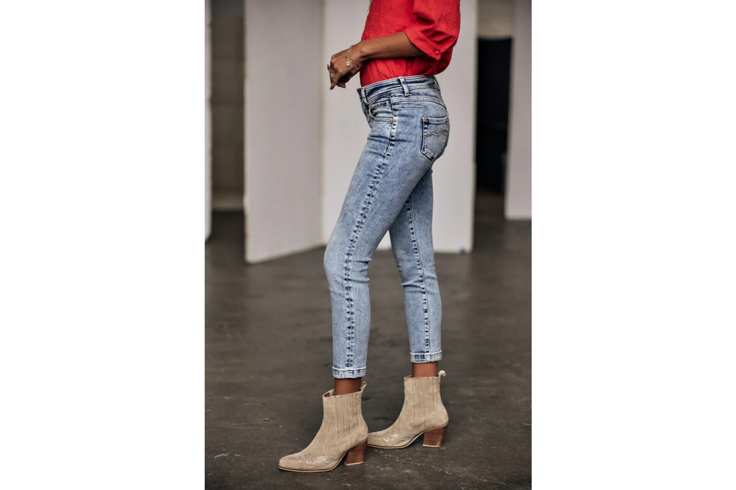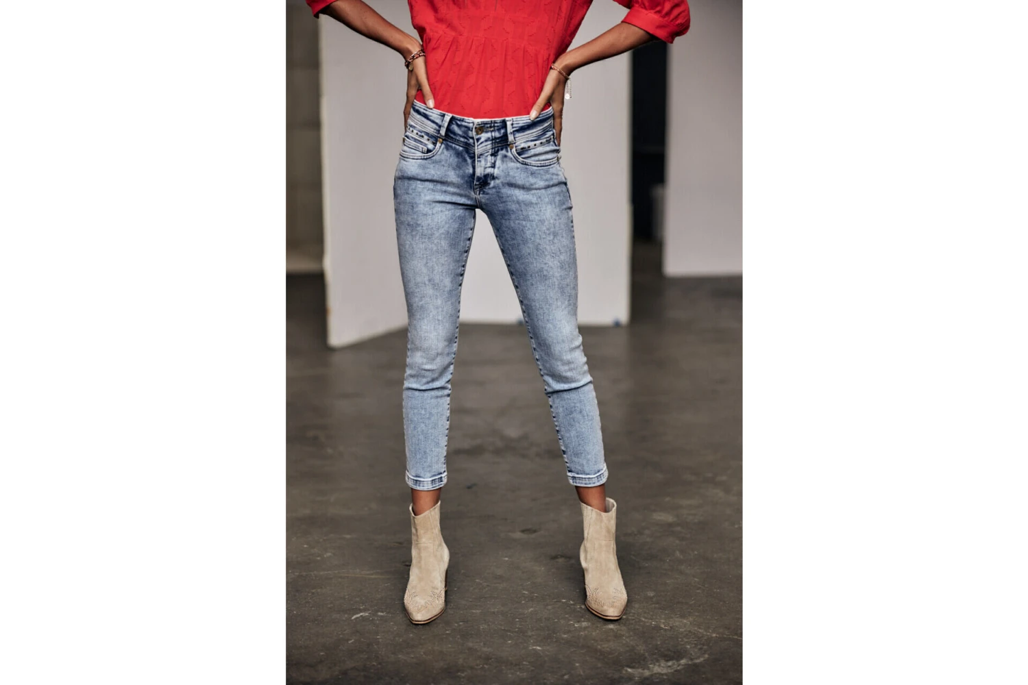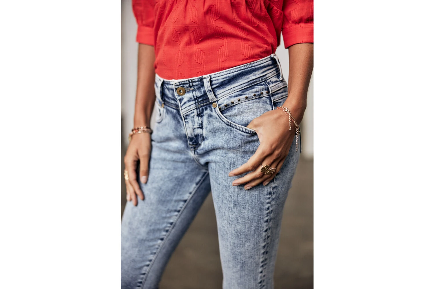 • Découpe ceinture fantaisie avec clous: plus large devant (en pointe), classique au dos
