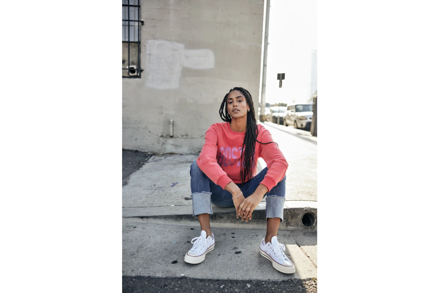 Anne-Sophie mesure 173 cm et porte une taille S.
