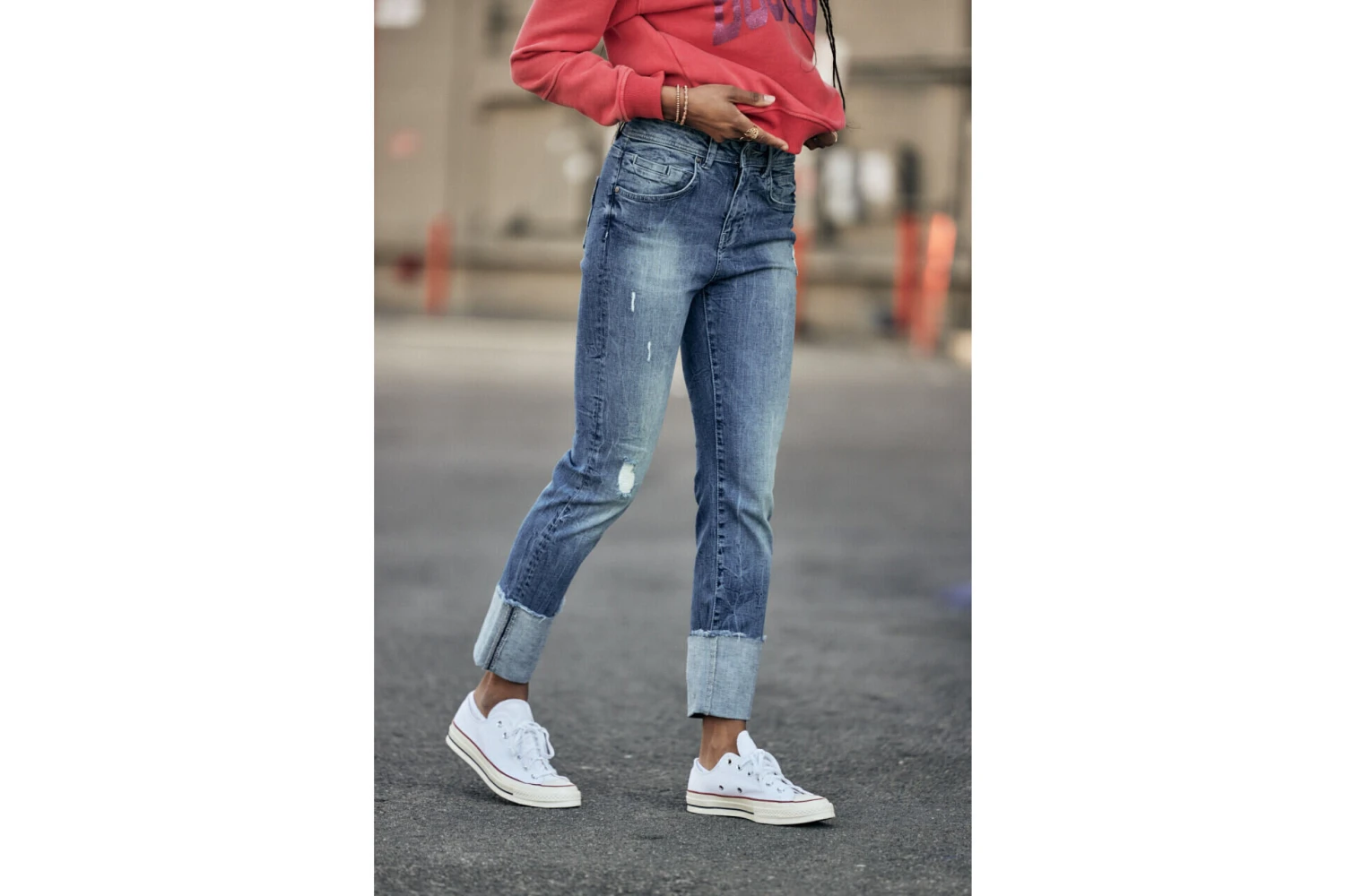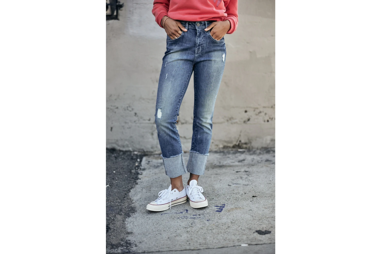 • Coupe droite ajustée, longueur 7/8 (chevilles)