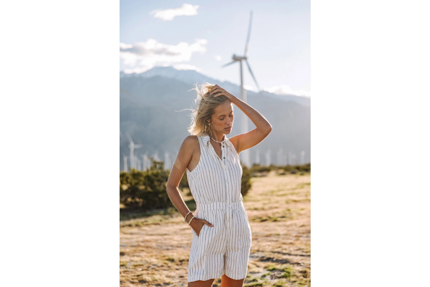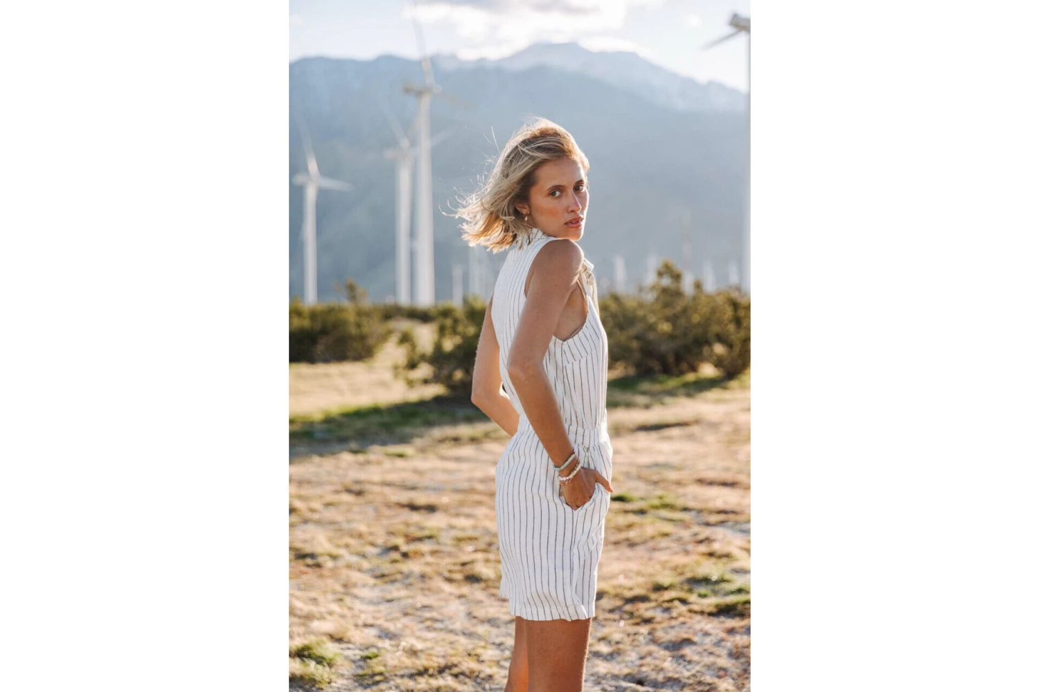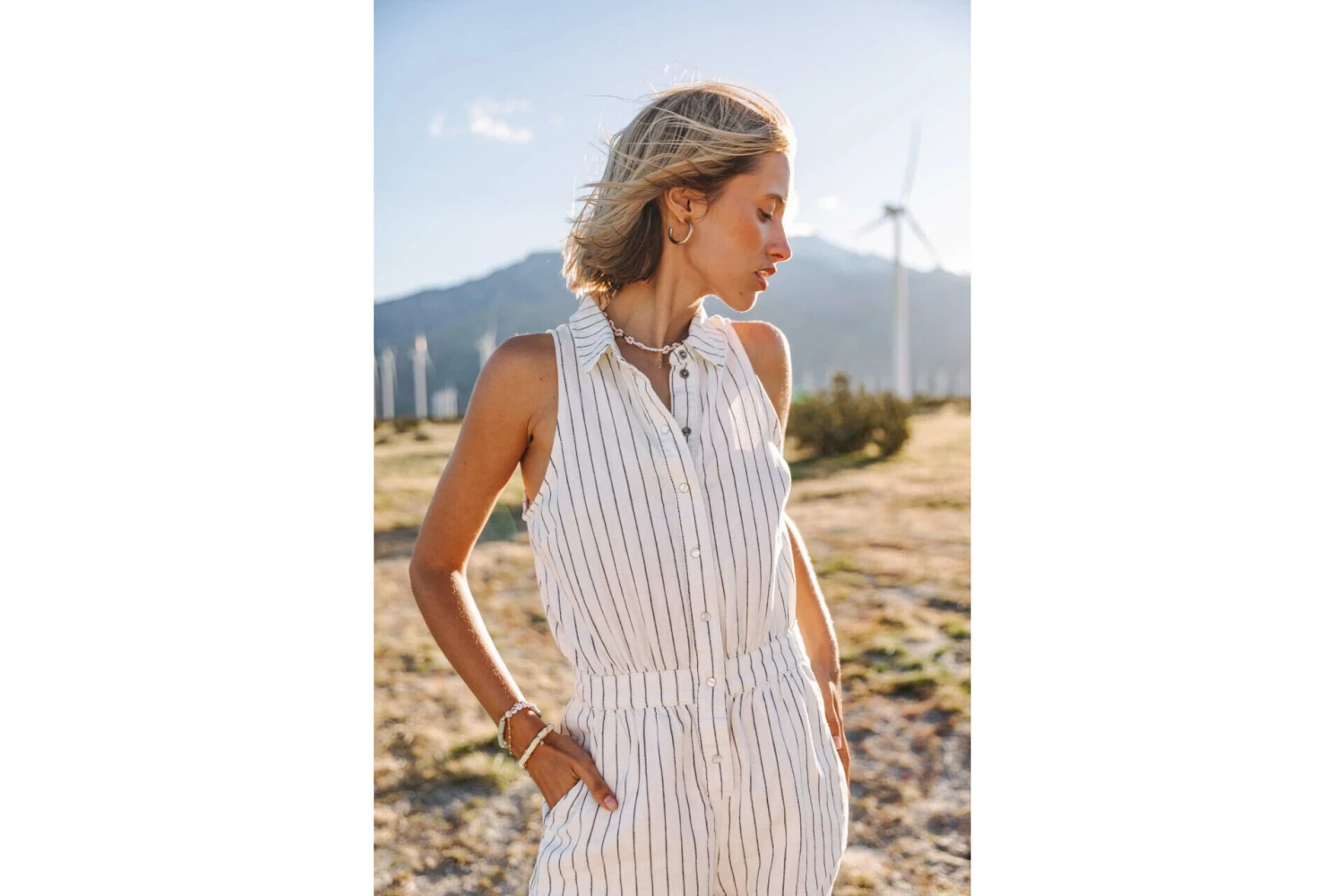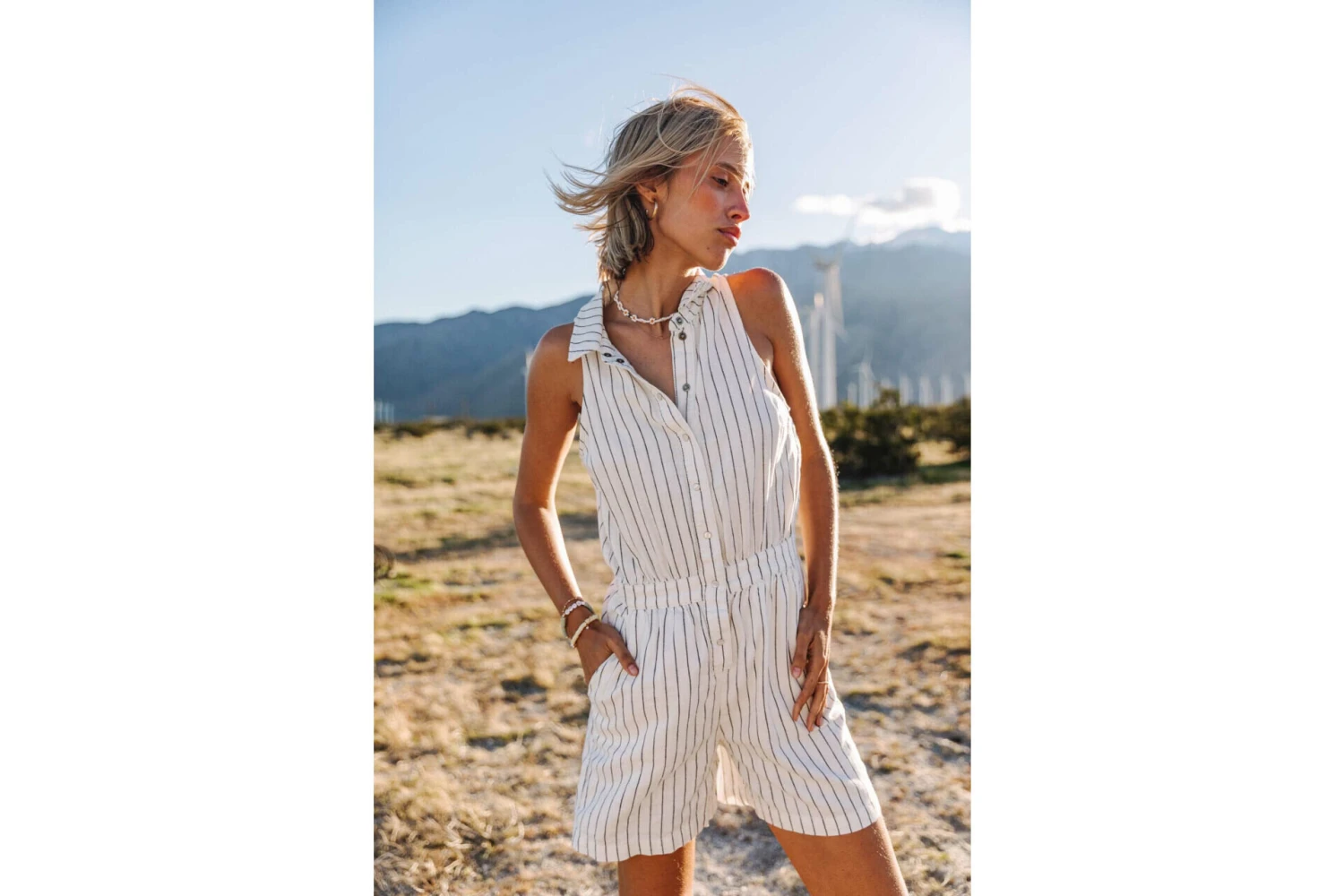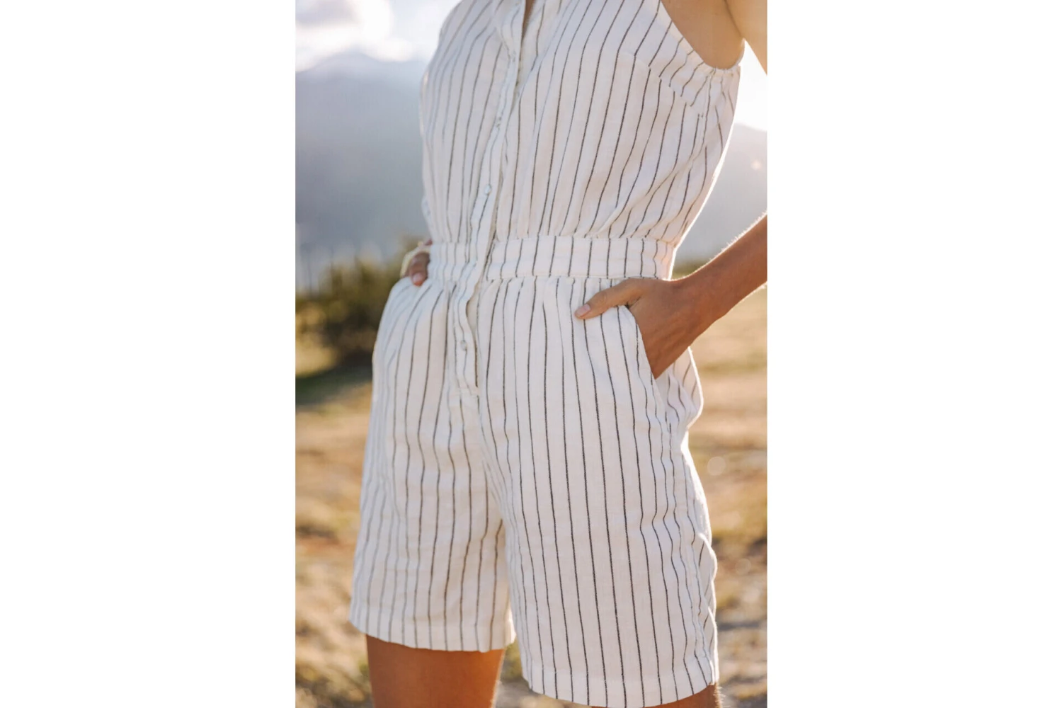 • Matière non stretch à fines rayures dans les tons blanc cassé et bleu marine