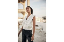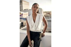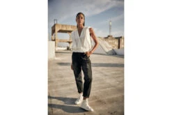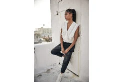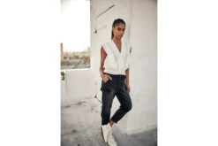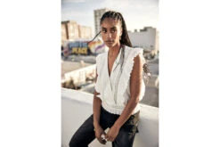 Anne-Sophie mesure 173 cm et porte une taille S.