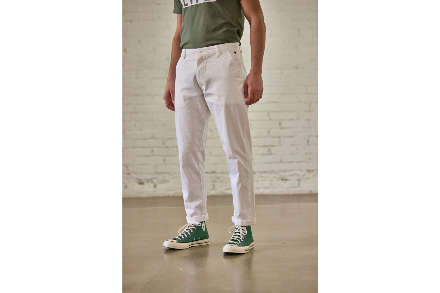 Coupe tapered : ample aux hanches et cuisses, puis ajustée/slim en bas de jambe