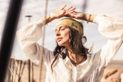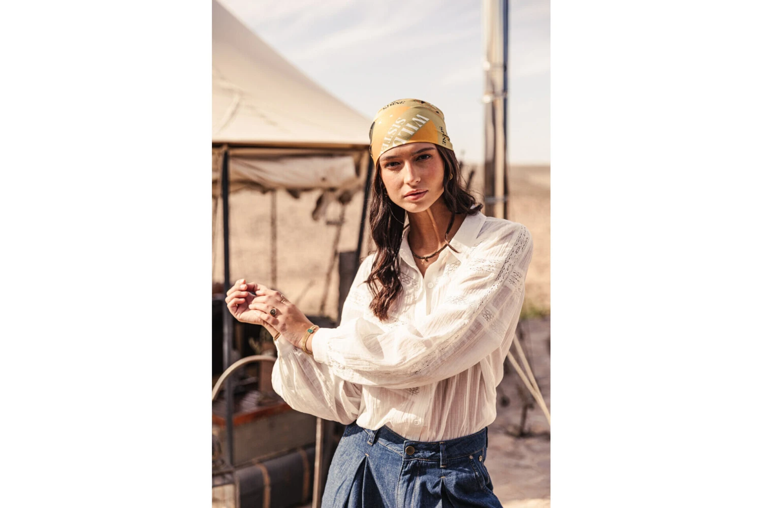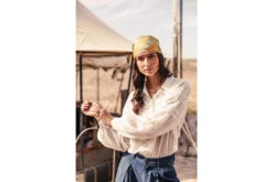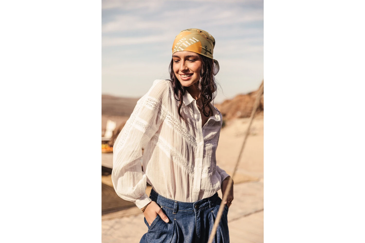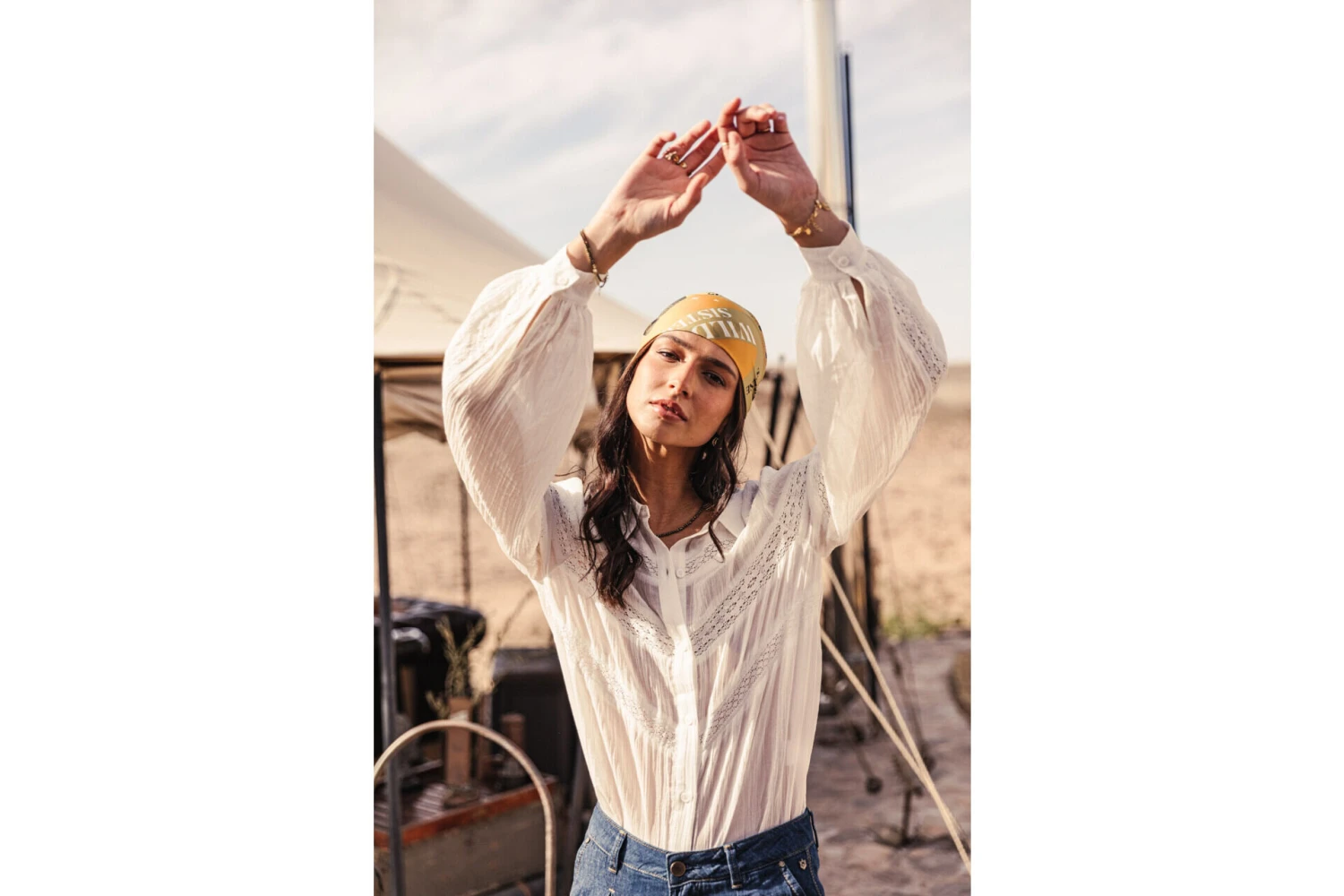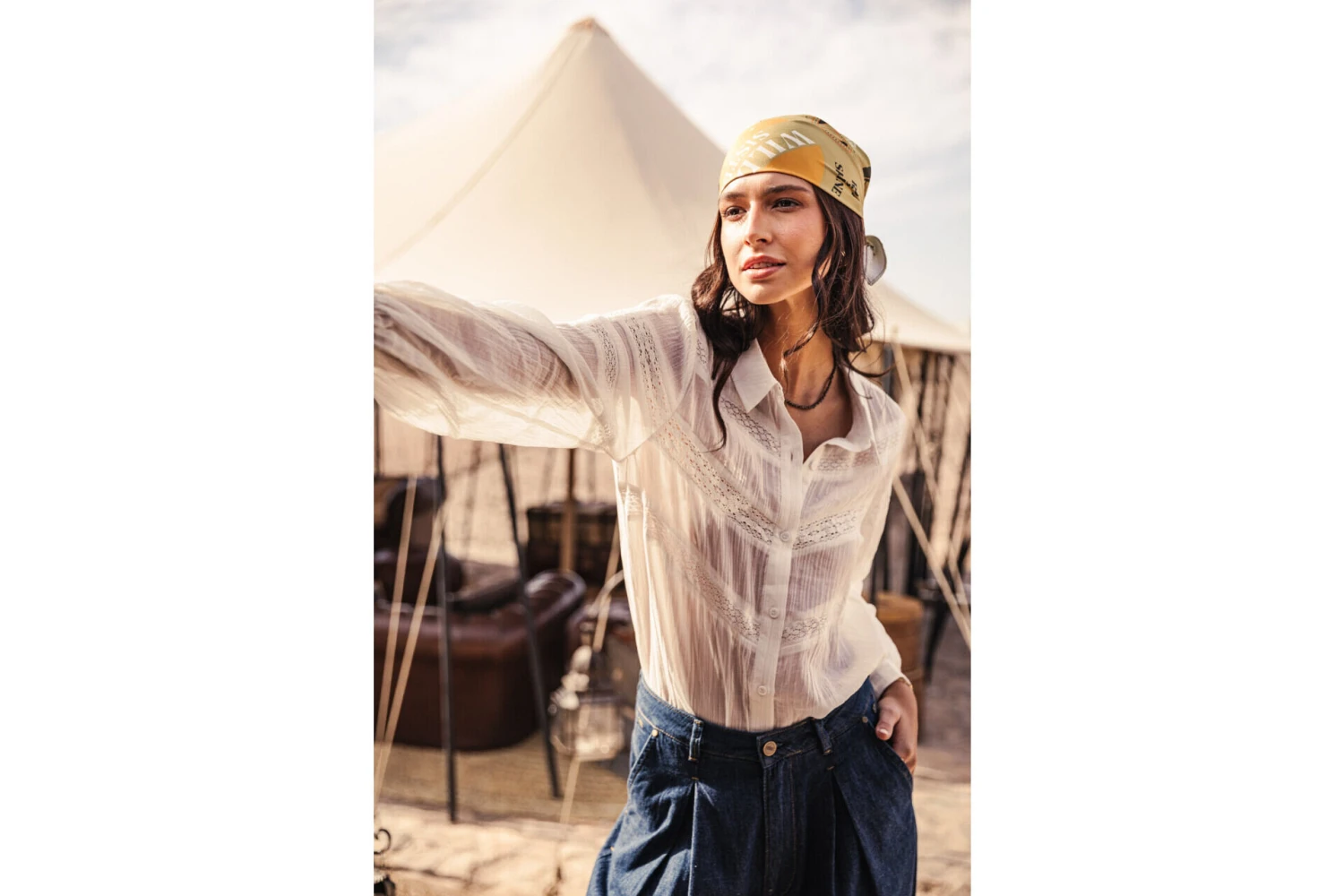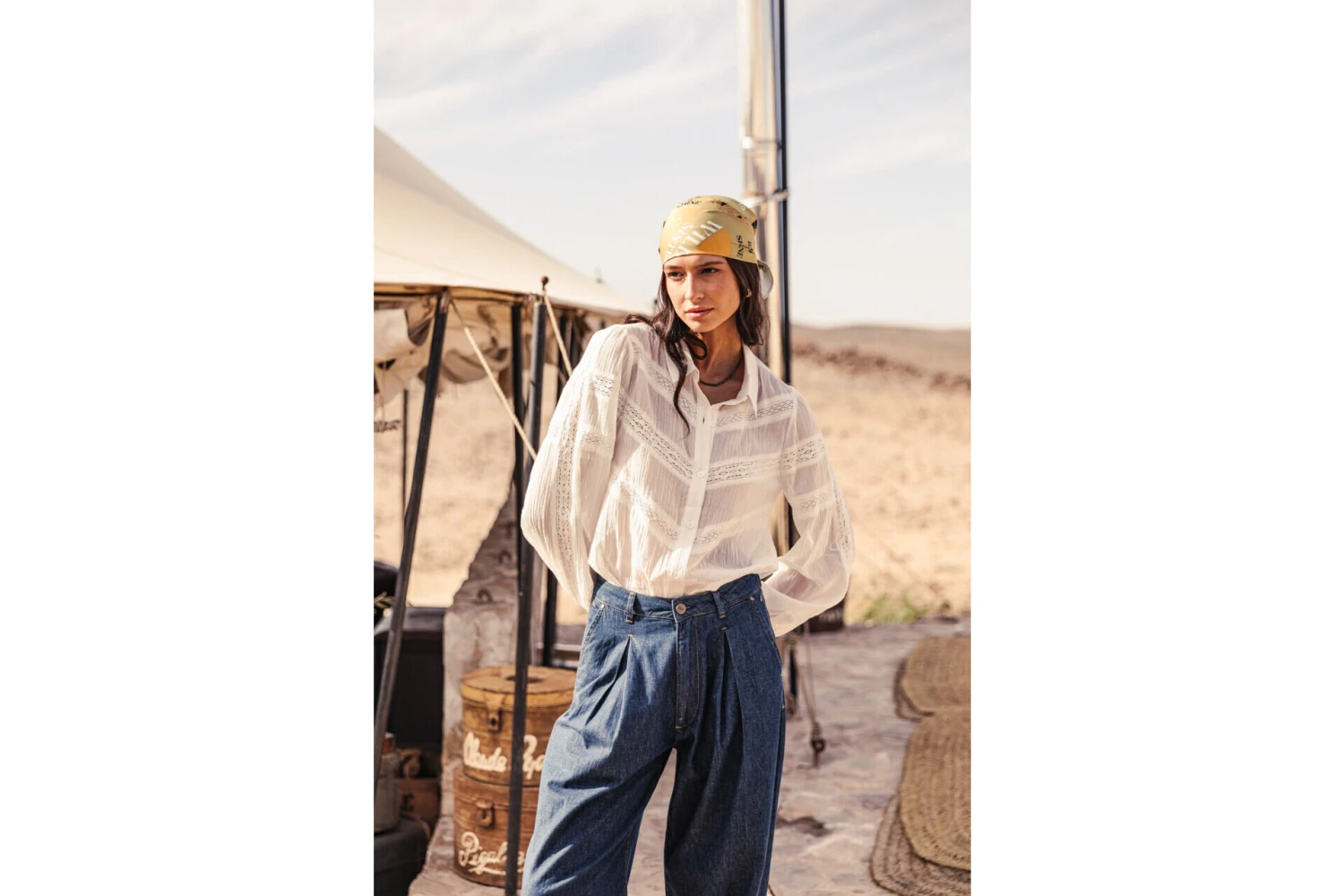 • Galons de dentelles en forme de V sur le devant et le long des manches