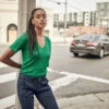 Lauren mesure 177 cm et porte une taille S.