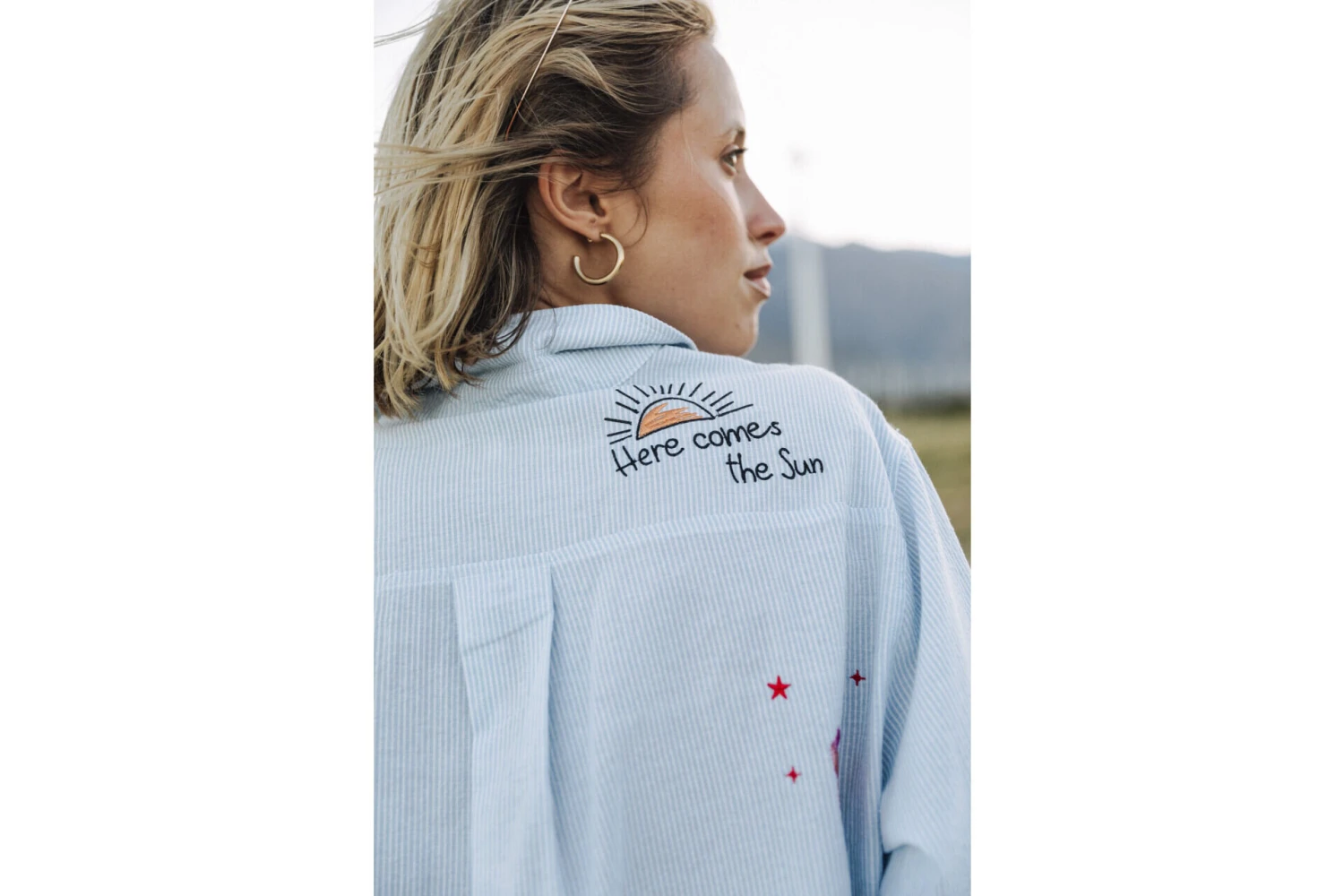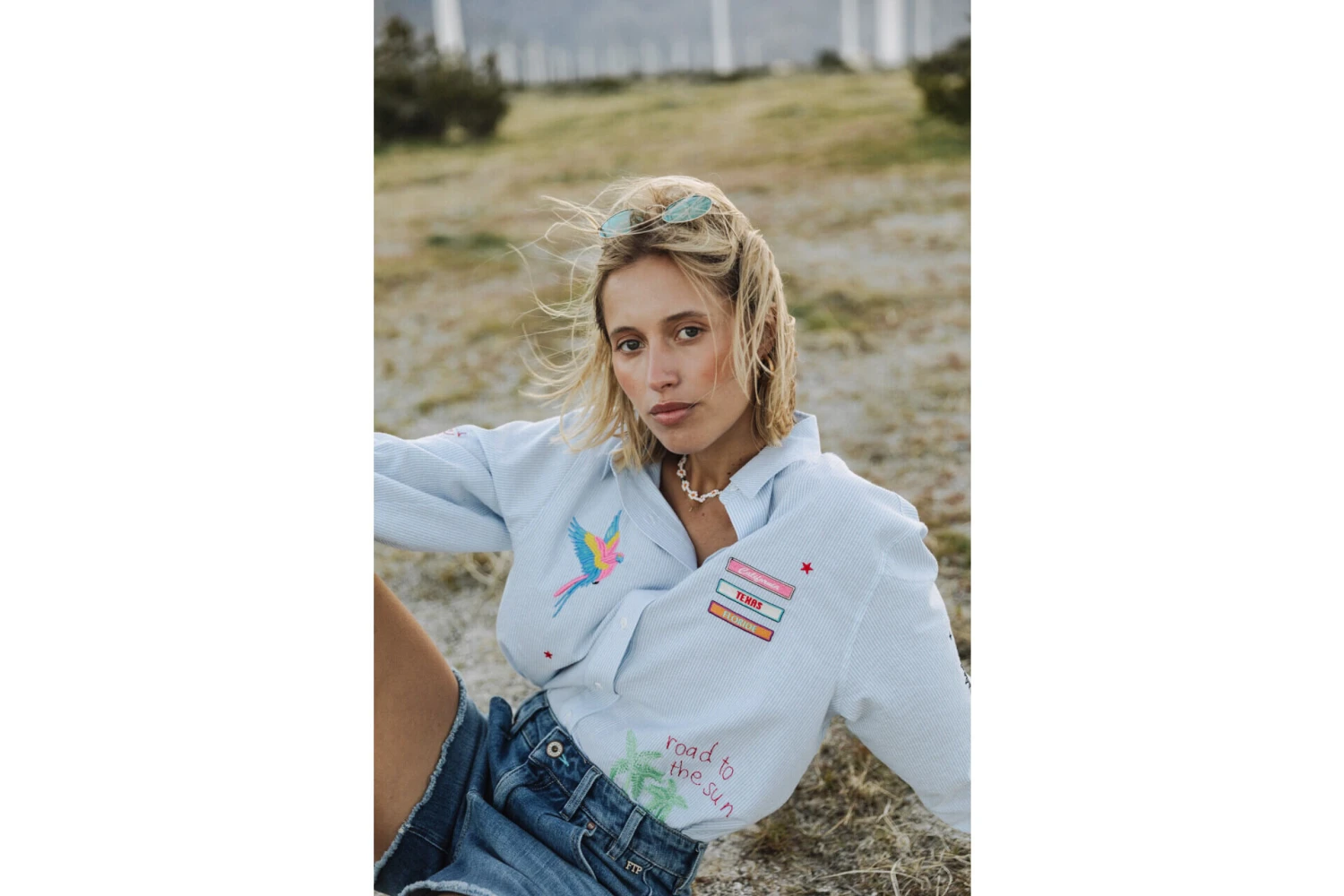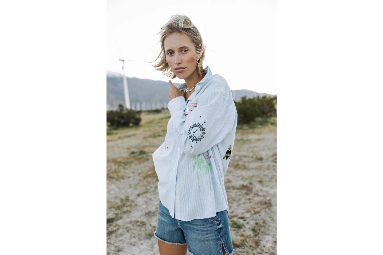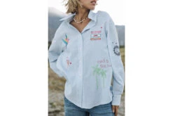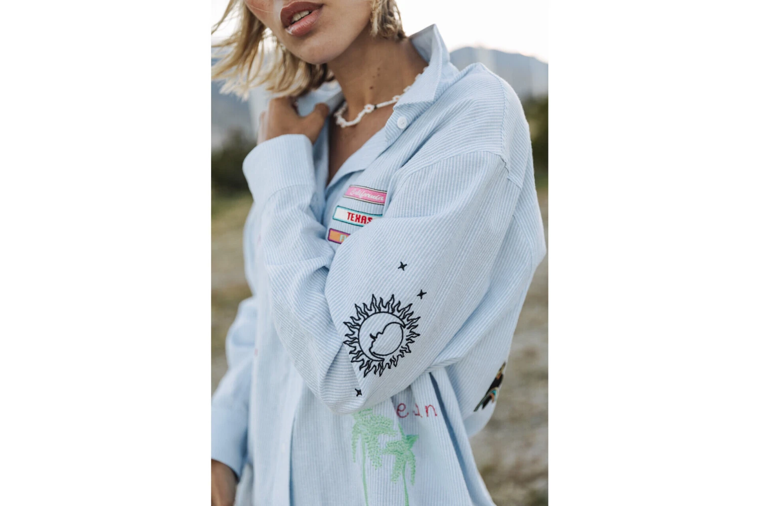 • Détail de patchs estivaux sur l’ensemble de la chemise