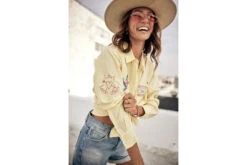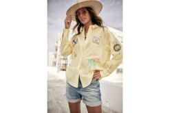 • Détail de patchs estivaux sur l’ensemble de la chemise