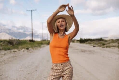 Julie mesure 175 cm et porte une taille S.