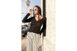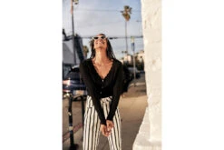 Anne-Sophie mesure 173 cm et porte une taille S.