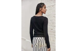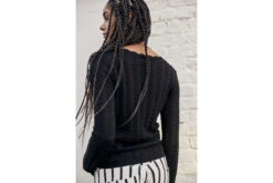 • DĂ©tail de rib fantaisie sur l’encolure, le milieu devant et le bas des manches