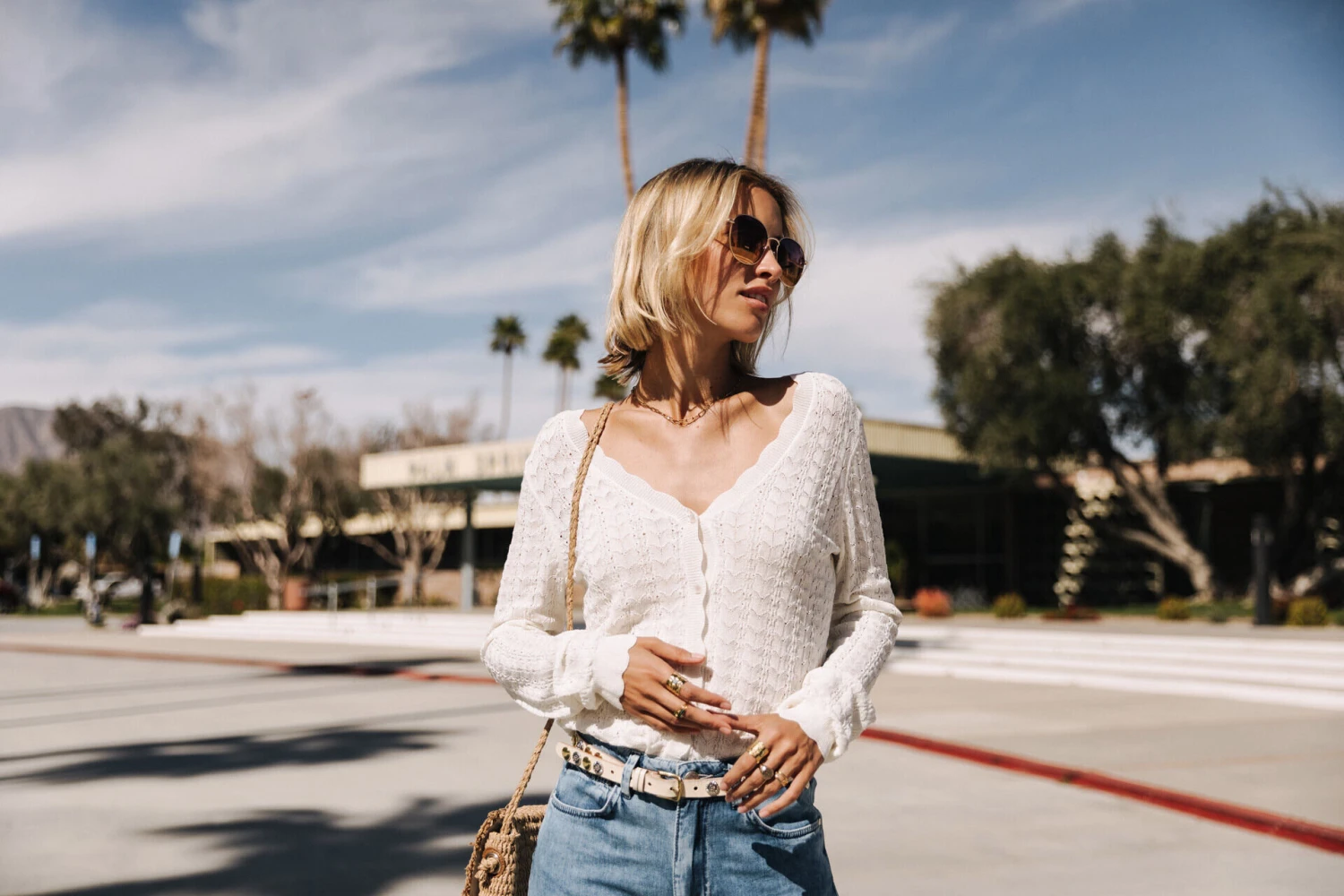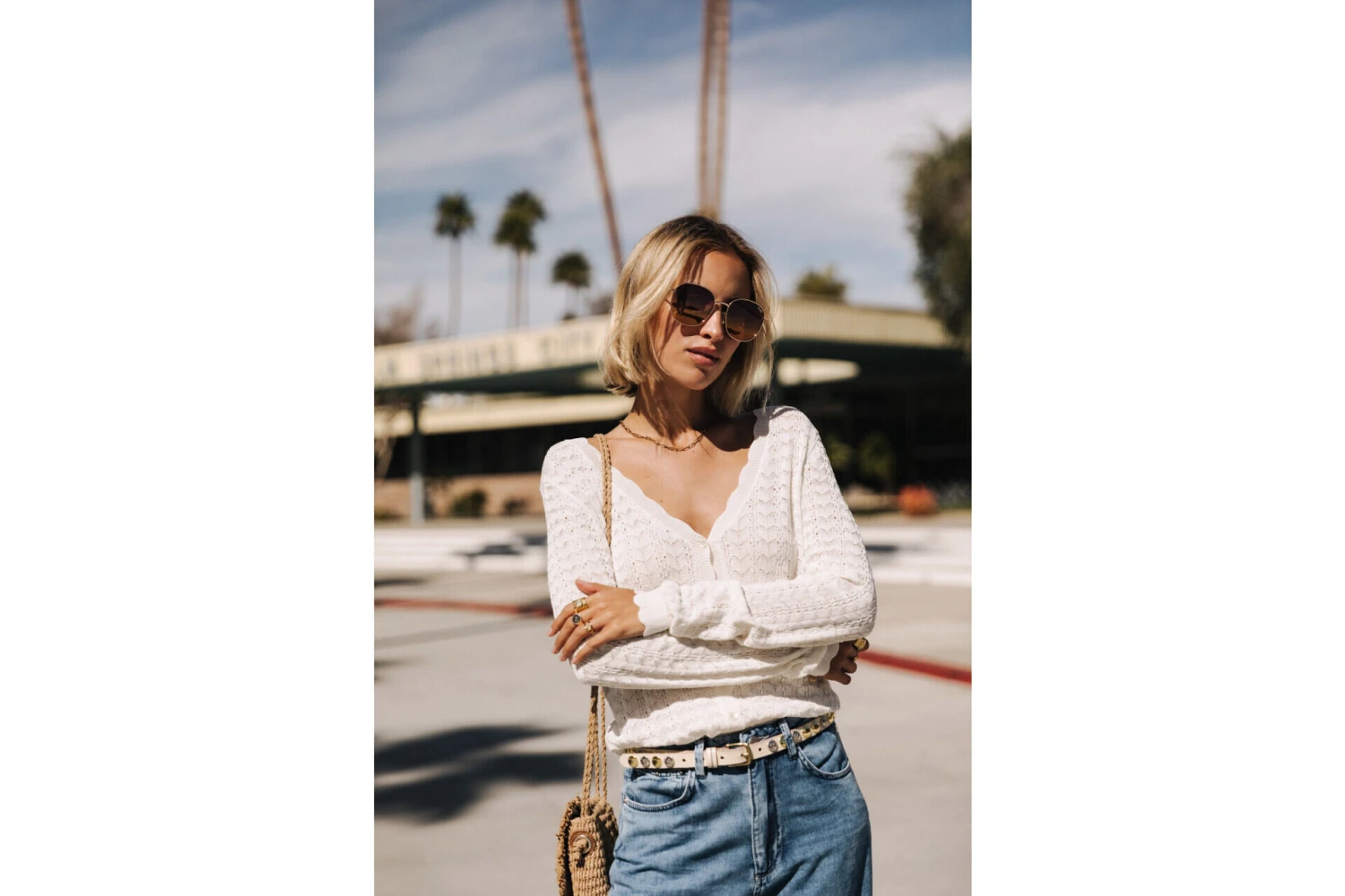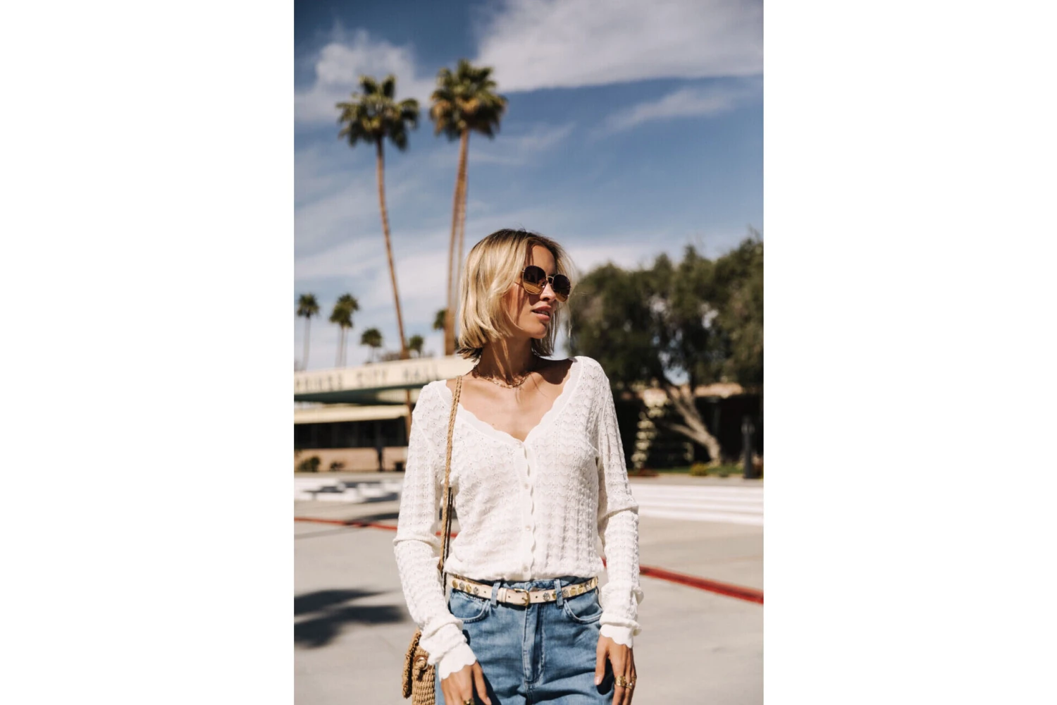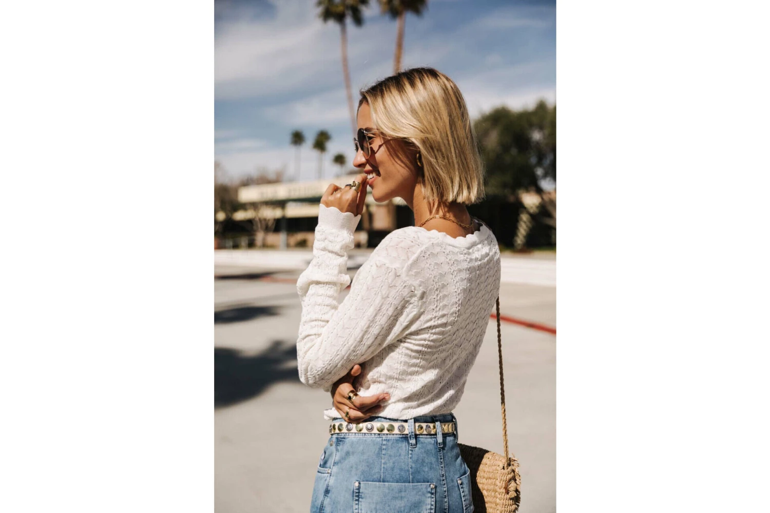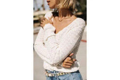 • DĂ©tail de rib fantaisie sur l’encolure, le milieu devant et le bas des manches