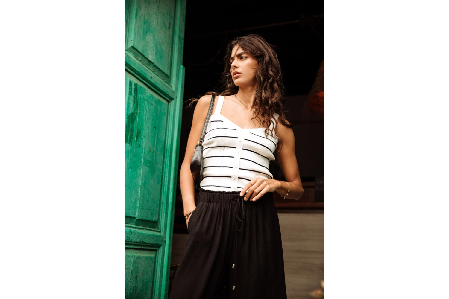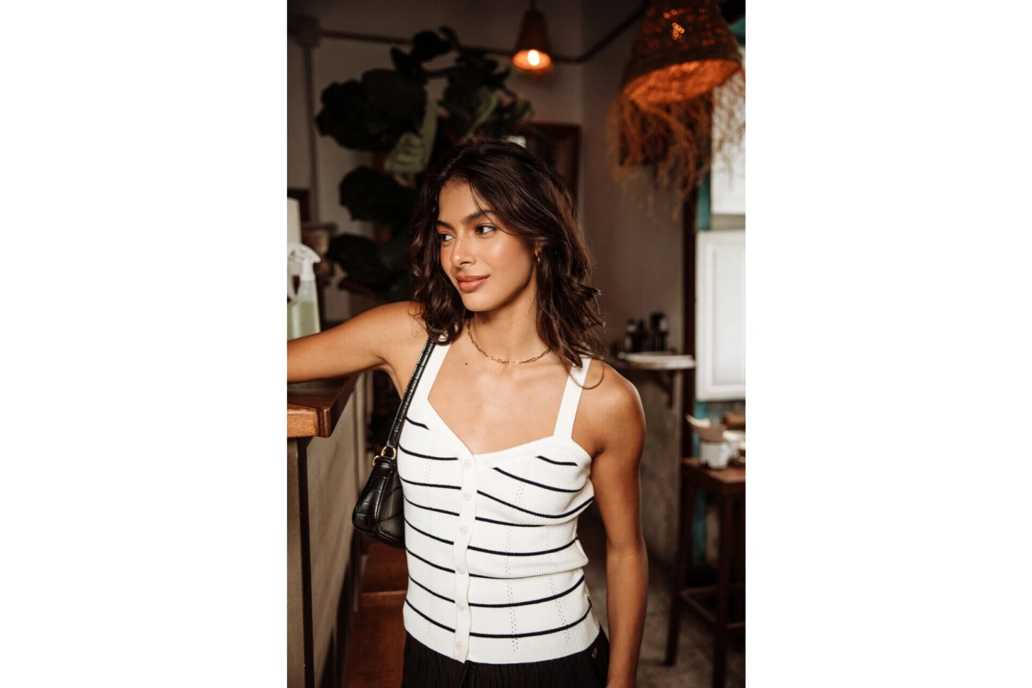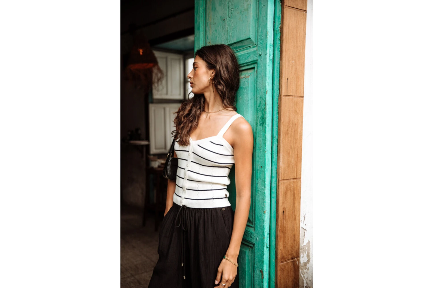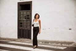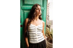 • Top bretelle dans une maille douce et fine style marinière entièrement cotelée