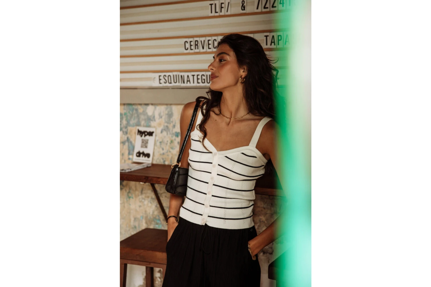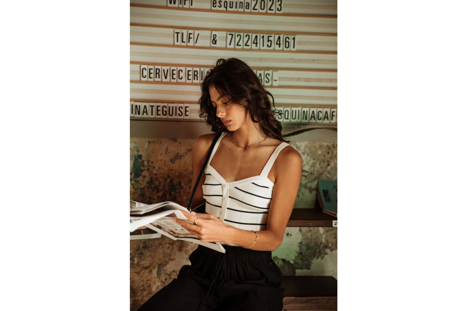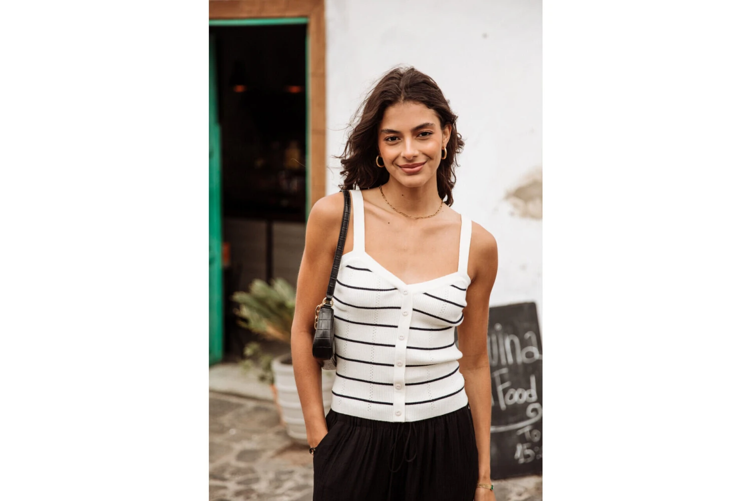• Top bretelle dans une maille douce et fine style marinière entièrement cotelée