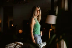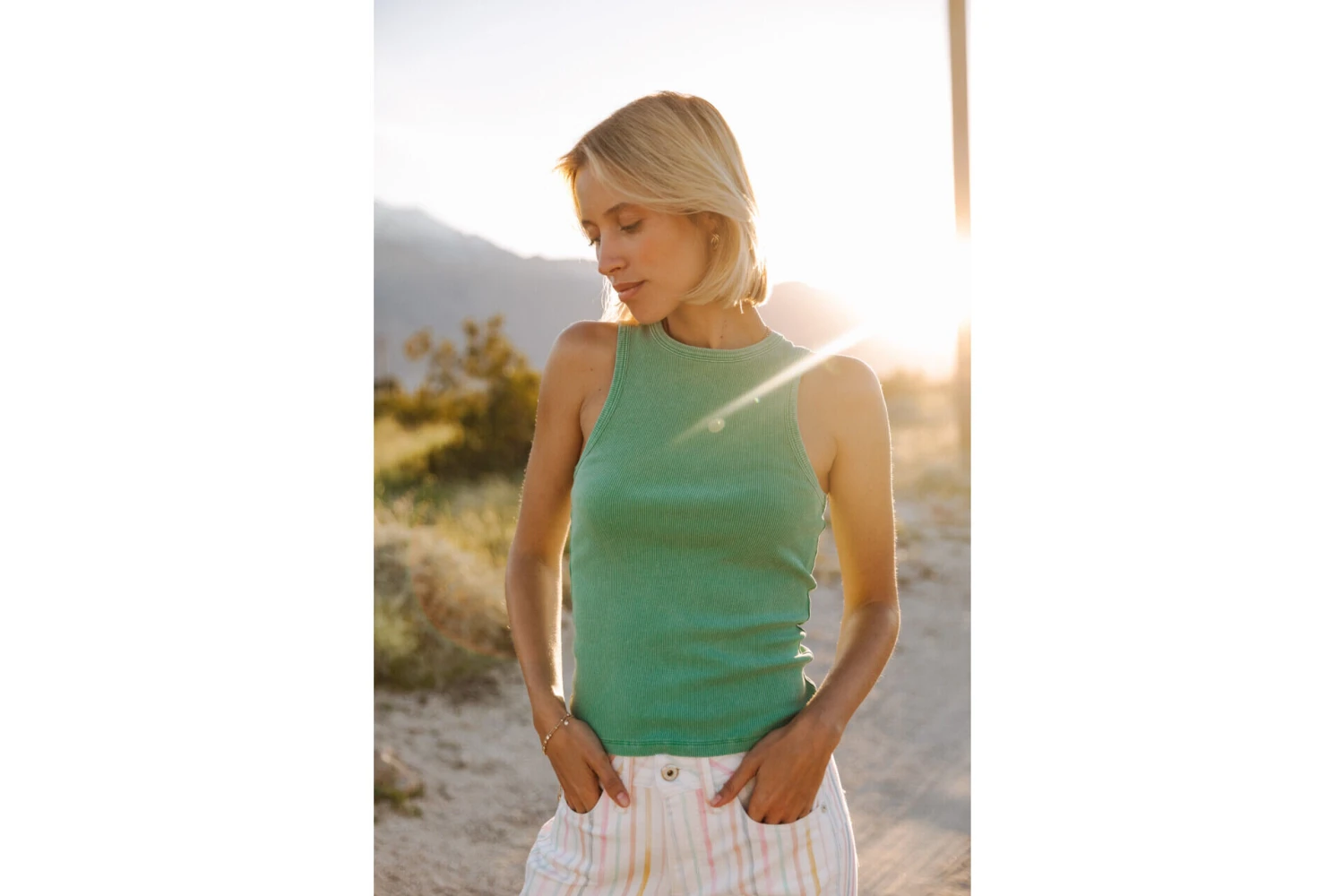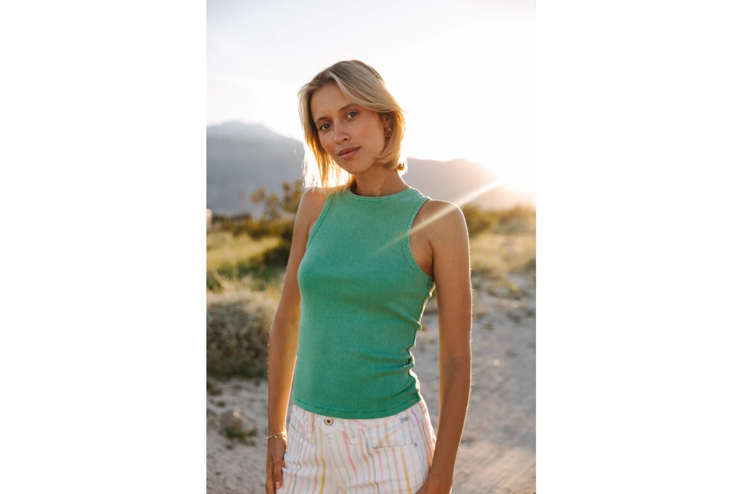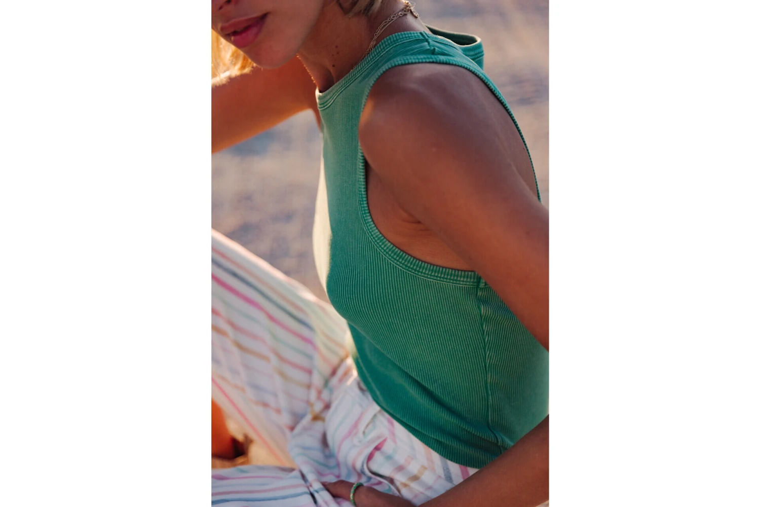 • Débardeur nageur en maille rib à encolure ronde
