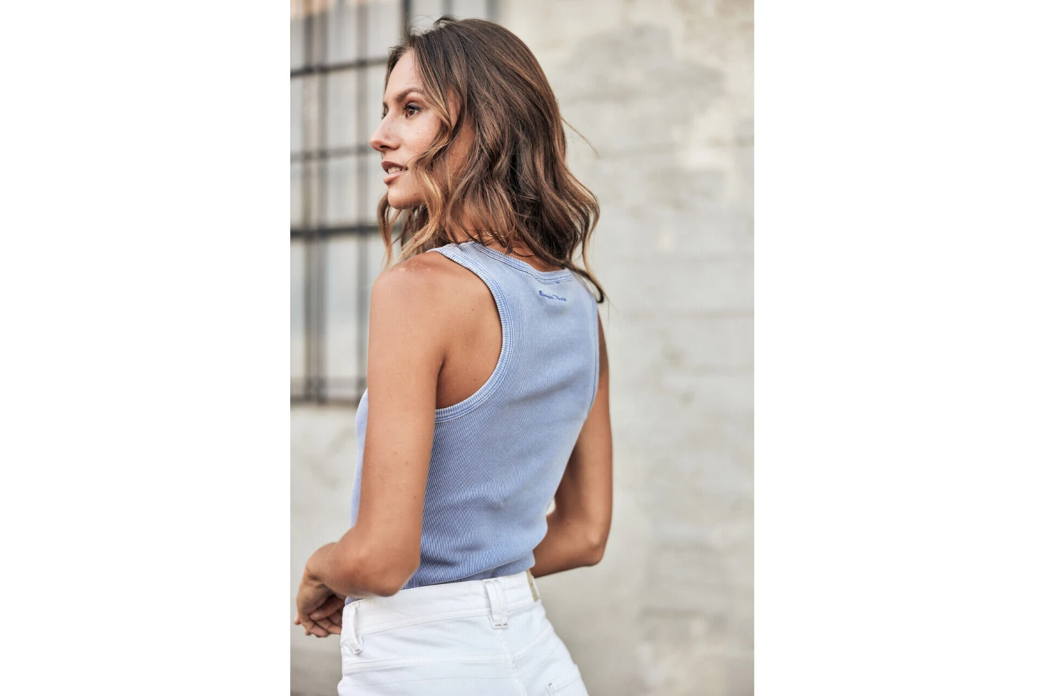 • Débardeur nageur en maille rib à encolure ronde