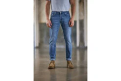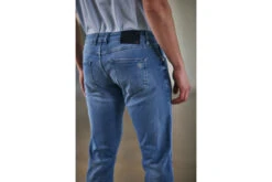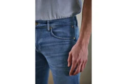 Délavage bleu clair, usé, esprit authentique avec quelques déchirures