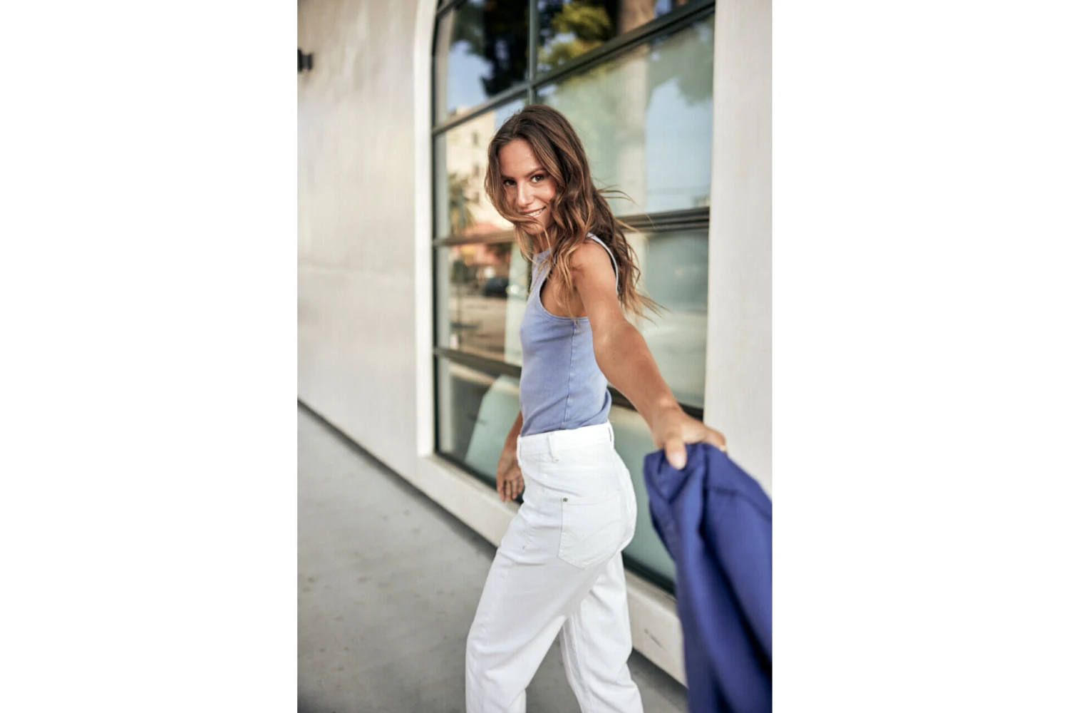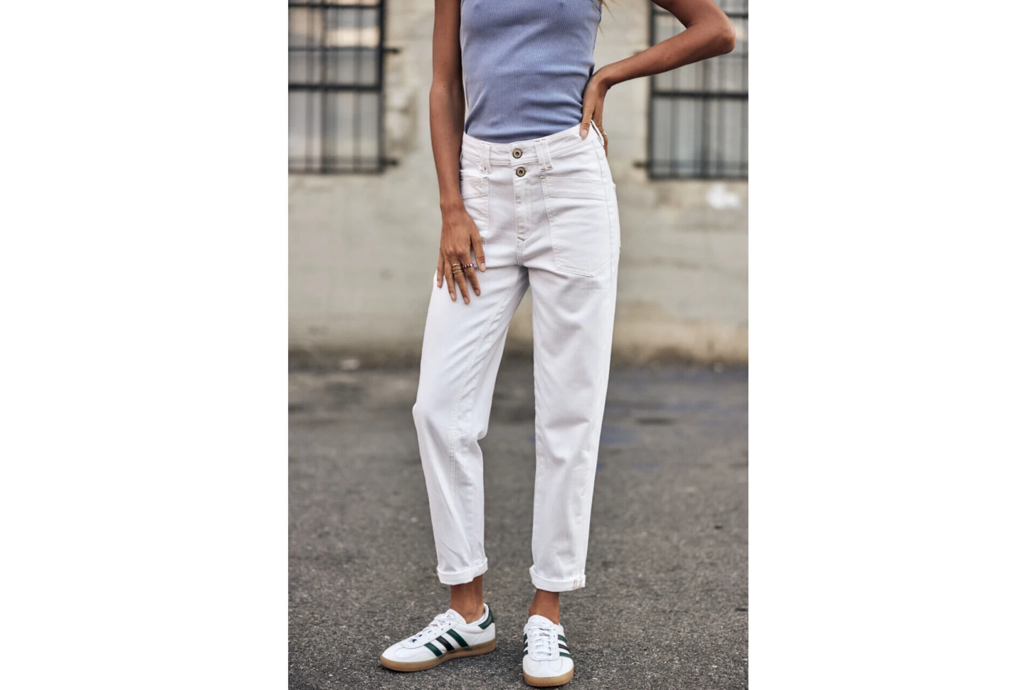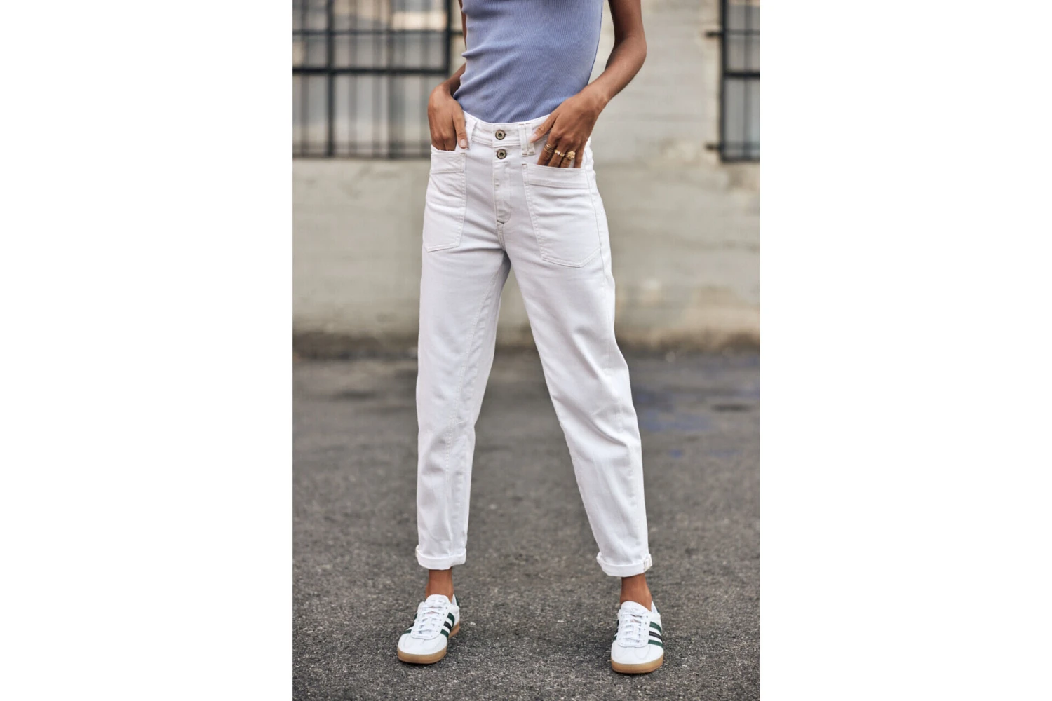 • Coupe droite ajustée, longueur 7/8ème (chevilles)