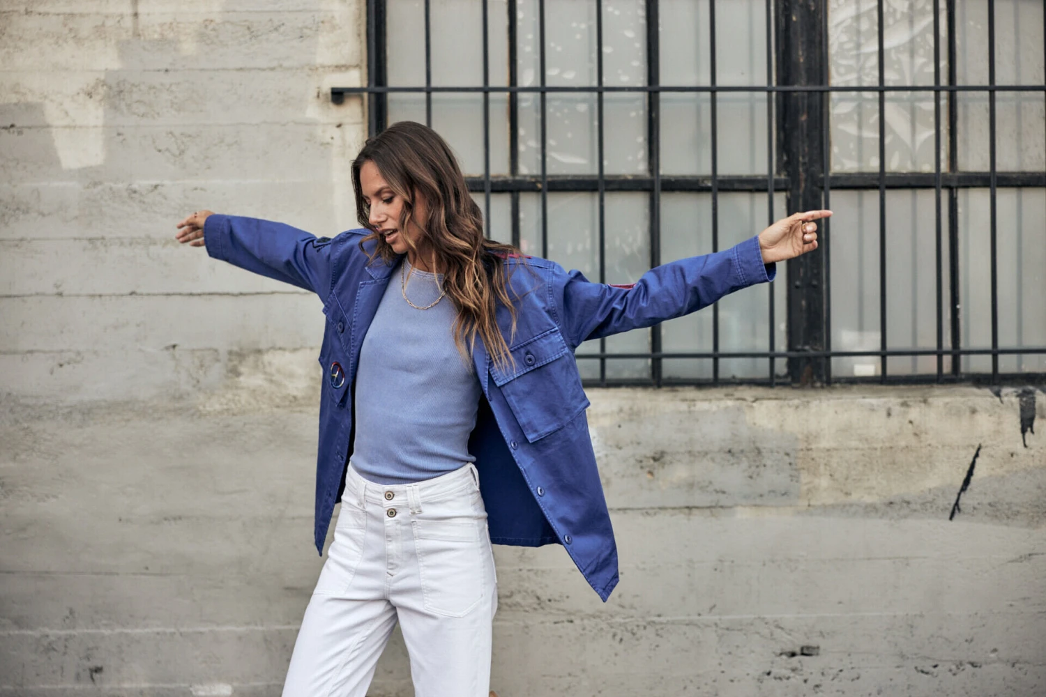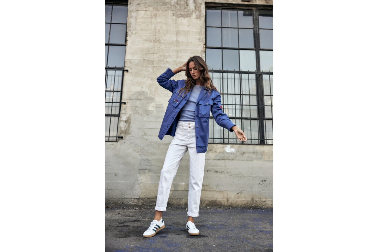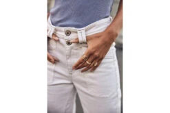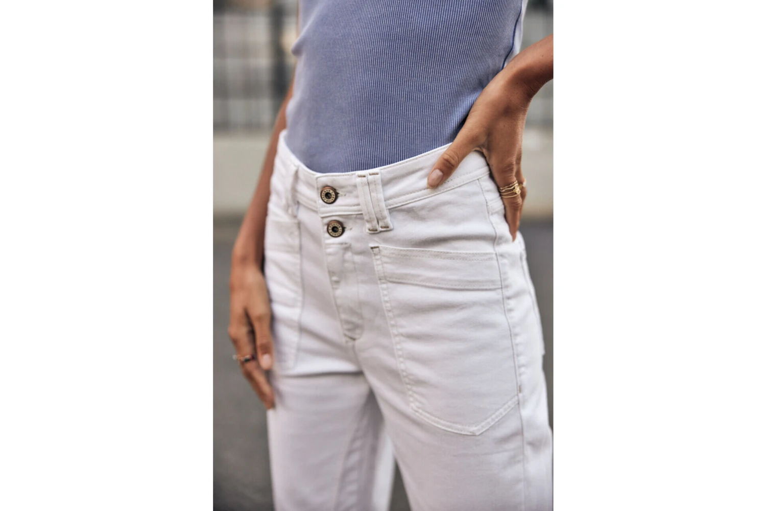 • Matière twill légèrement stretch, blanc cassé, toucher doux