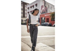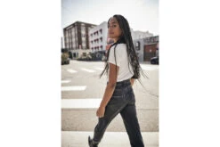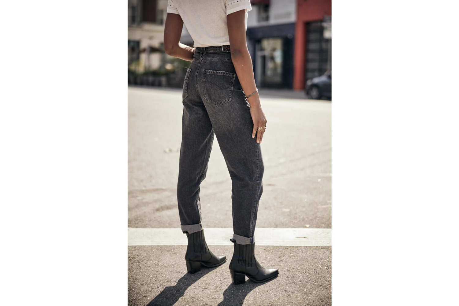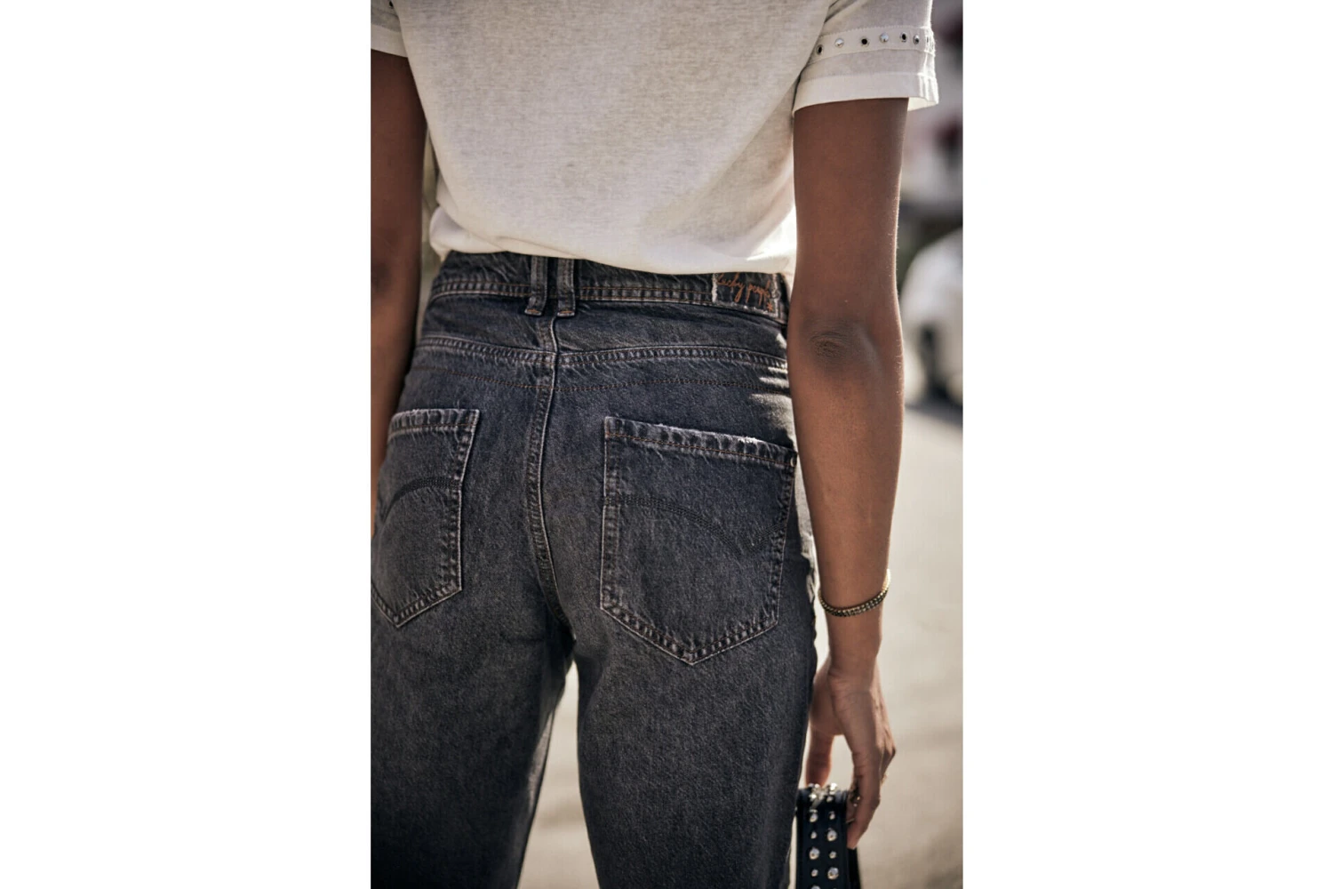Anne-Sophie mesure 173 cm et porte une taille 27.