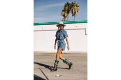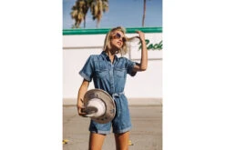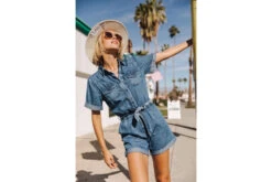 • Combishort, ligne de taille haute avec ceinture à nouer et détails de clous