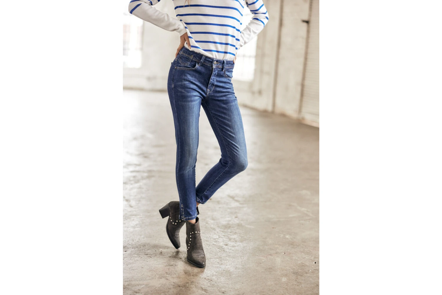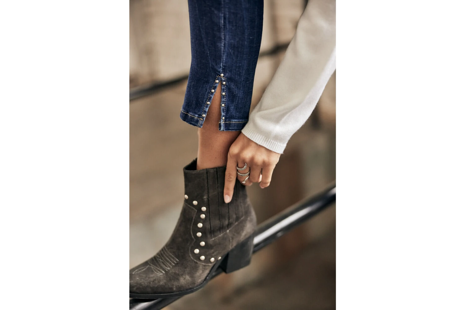 • Coupe super slim, longueur 7/8ème (chevilles) avec fente en bas et détails de clous fantaisies