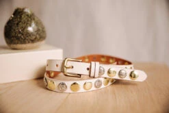 • Ceinture en Cuir agrémentées de clous métal argenté et de clous métal doré
