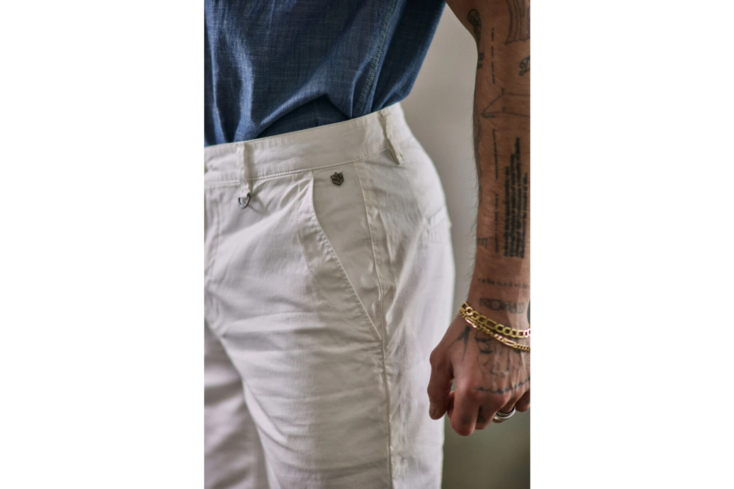 Petite poche passepoilée devant et classique au dos avec boutons Détail métallique sur passant devant