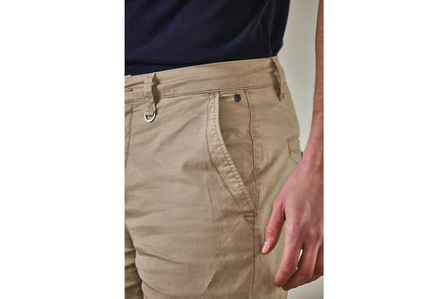 Petite poche passepoilée devant et classique au dos avec boutons Détail métallique sur passant devant