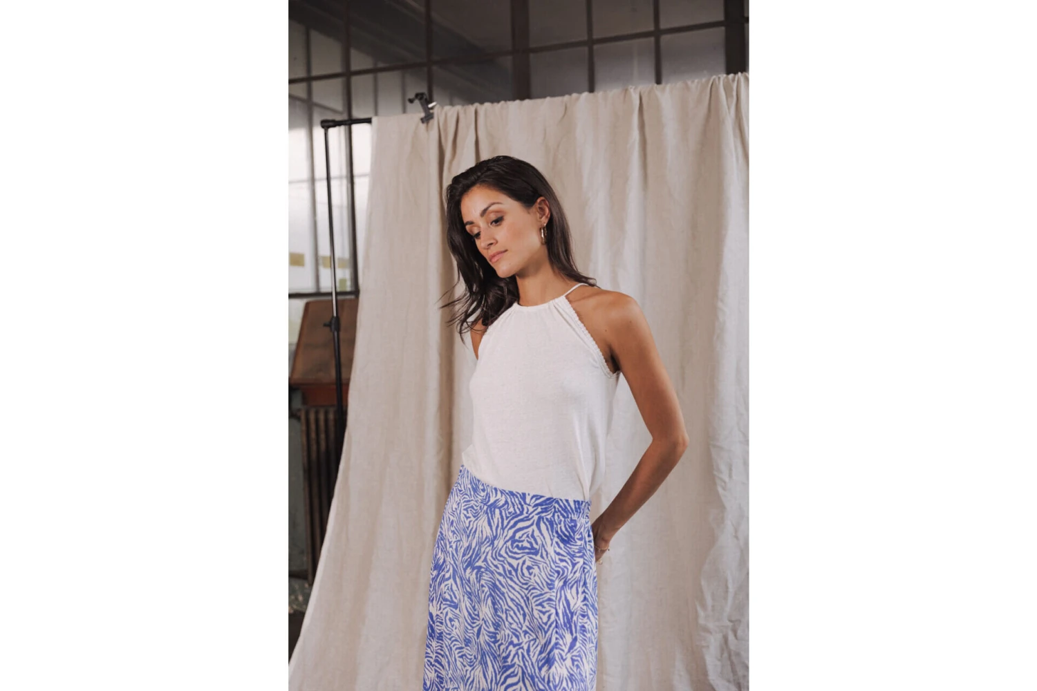 • Découpe le long des jambes sur le devant avec fente du côté gauche