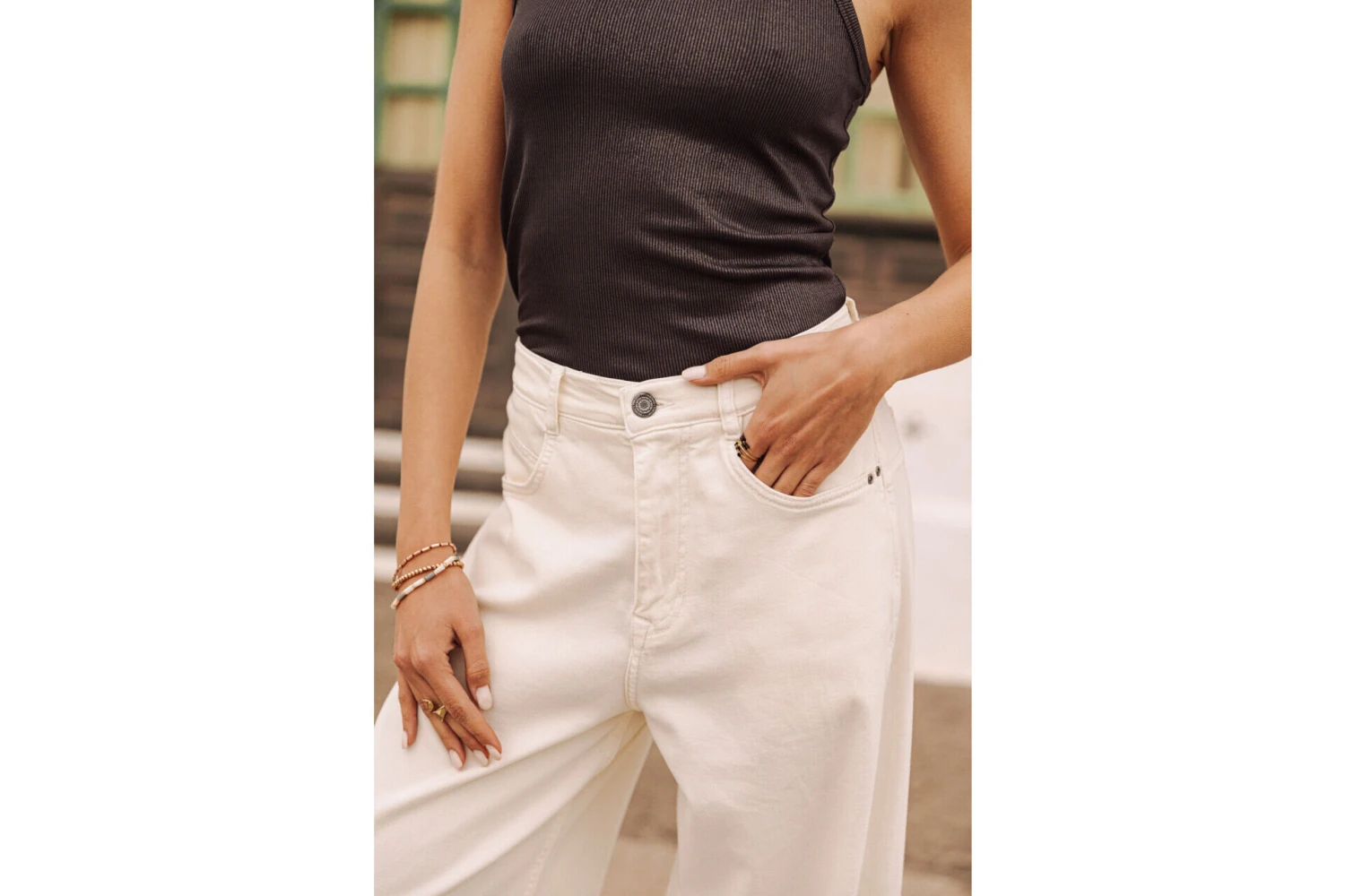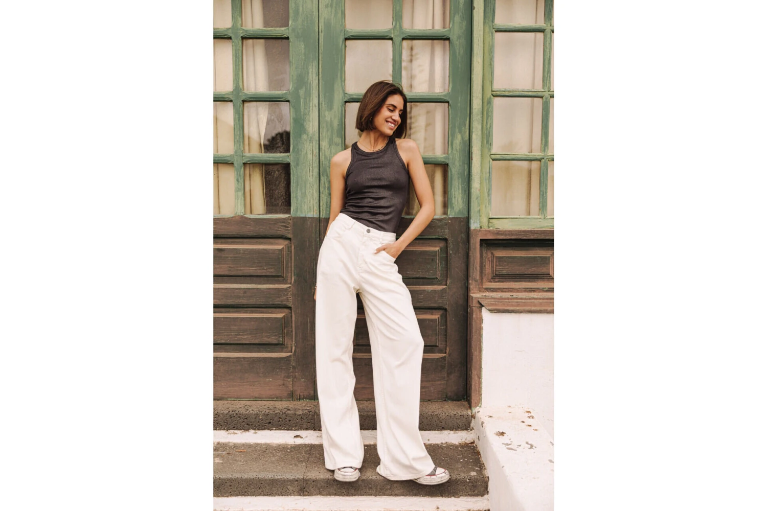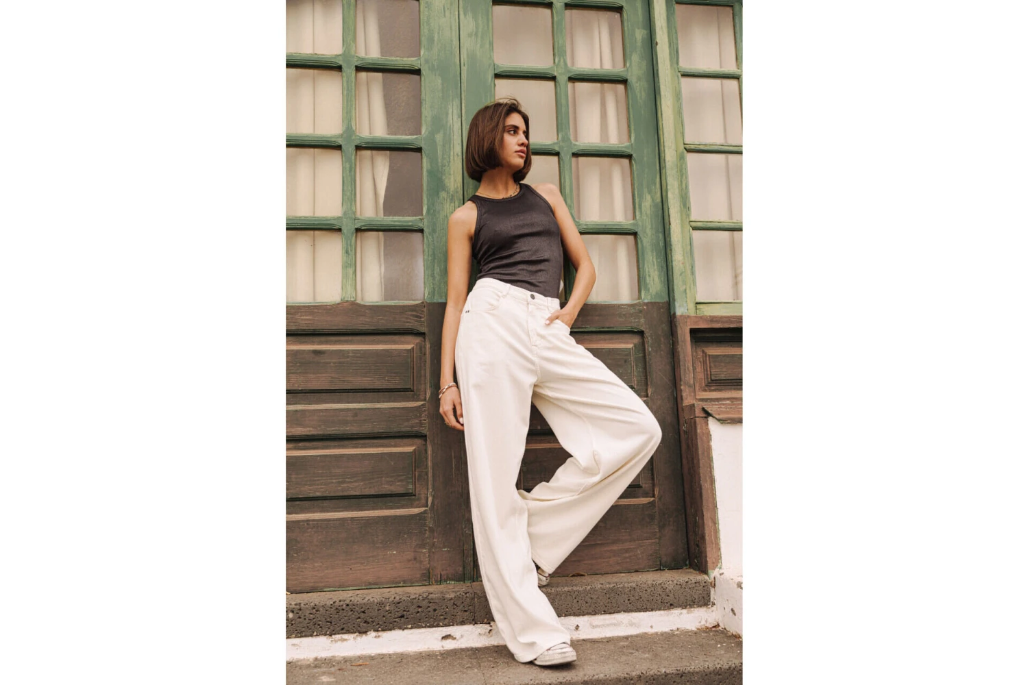 Andrea mesure 175 cm et porte une taille 27.