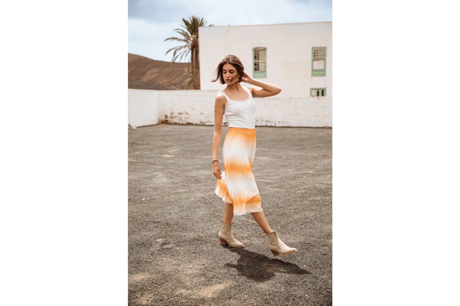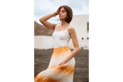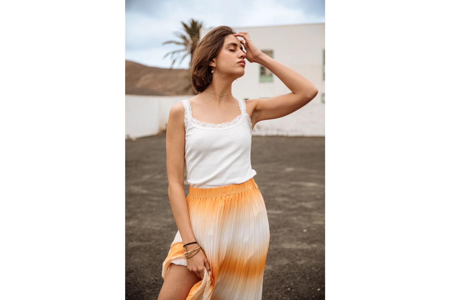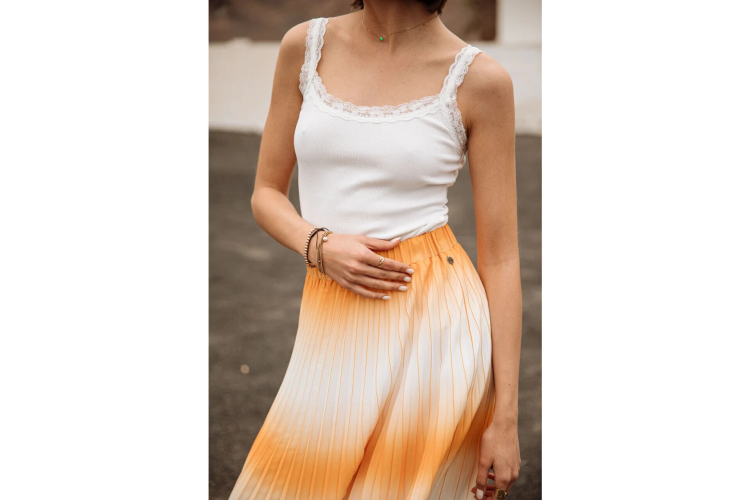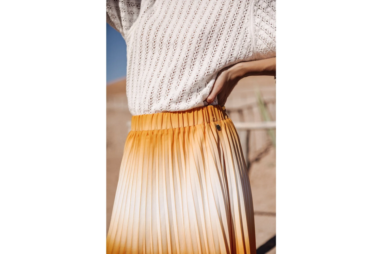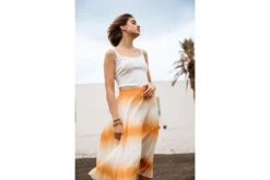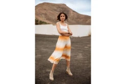 • Effet tie&dye en bandes horizontales bicolores blanc et jaune