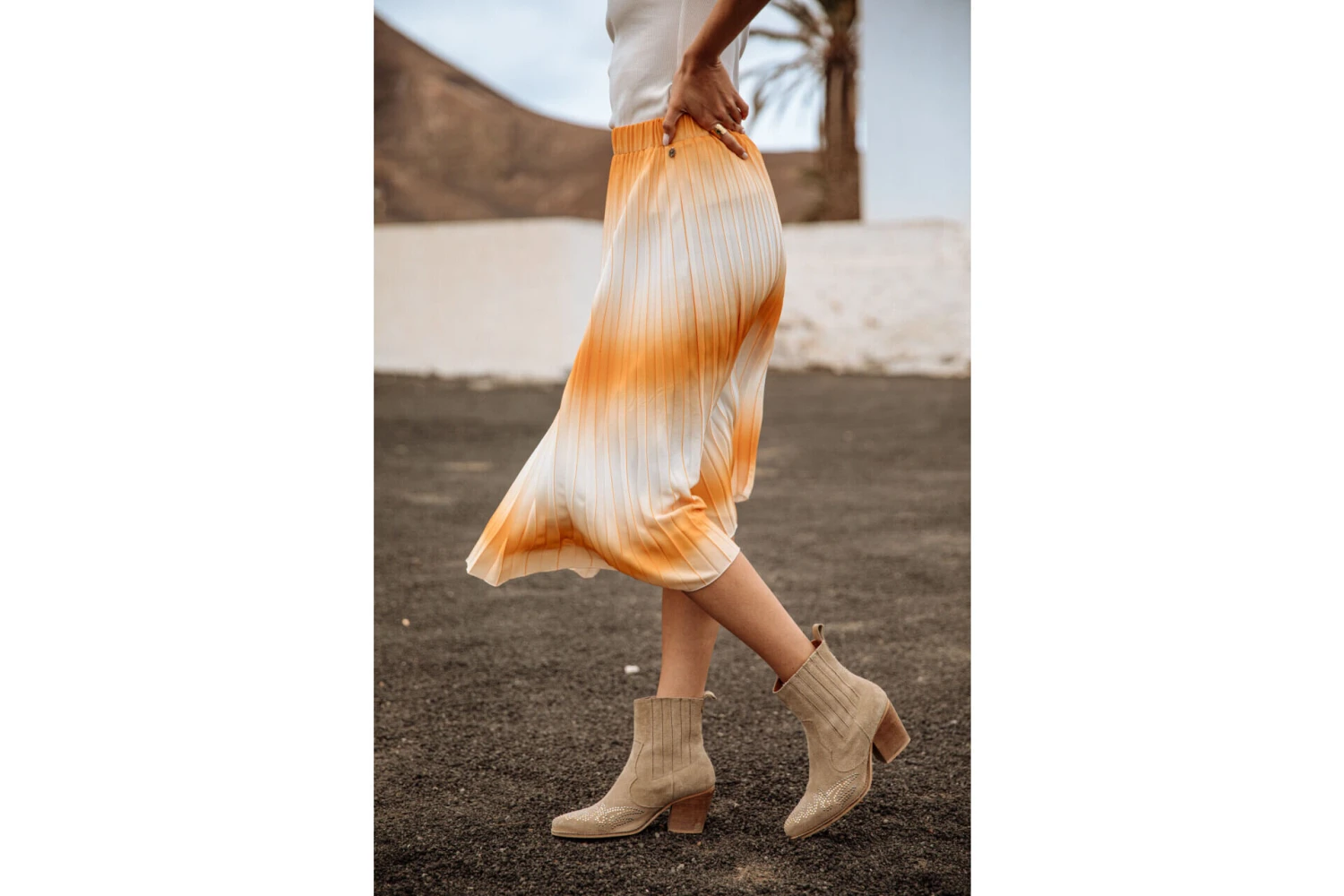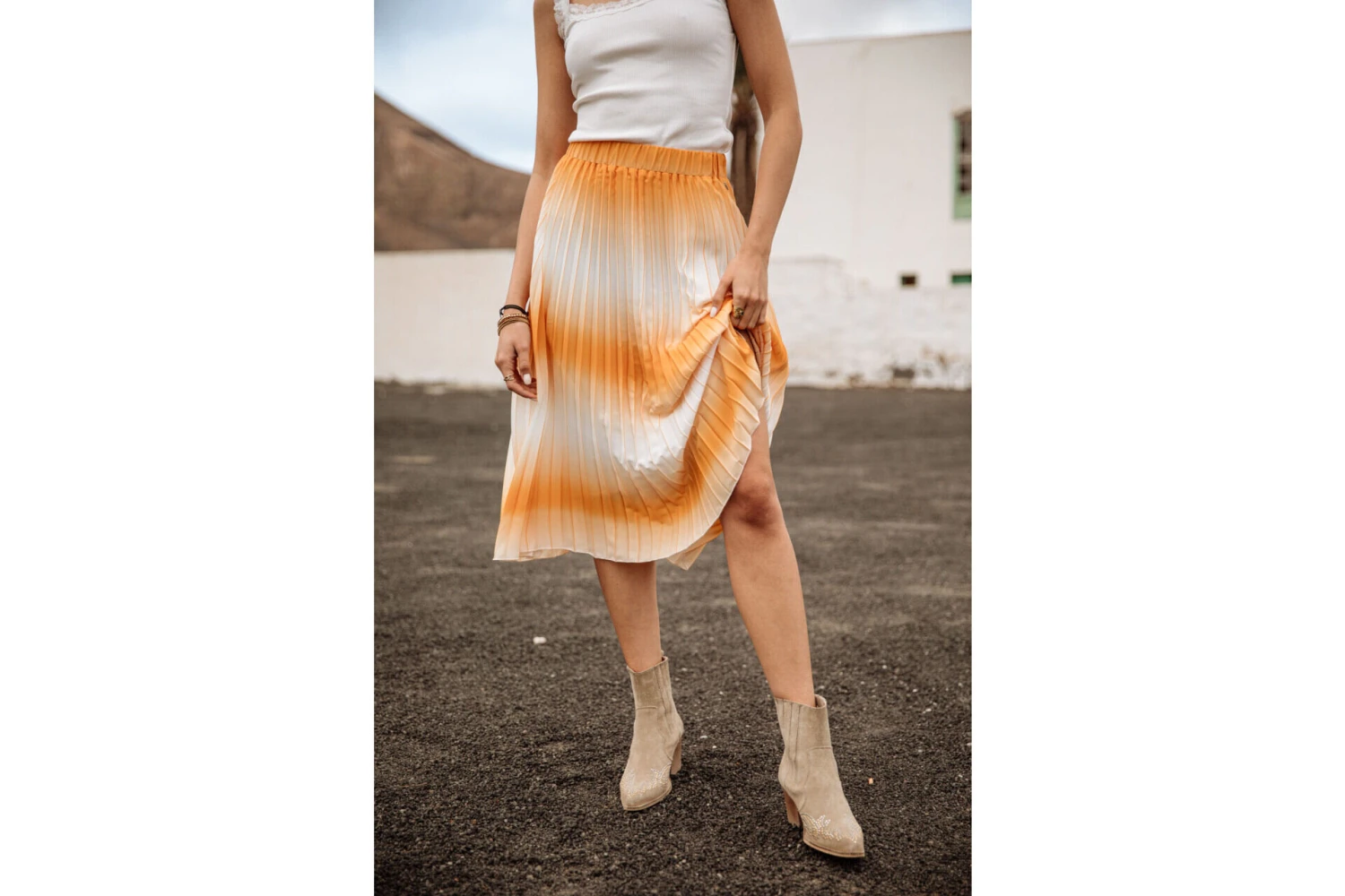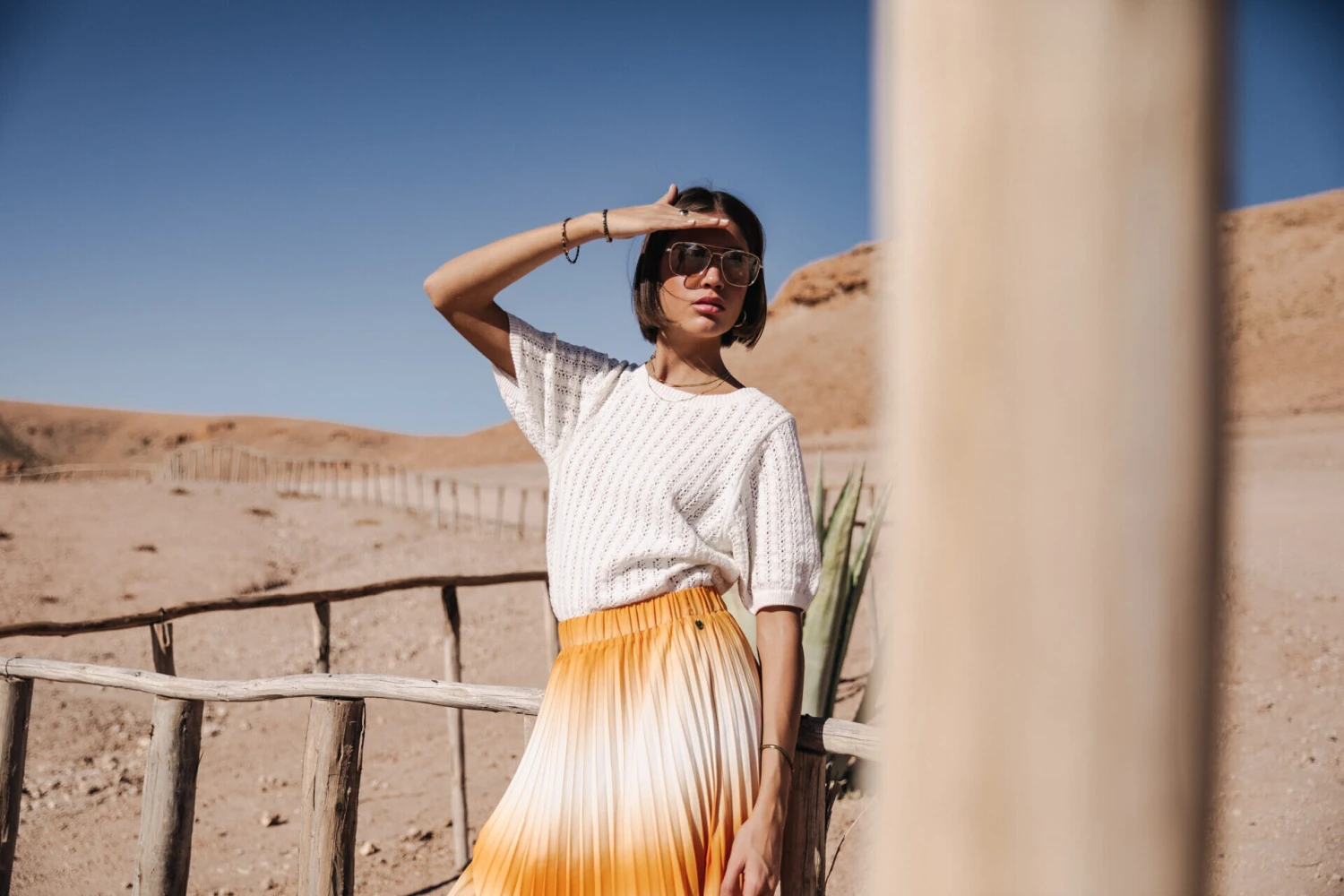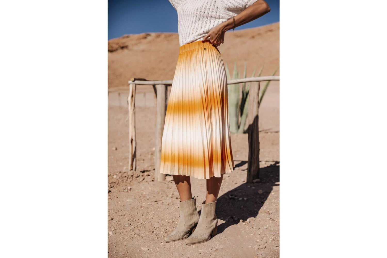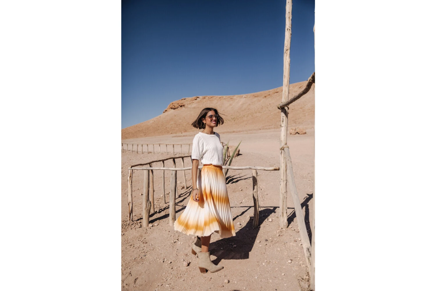 • Effet tie&dye en bandes horizontales bicolores blanc et jaune
