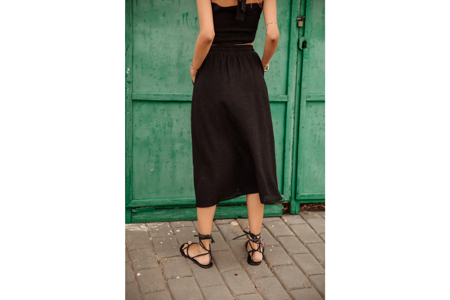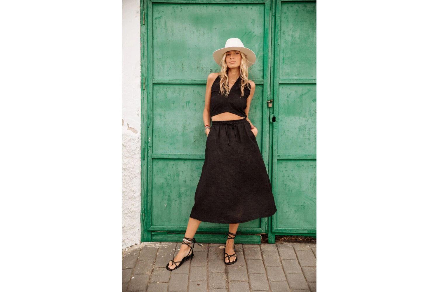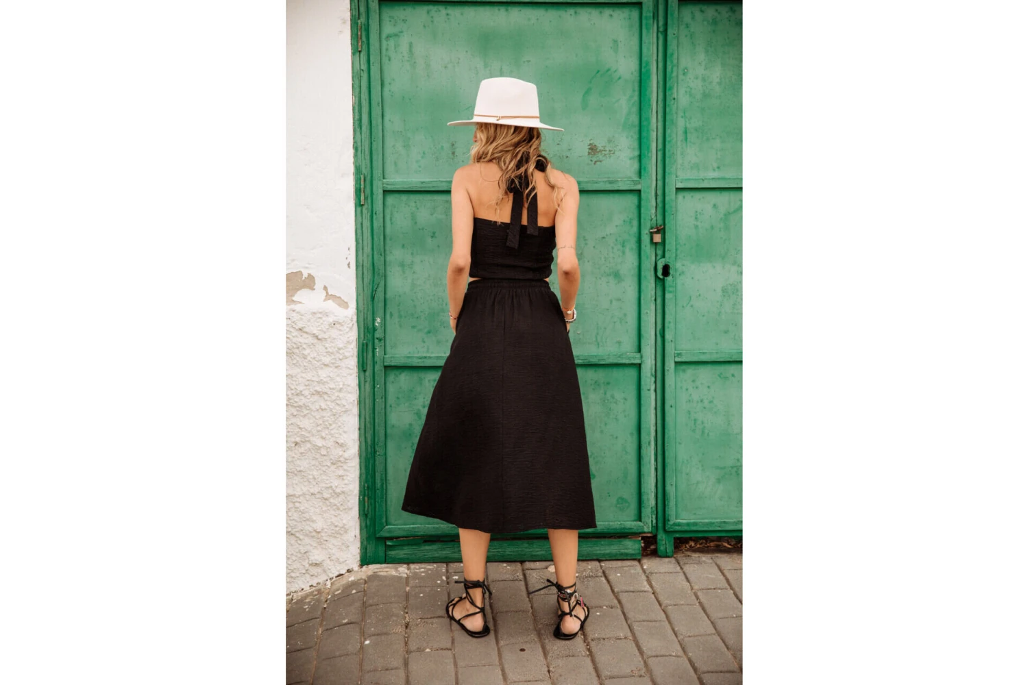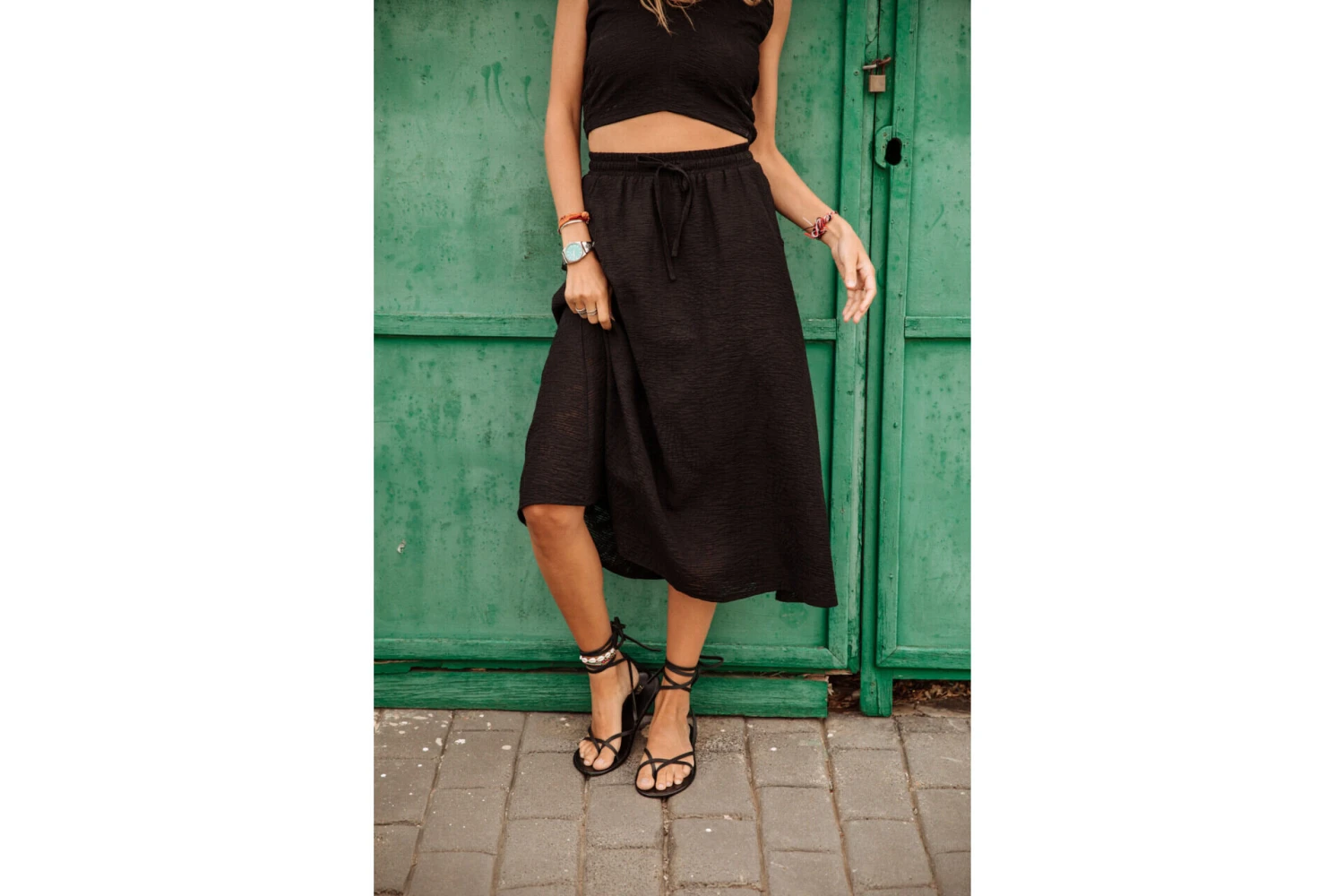 Laura mesure 175 cm et porte une taille S.