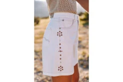 • Matière twill légèrement stretch, blanc cassé, toucher doux