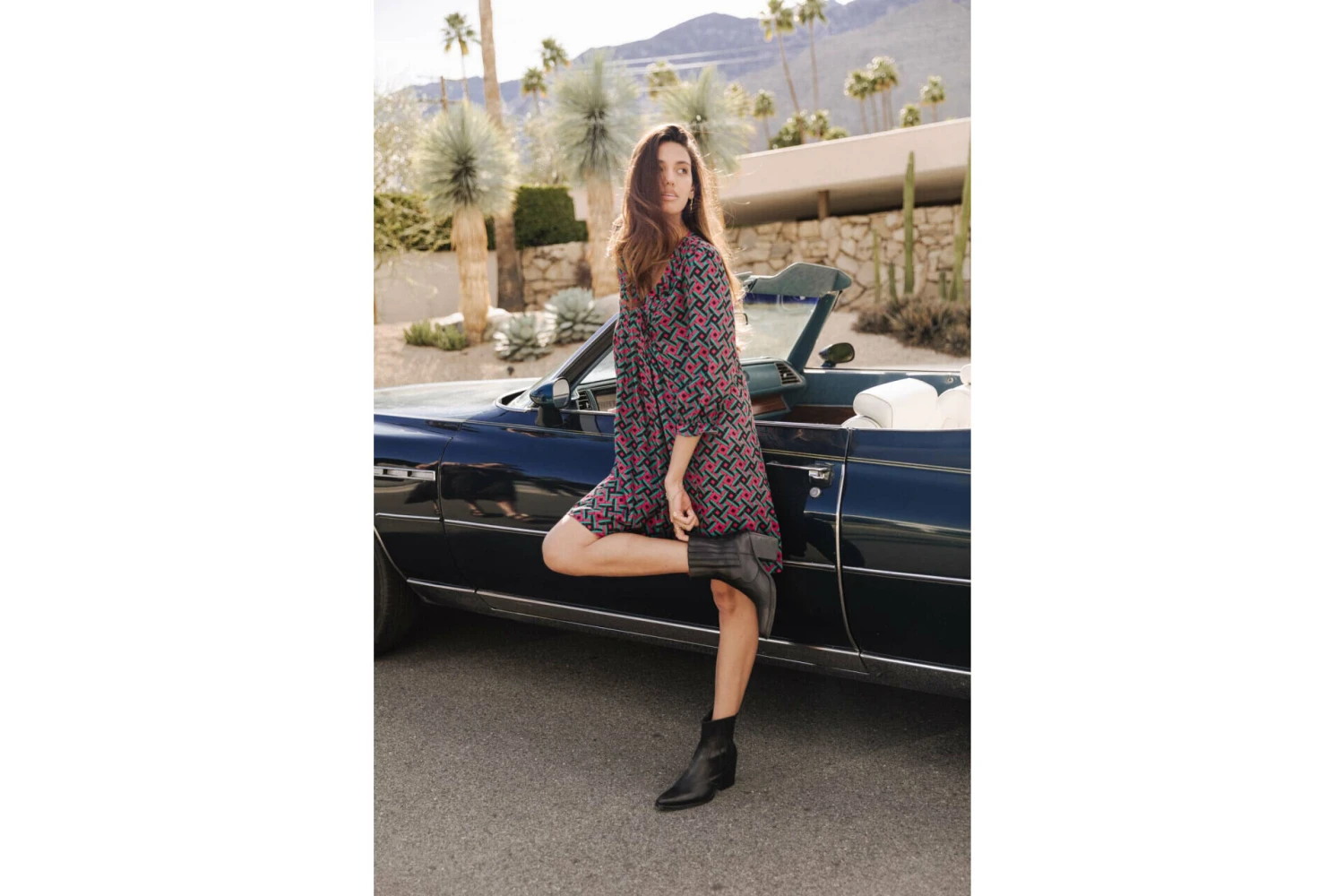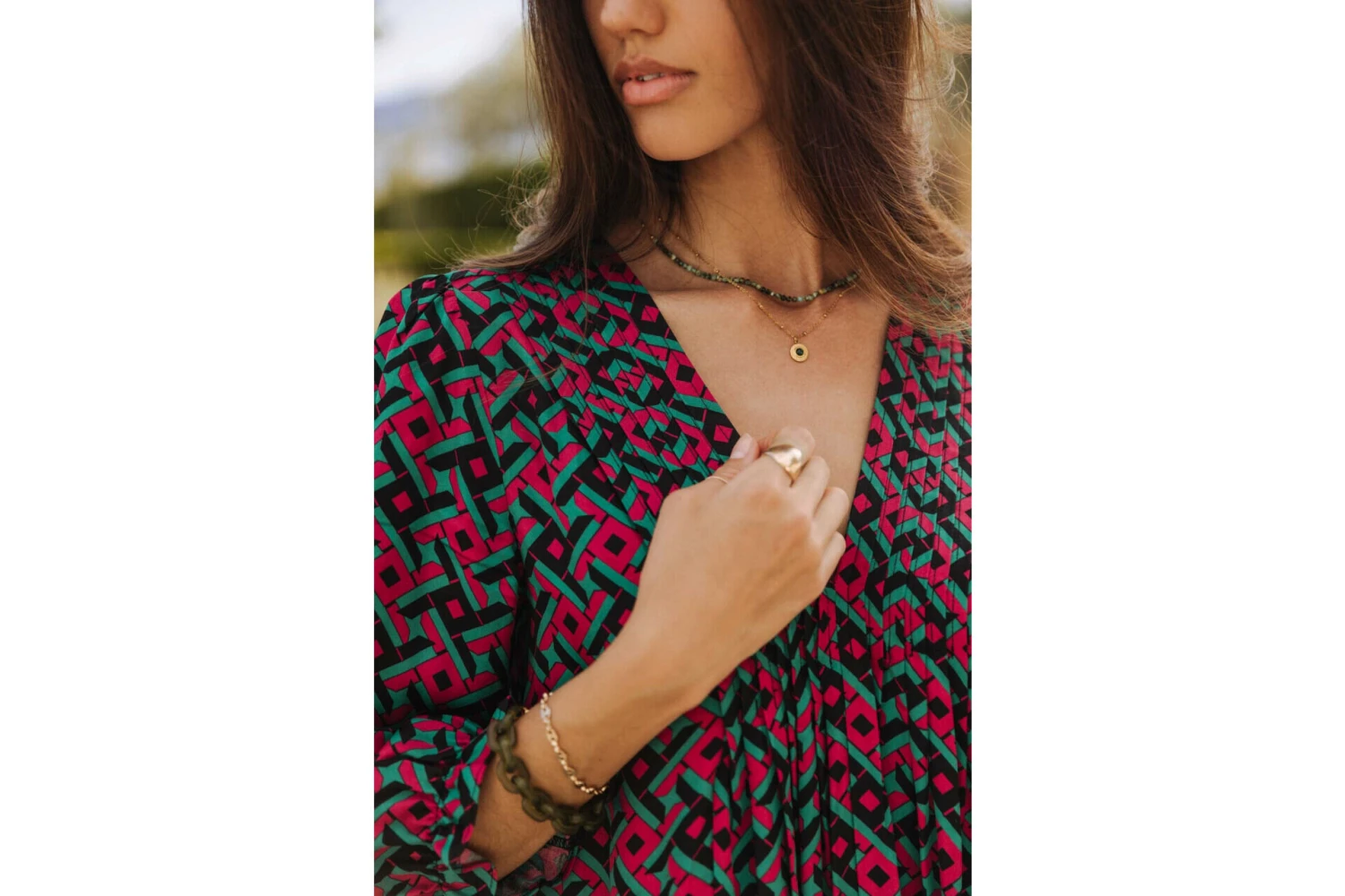• Imprimé géométrique rose et vert