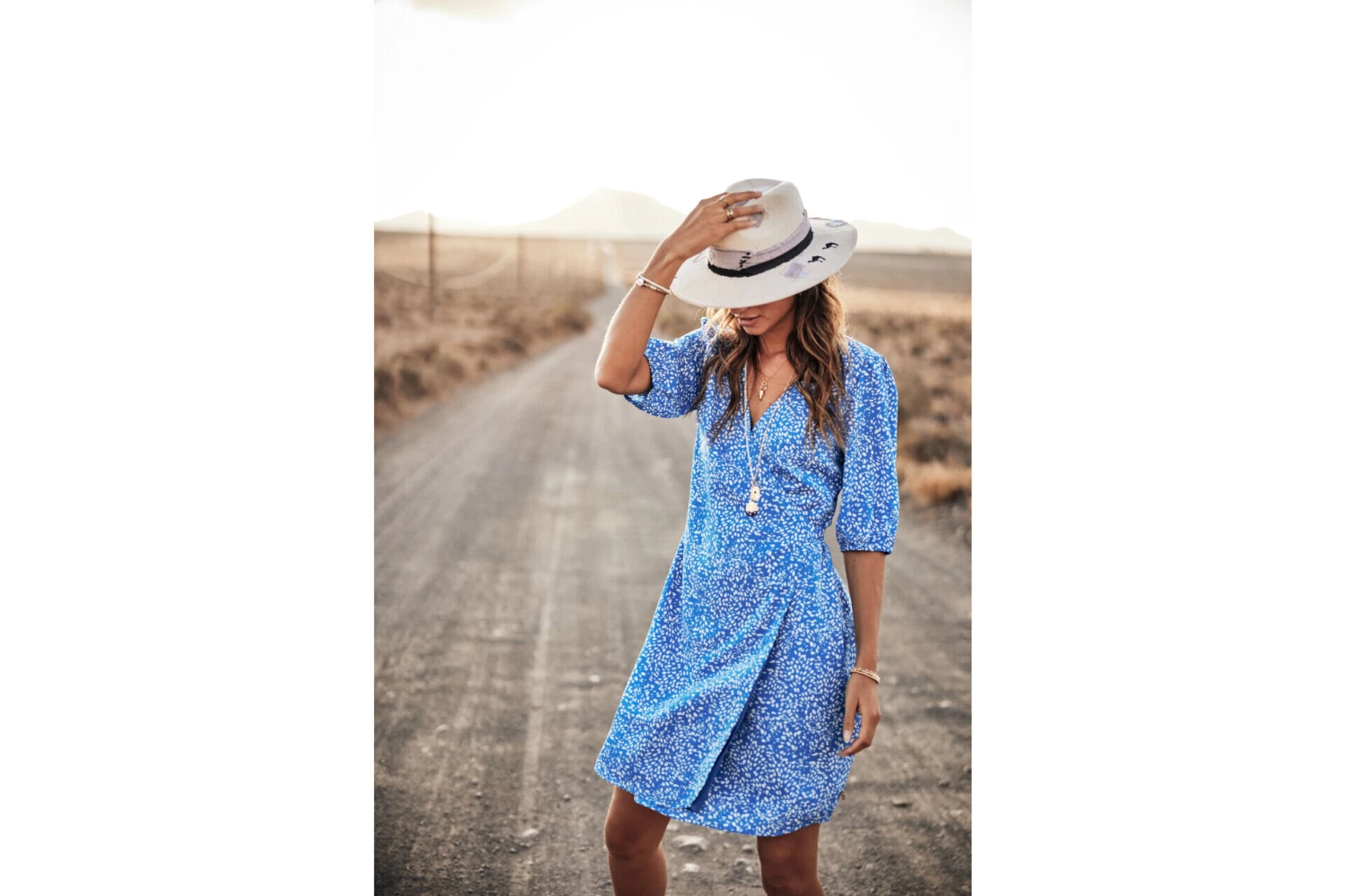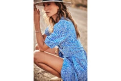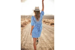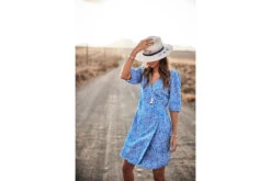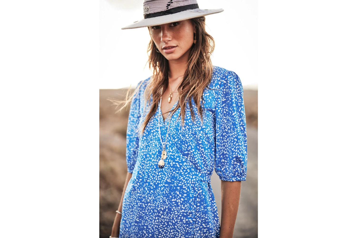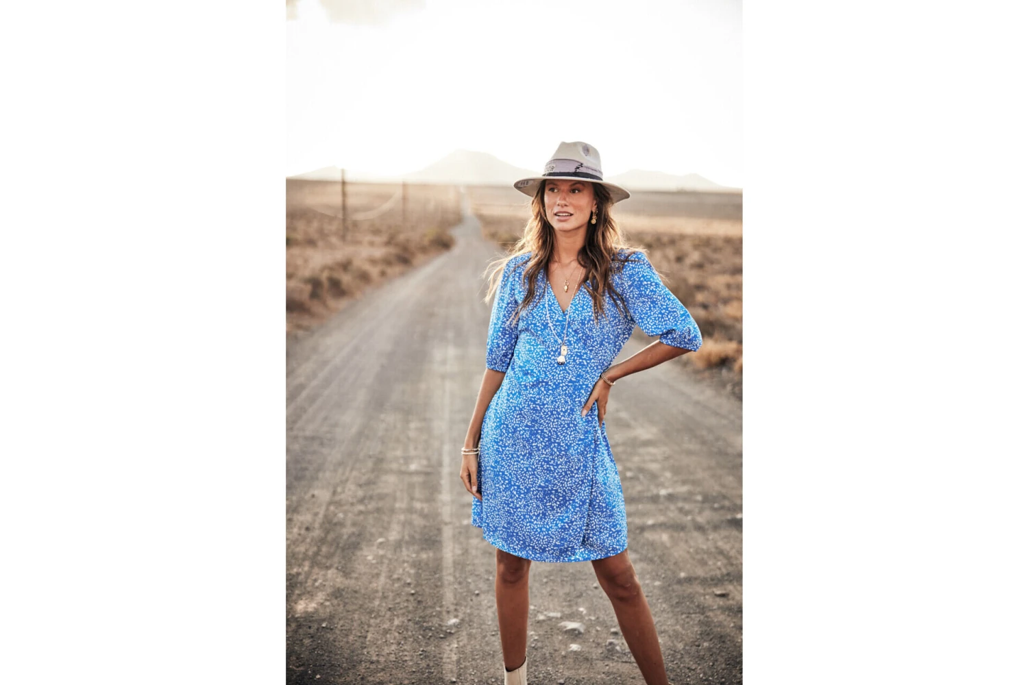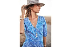 • Robe courte porte-feuille à manches 3/4 dans un tissu fluide et léger