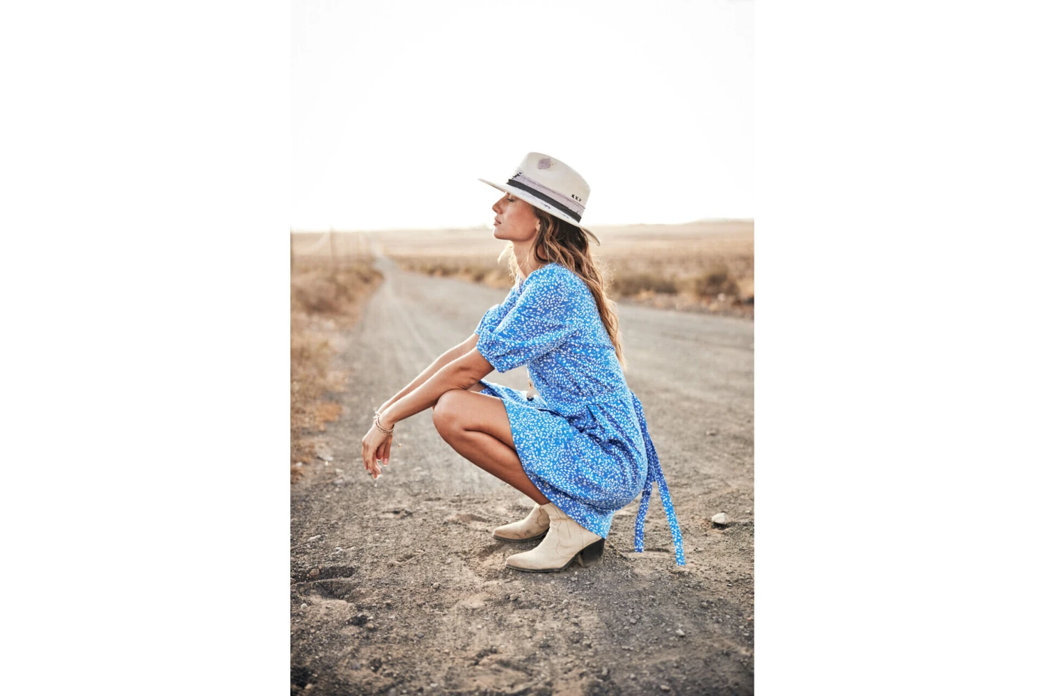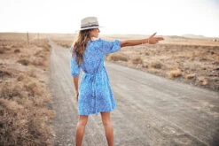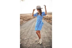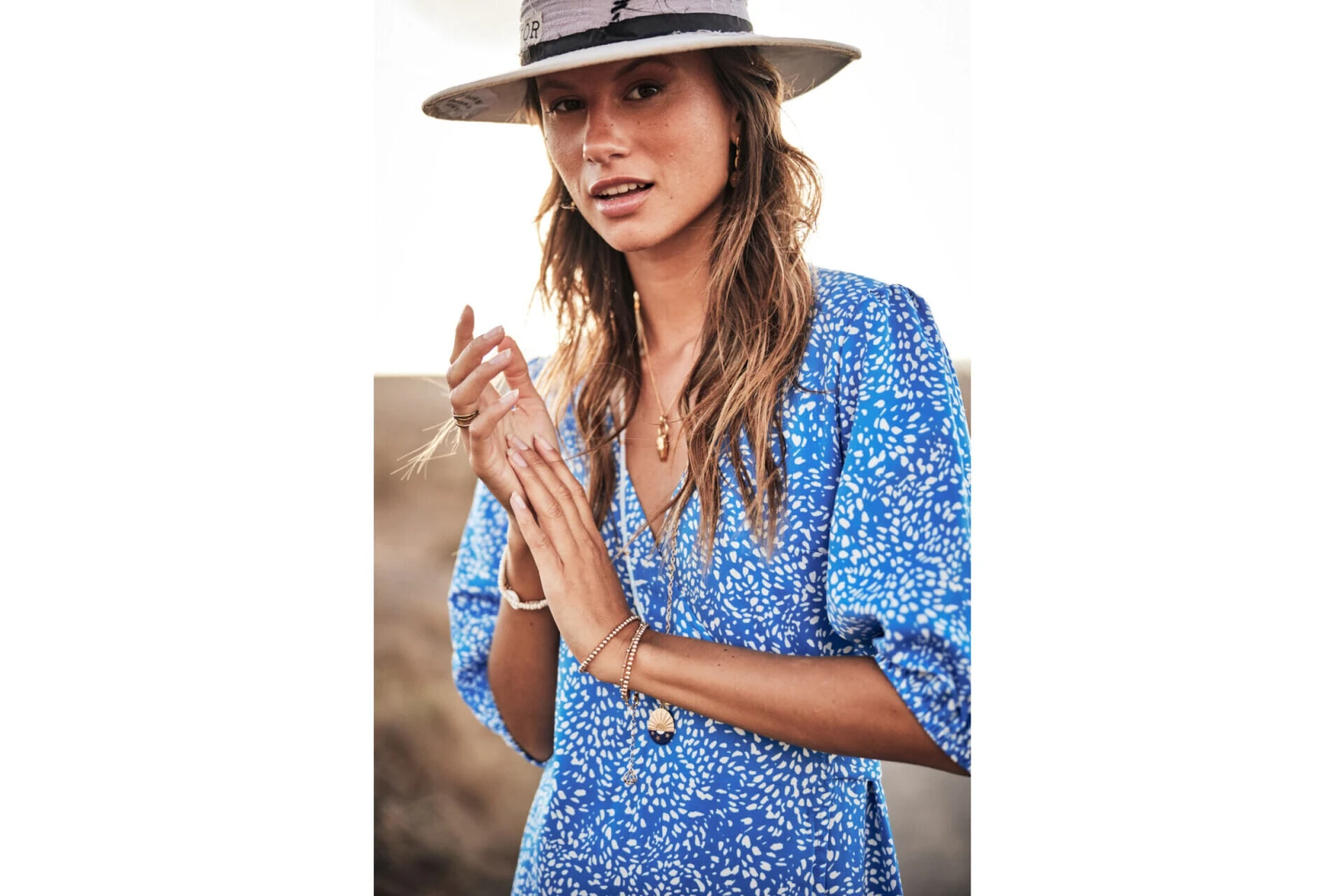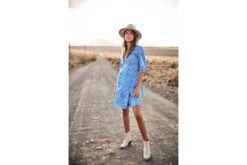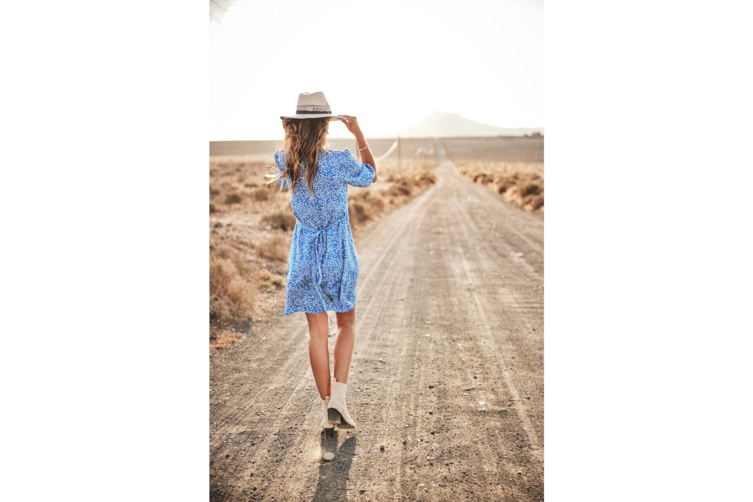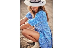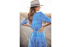 • Robe courte porte-feuille à manches 3/4 dans un tissu fluide et léger