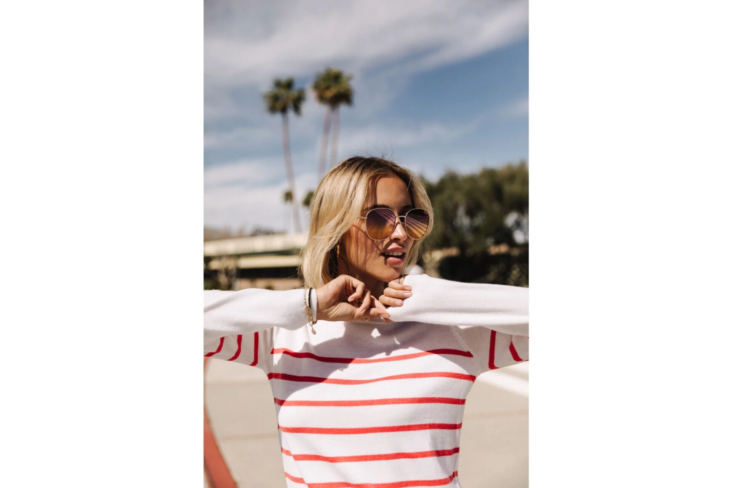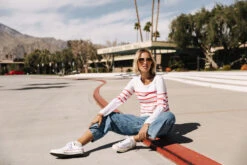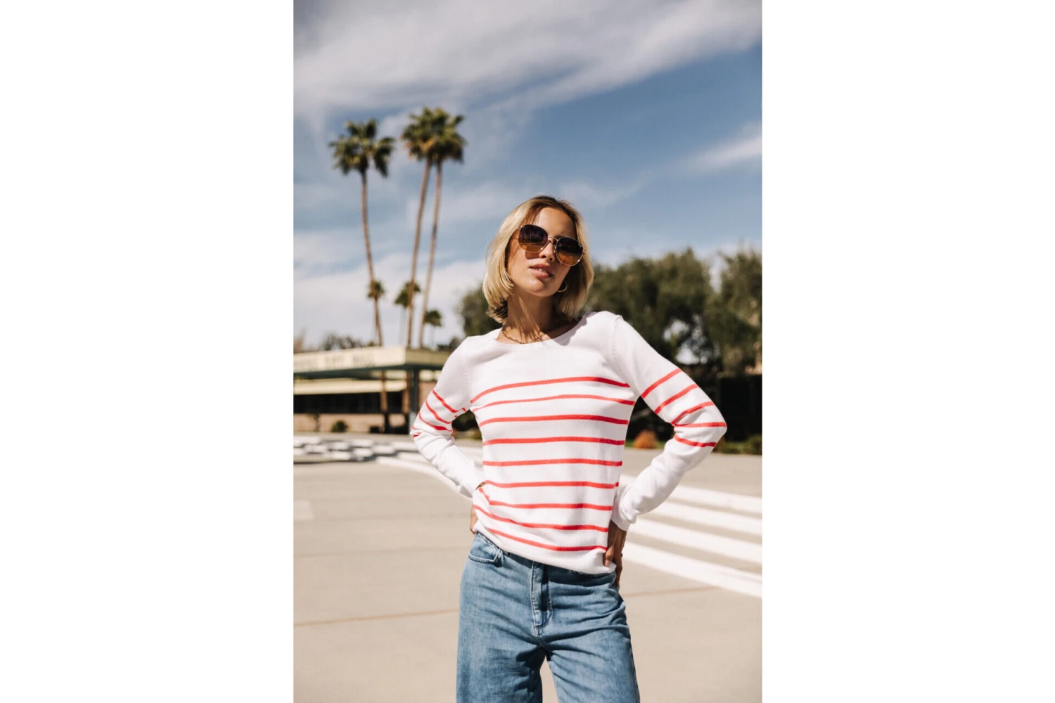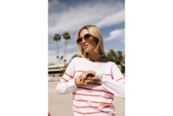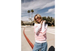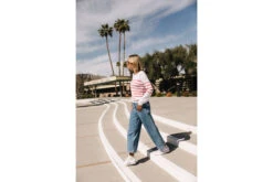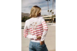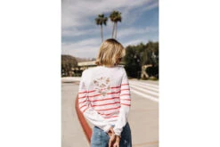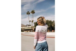 • Pull ajusté col rond et manches longues à fines rayures