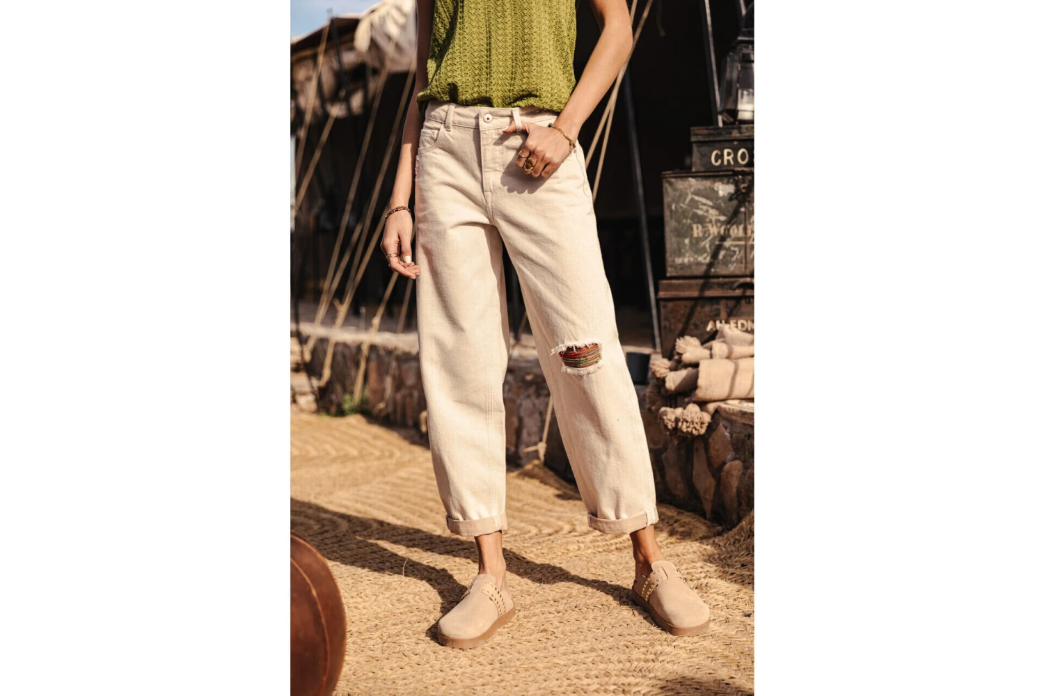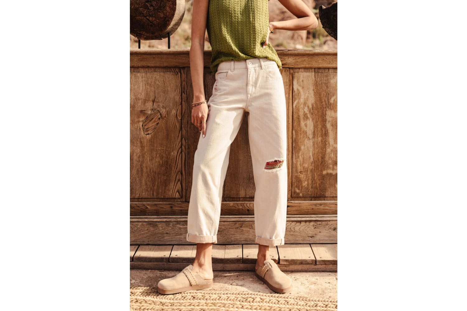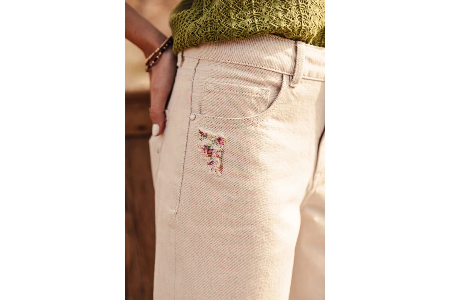 • Coupe broyfriend, jambe ample hanches et haut des cuisses puis se resserre en bas