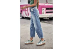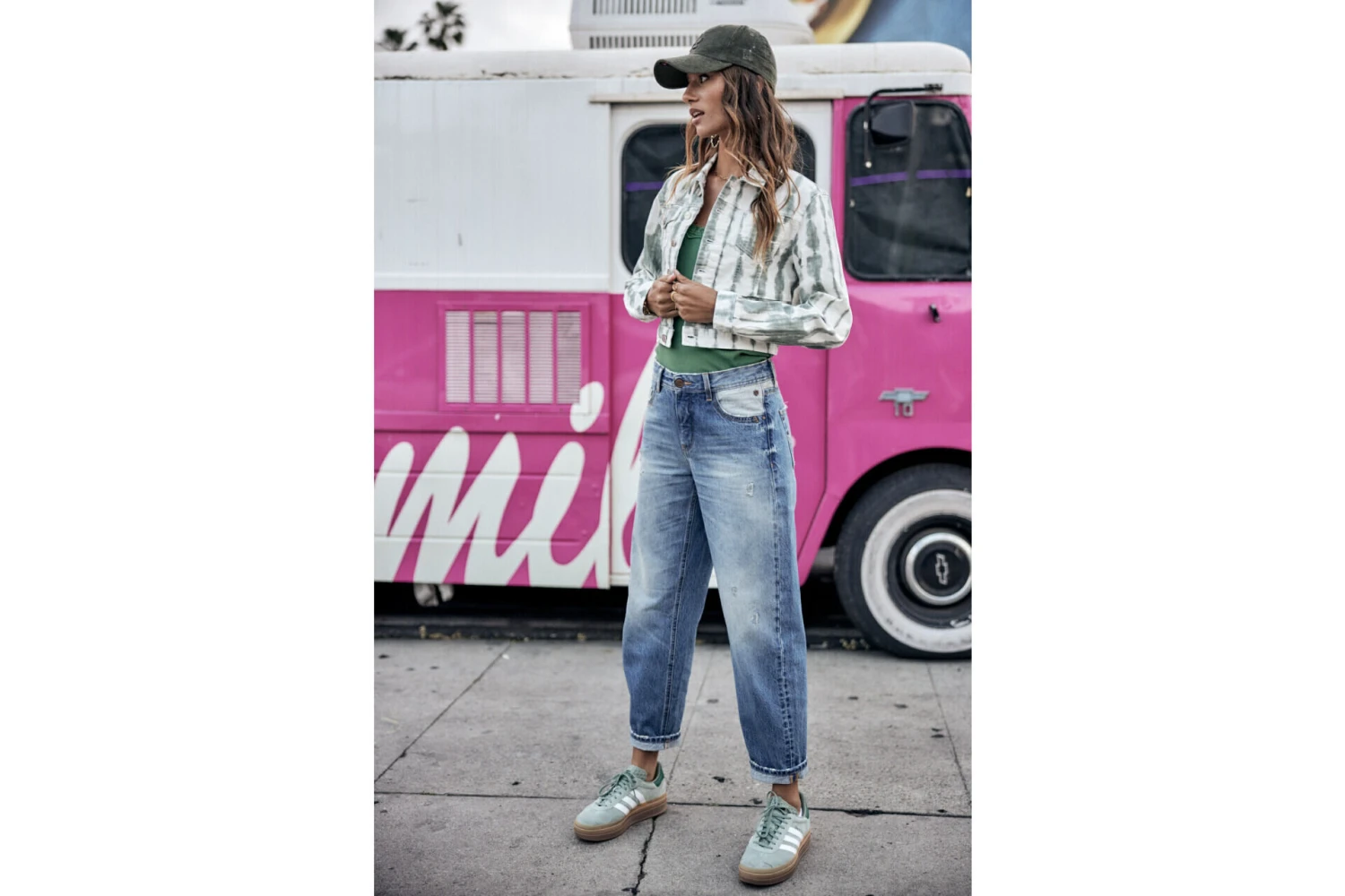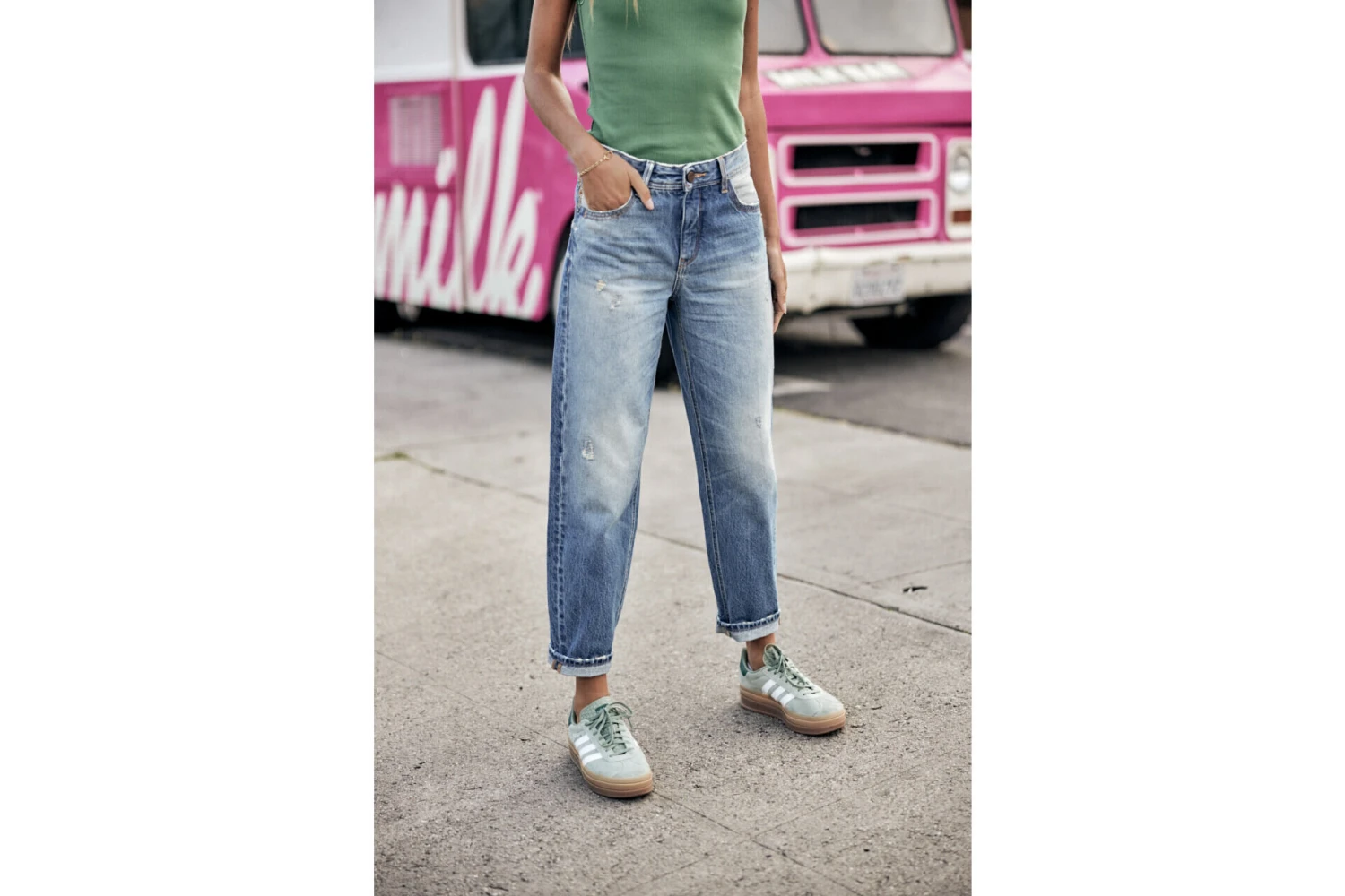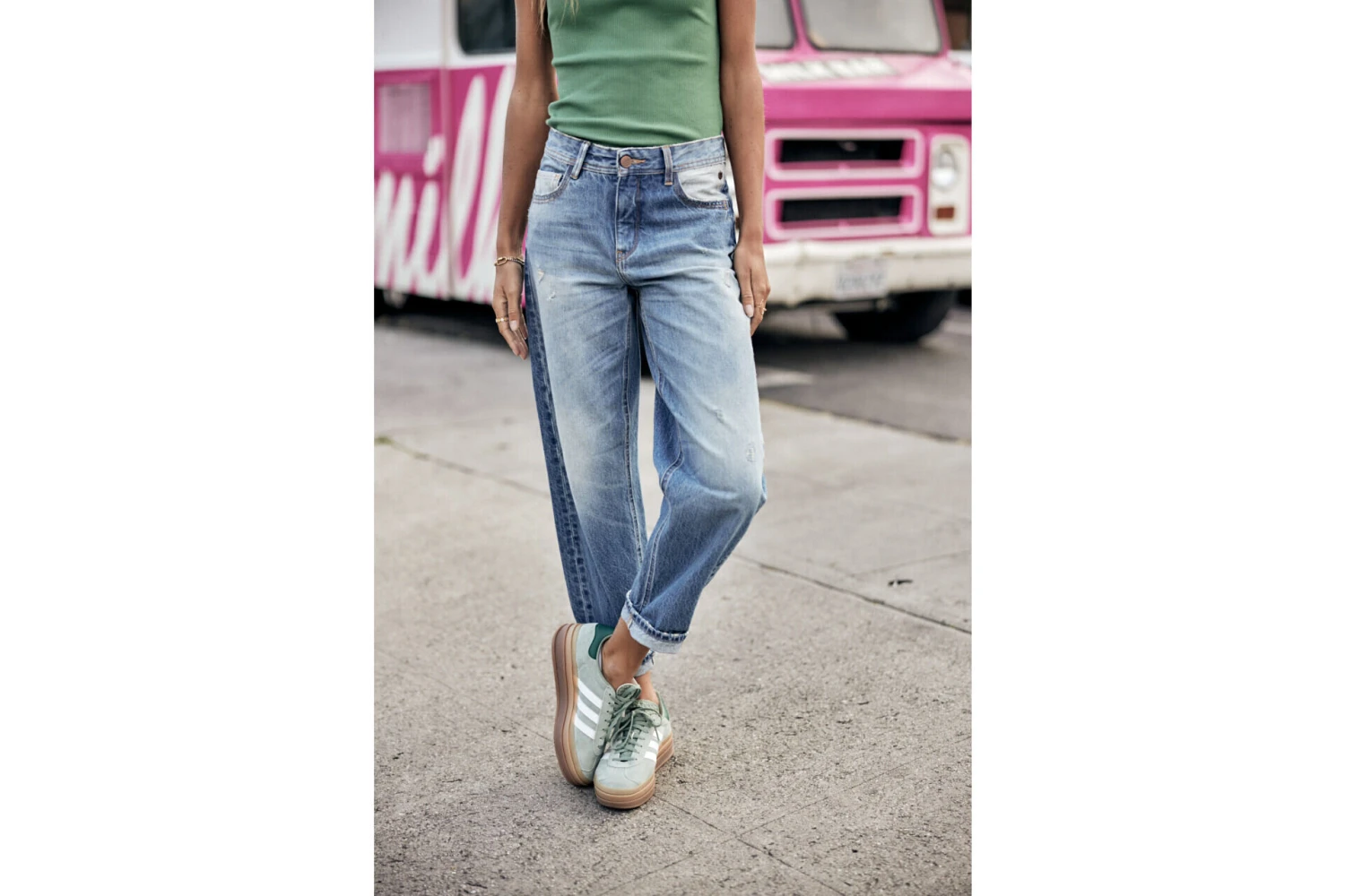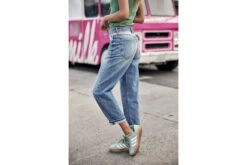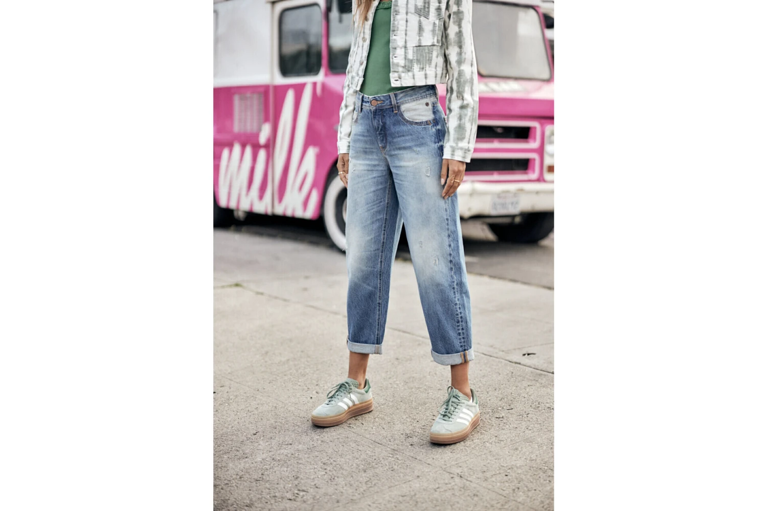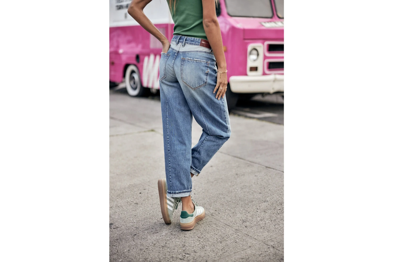 • Coupe broyfriend, jambe ample hanches et haut des cuisses puis se resserre en bas
