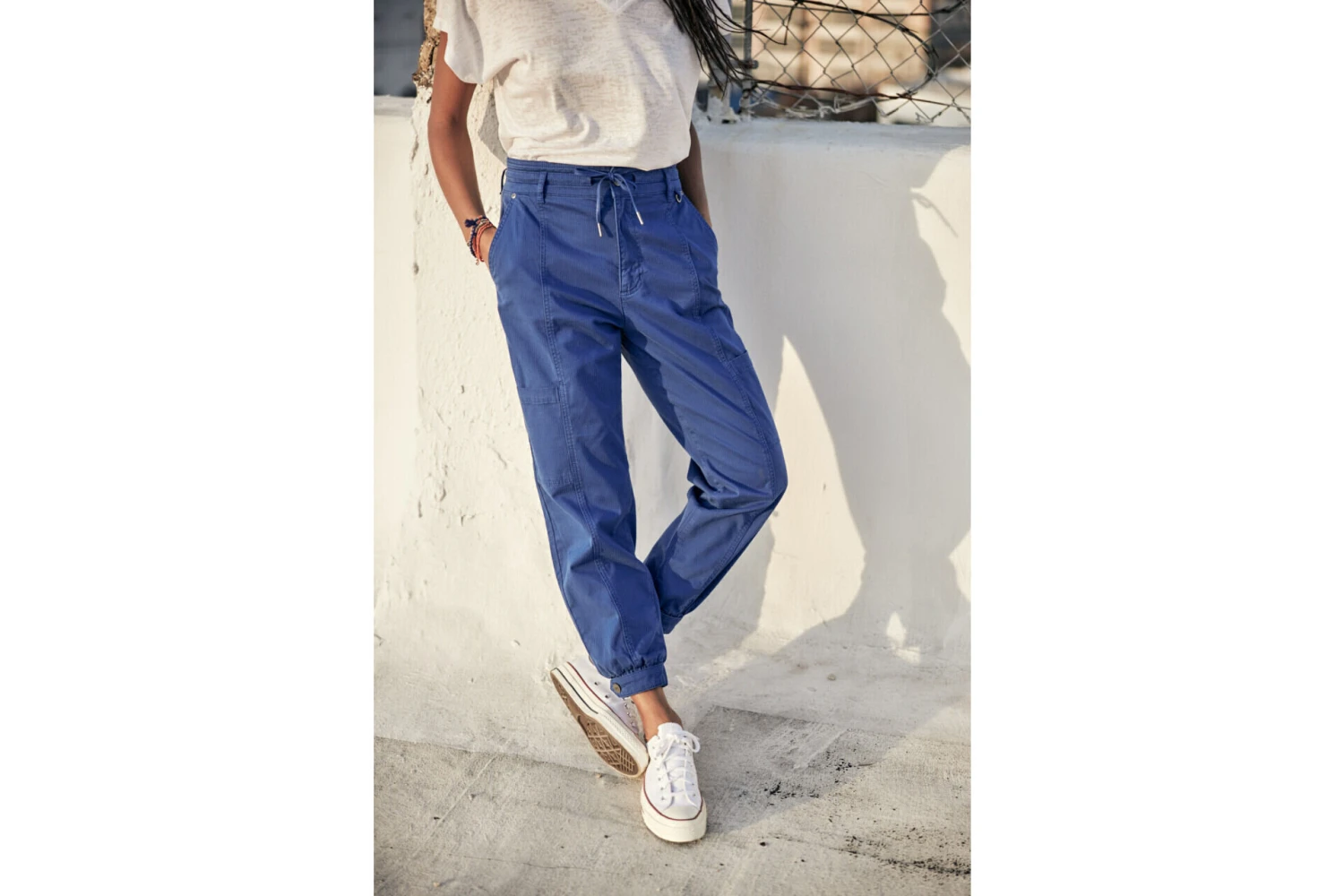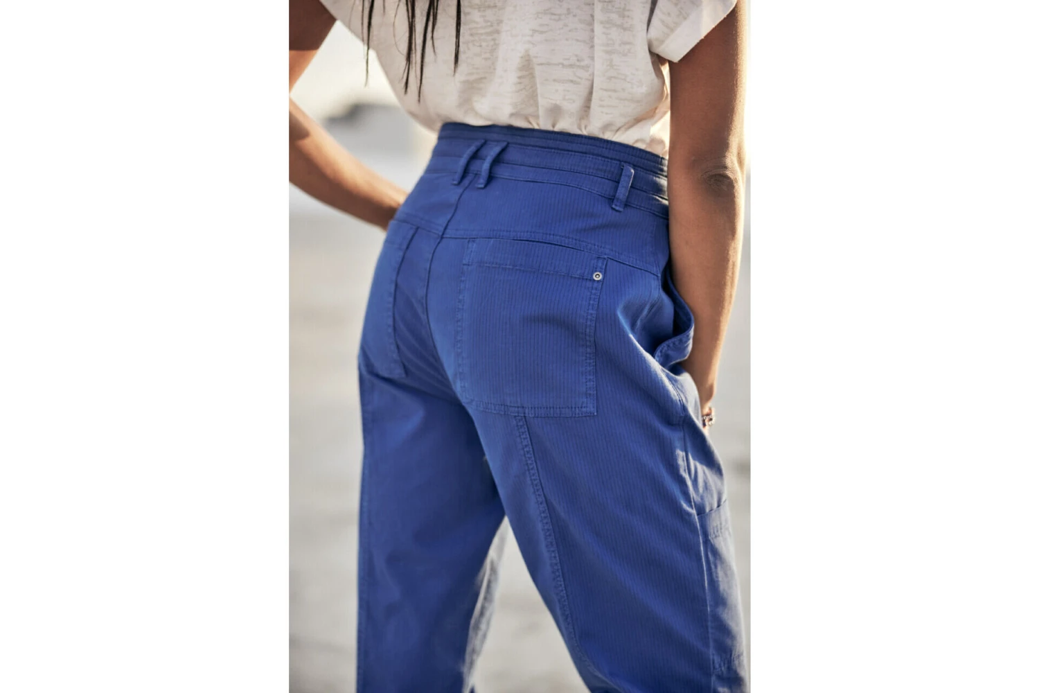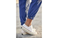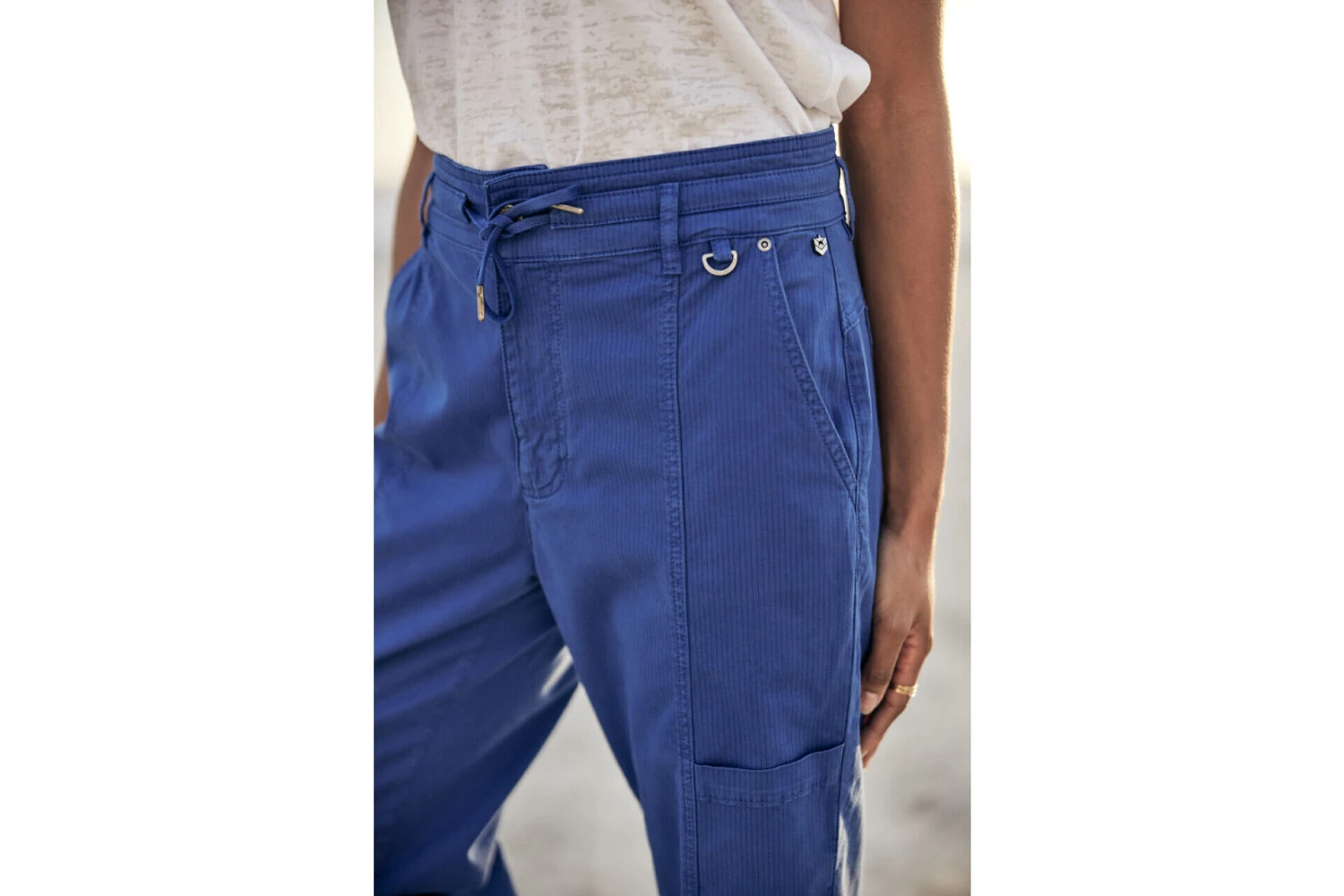 • Pantalon cargo, jambe ample sur hanches et haut des cuisses puis se resserre en bas.
