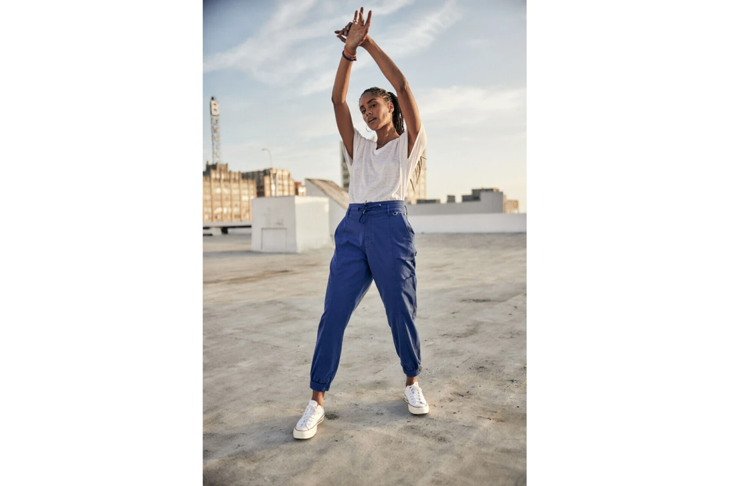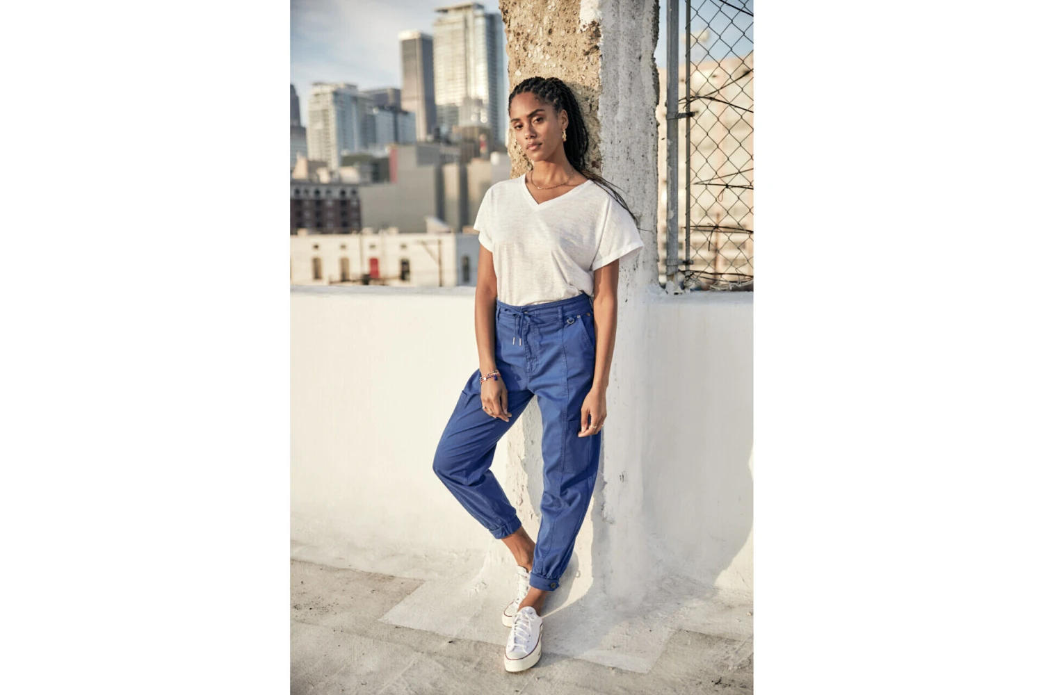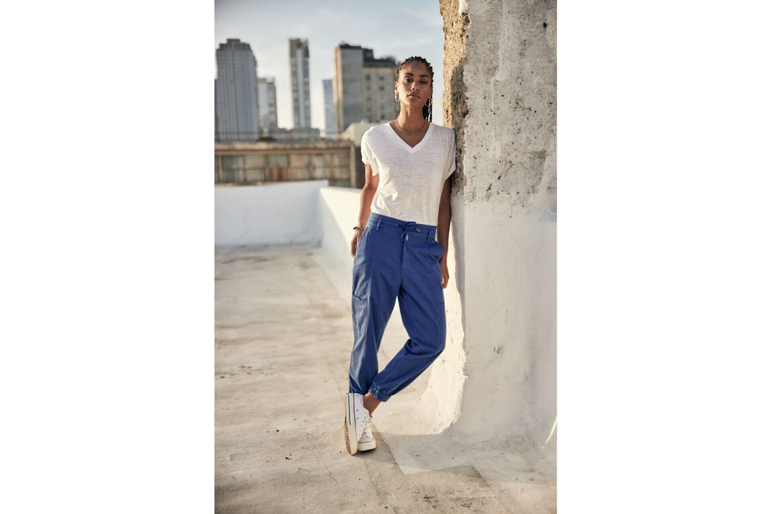 • Pantalon cargo, jambe ample sur hanches et haut des cuisses puis se resserre en bas.