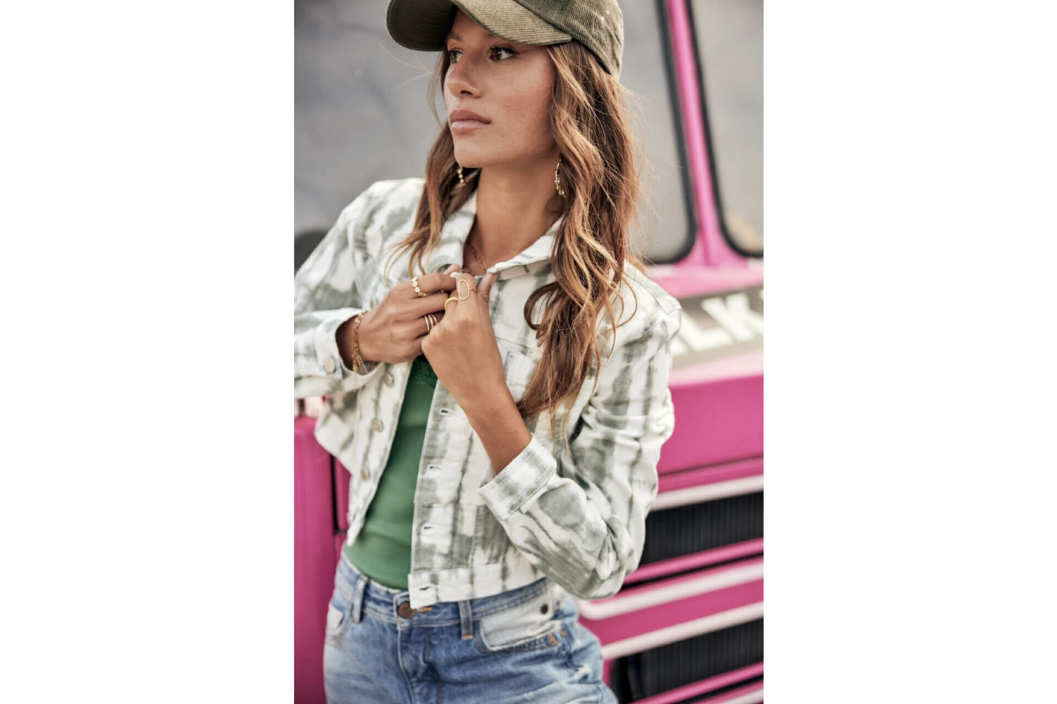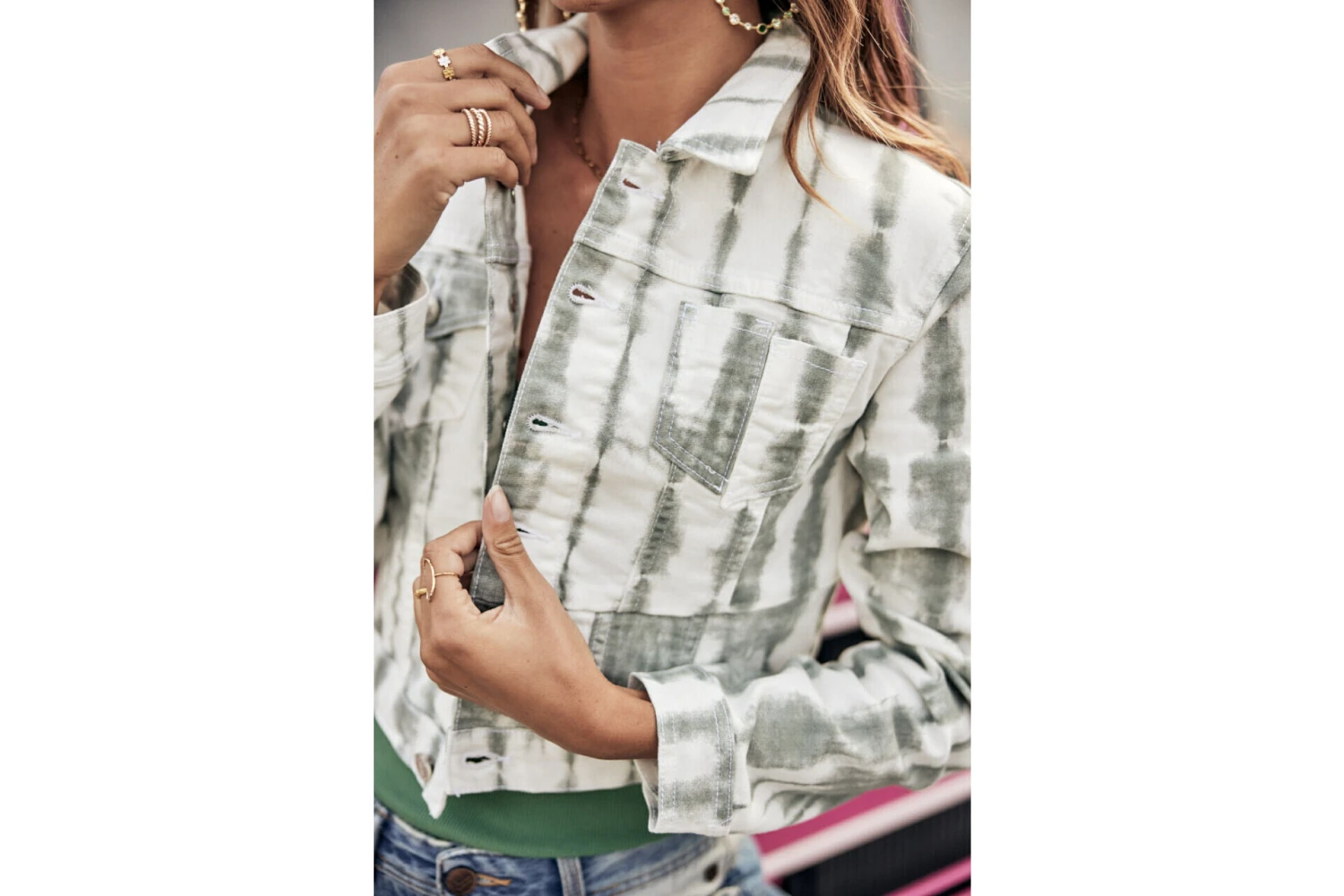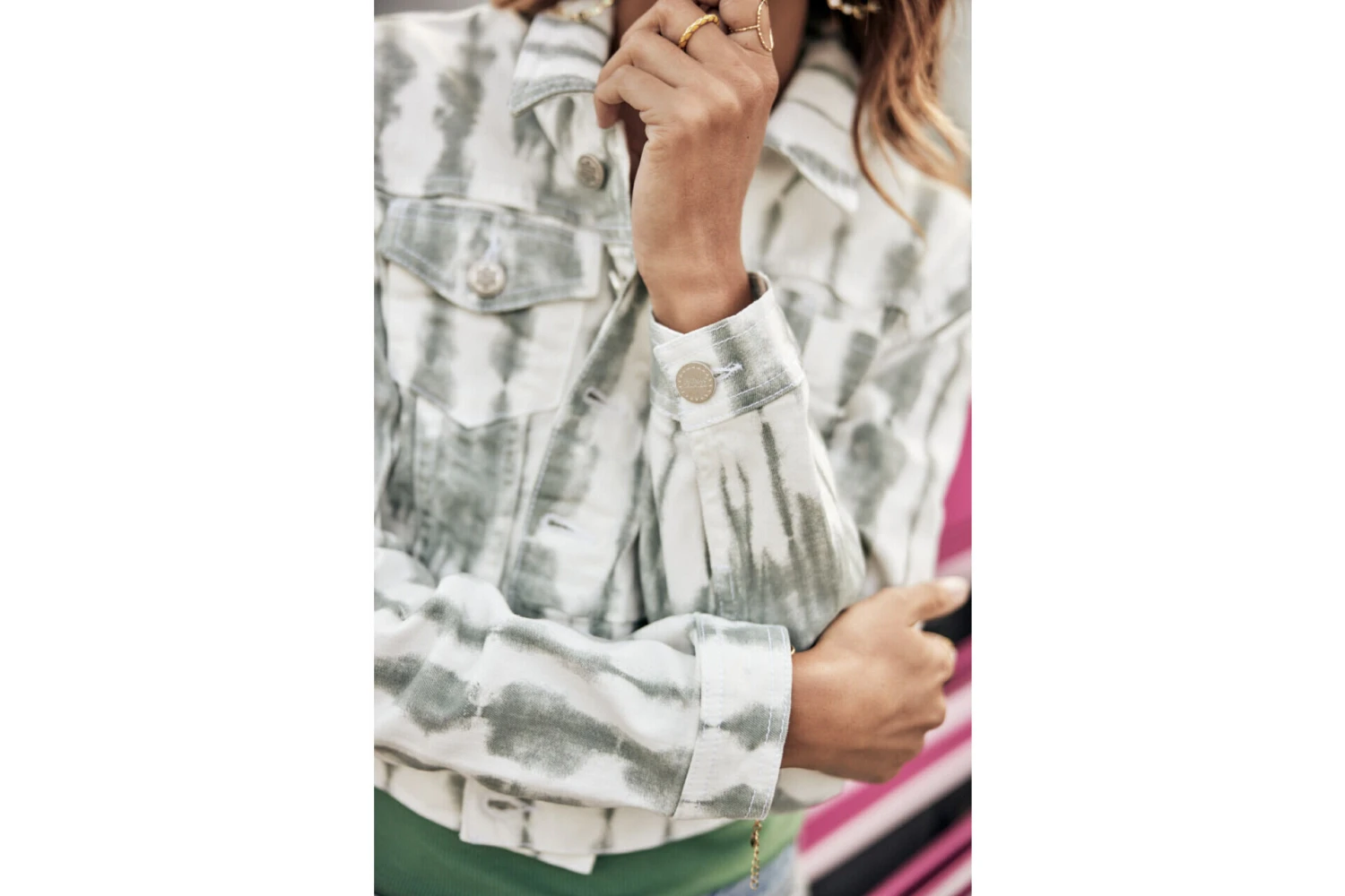 • Matière stretch, tye and dye dans les tons kaki ple