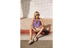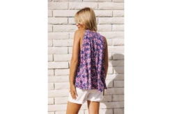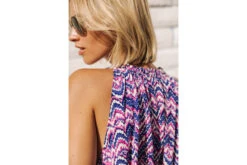 • DĂ©tail de galon fantaisie colorĂ© le long du col de l’ouverture centrale et des emmanchures