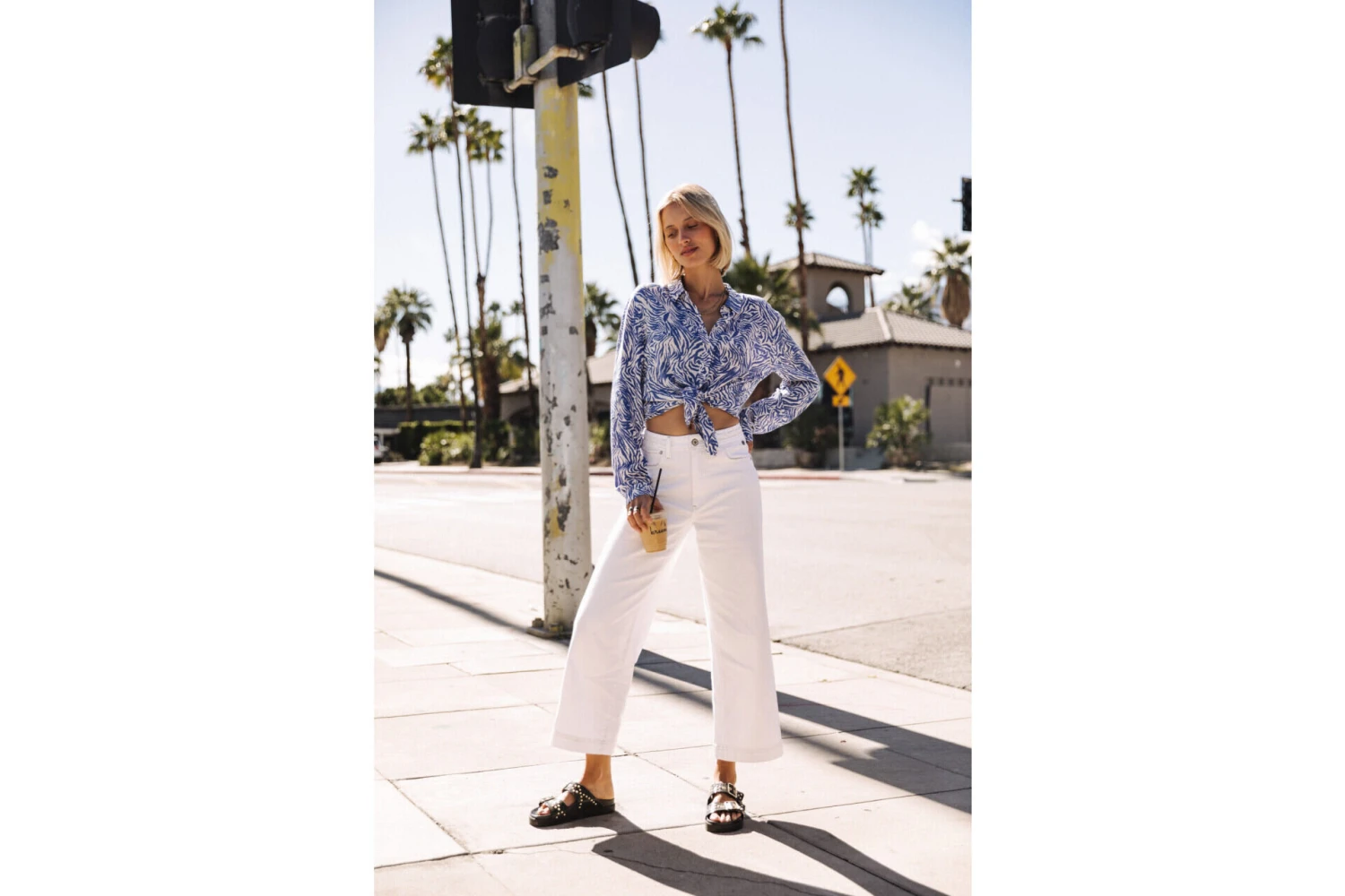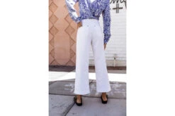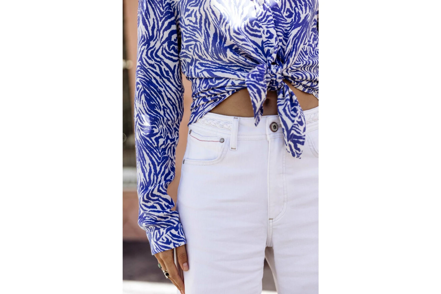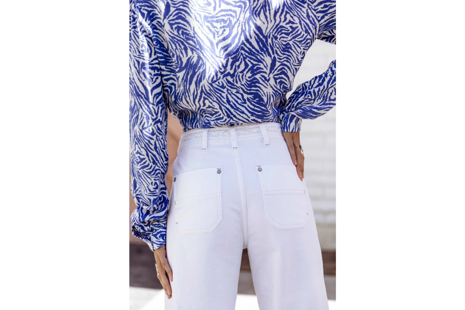 • Matière twill légèrement stretch, blanc cassé, doucher doux