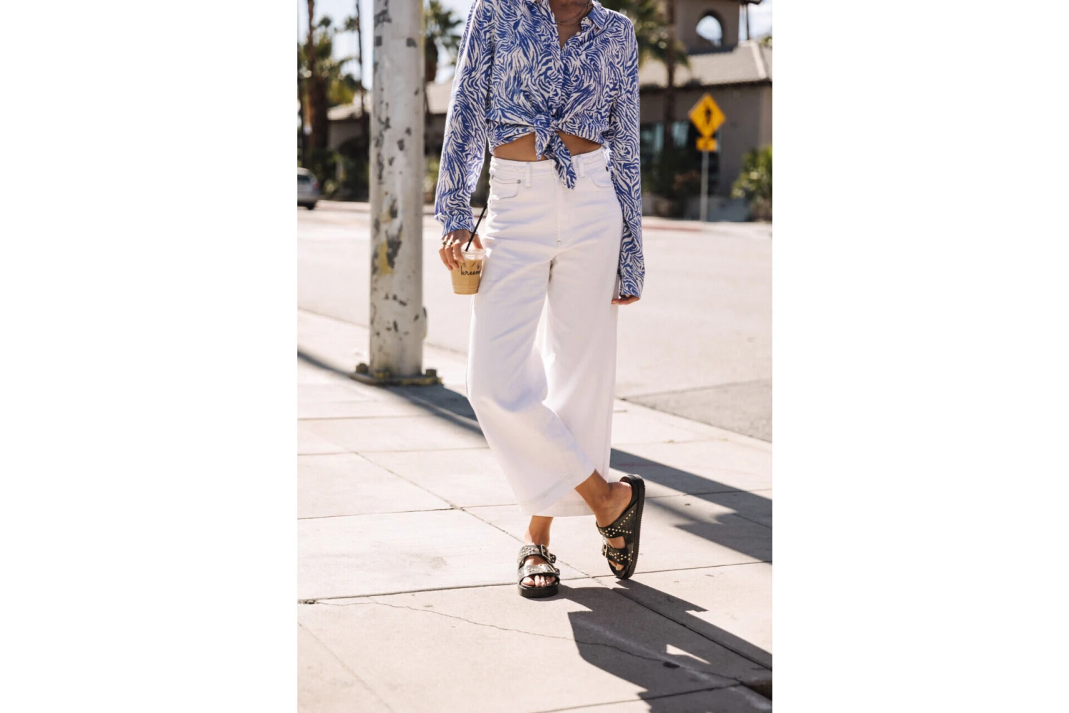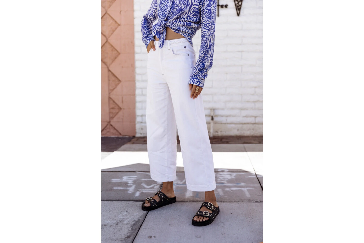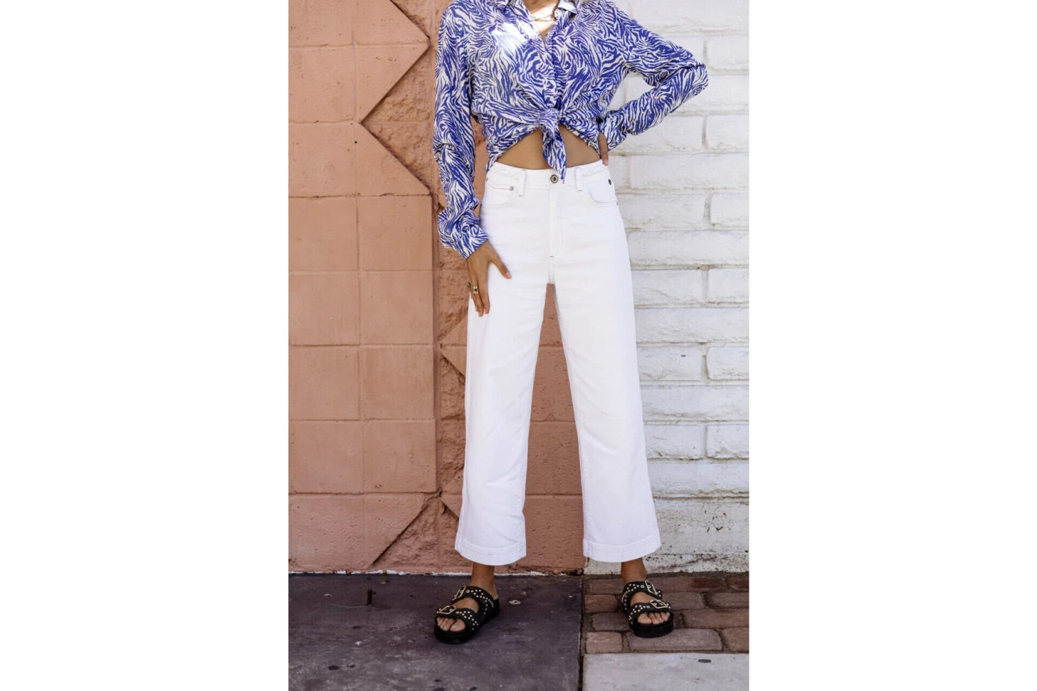 • Matière twill légèrement stretch, blanc cassé, doucher doux
