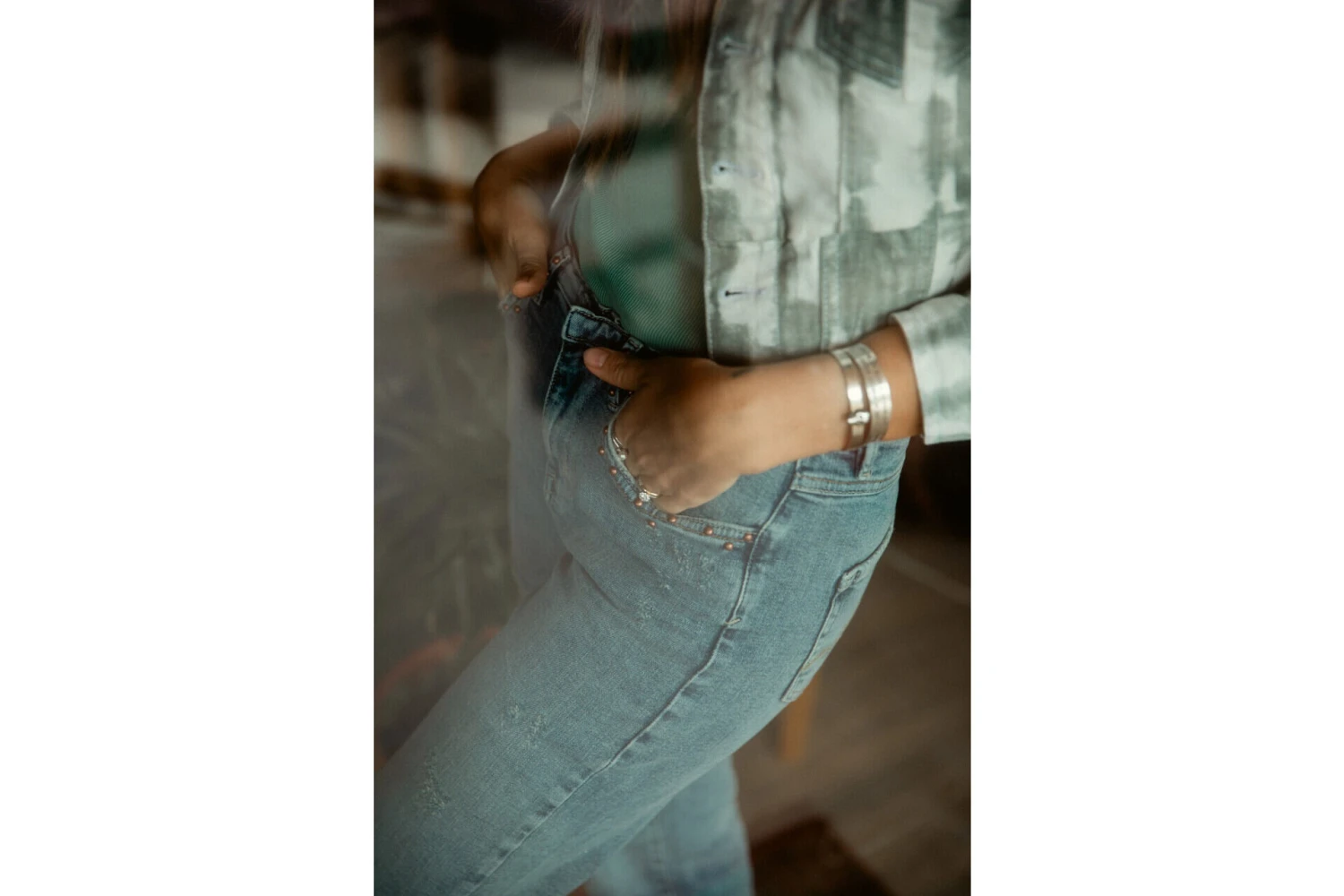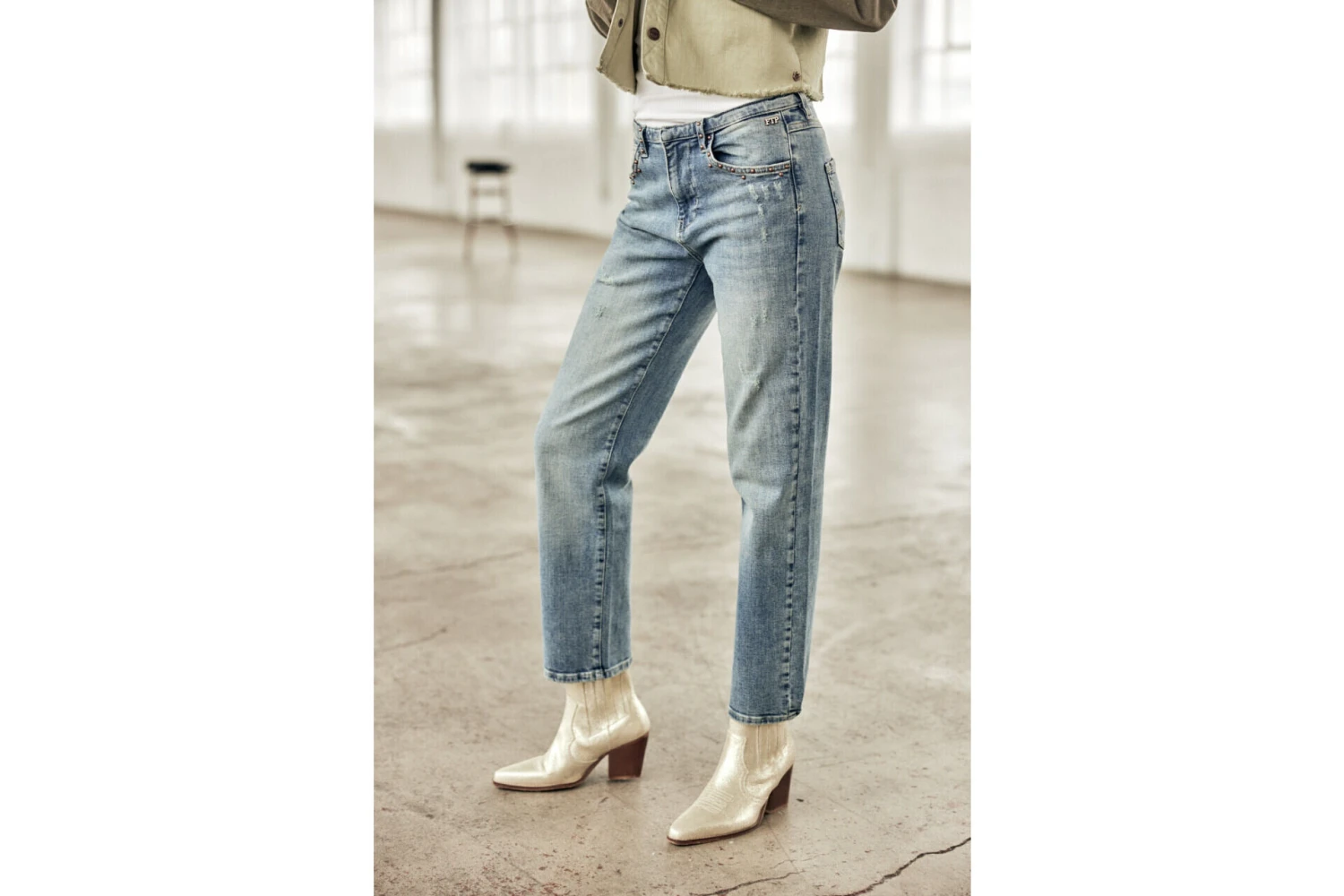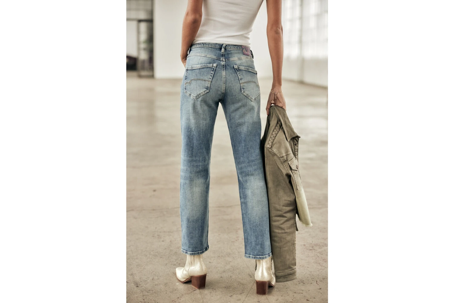 • Délavage bleu moyen, usé, esprit authentique