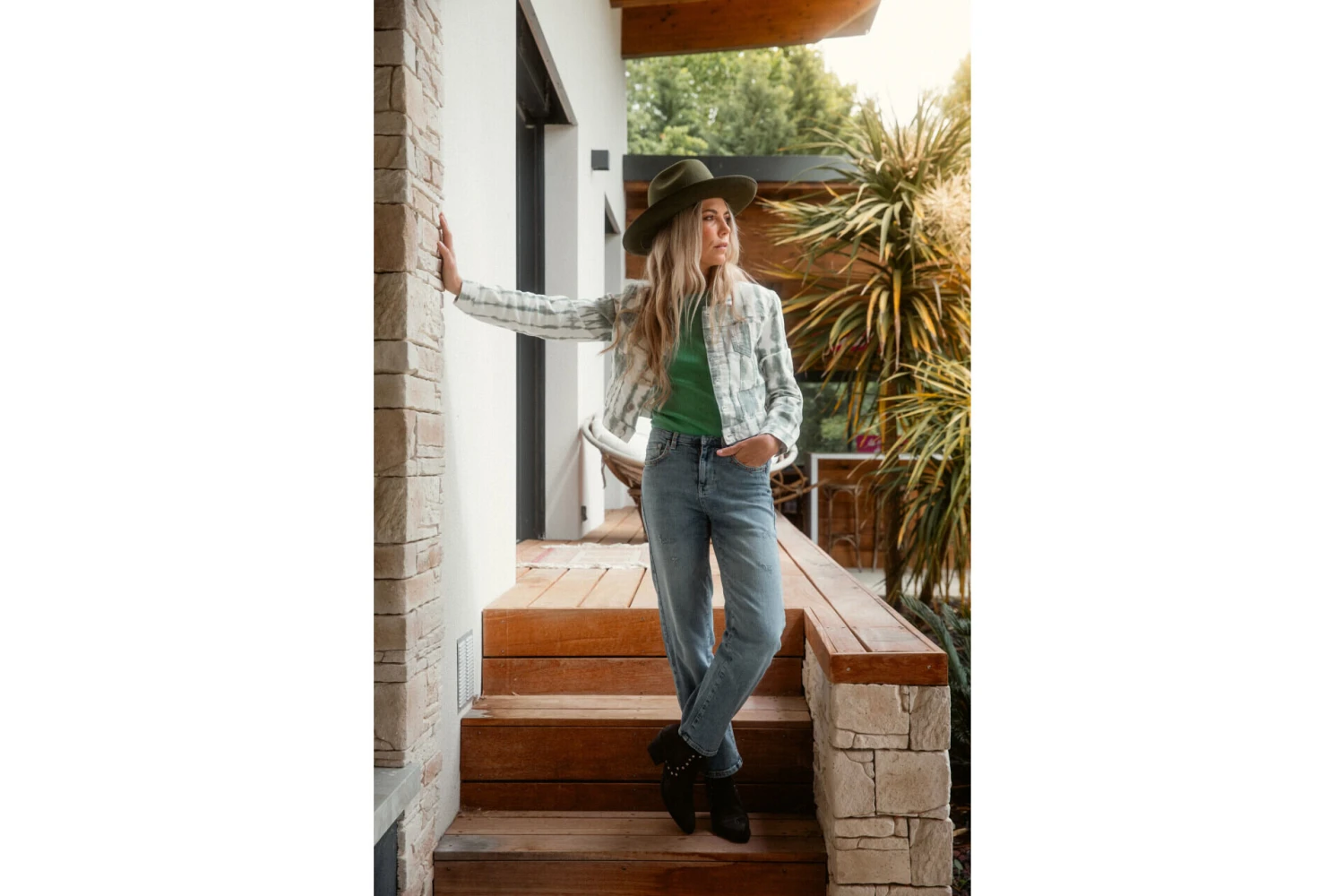Lauren mesure 177 cm et porte une taille 27.