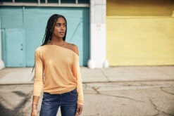 • Pull fin à large encolure qui tombe sur les épaules